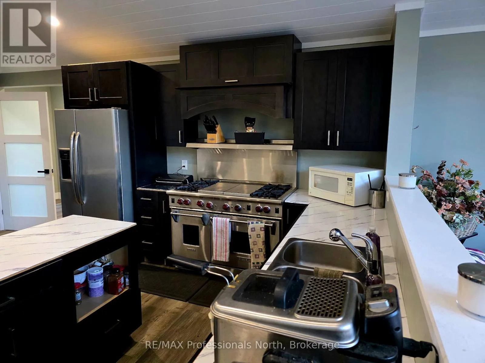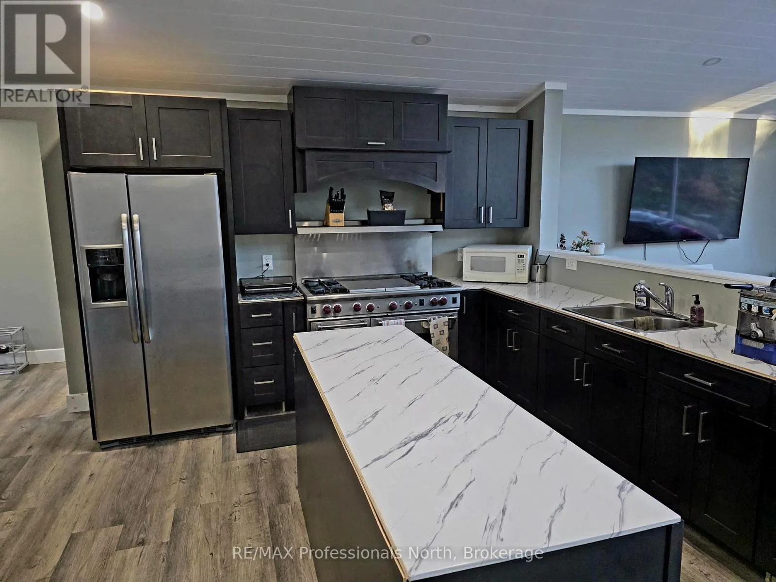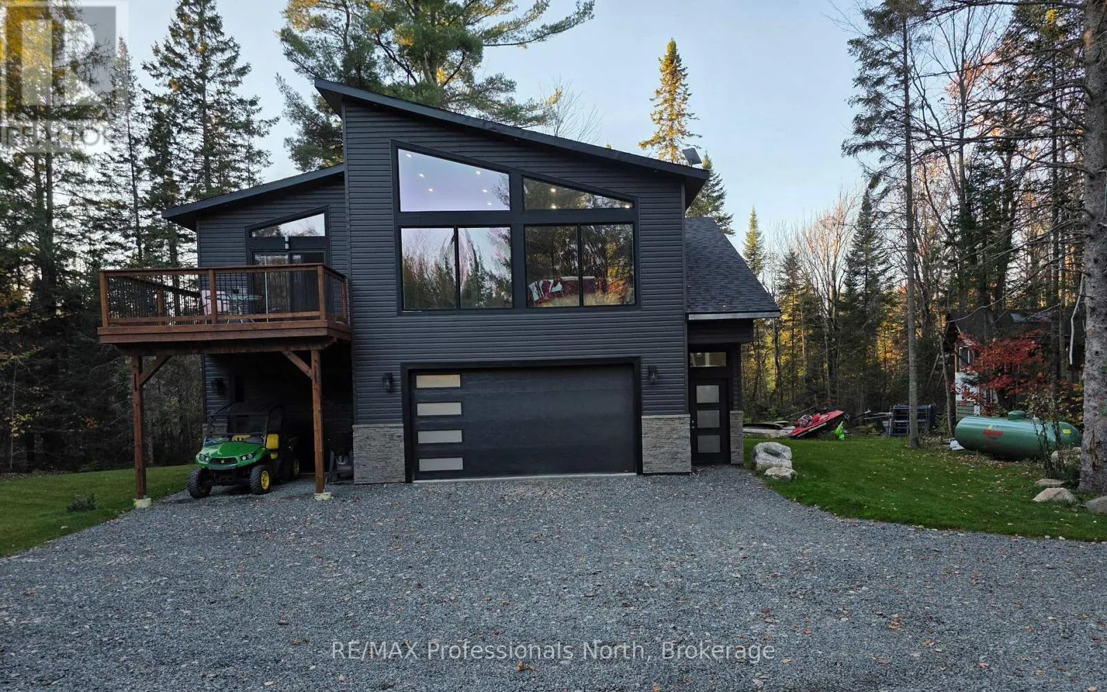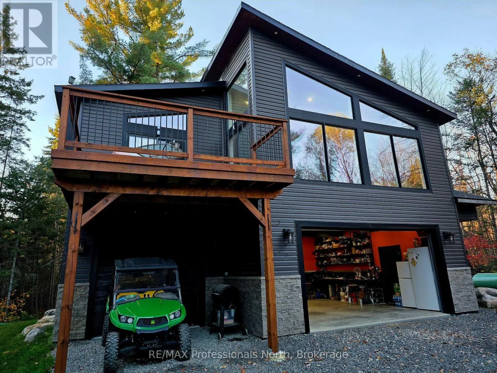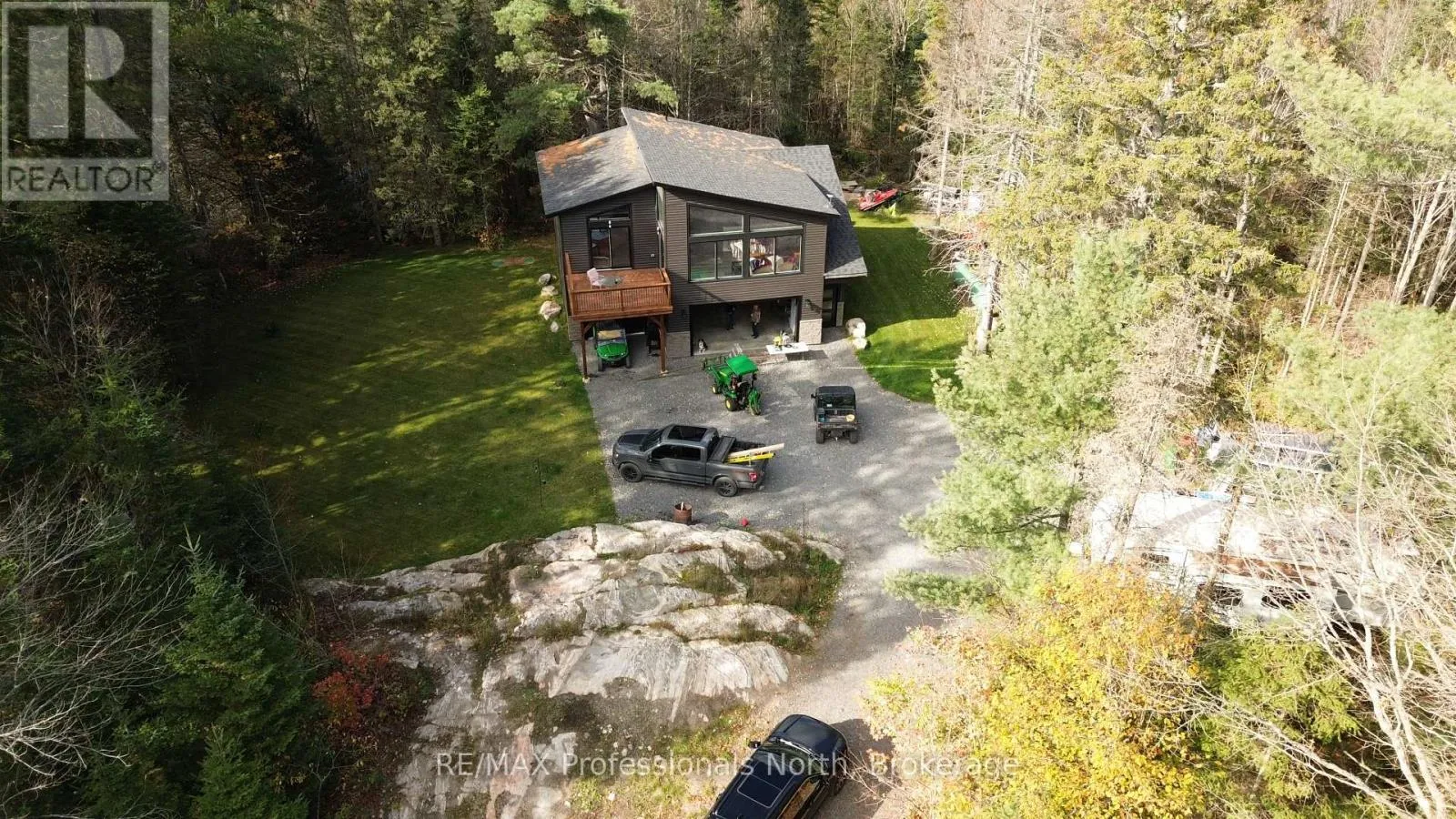 Cross Streets: Yearley Rd / Second Ave. ** Directions: From Huntsville: Ravenscliffe Rd to Stisted Rd, left on Second Ave to property, on the right at the corner of Yearley Rd. Built in 2023, this beautifully crafted home blends contemporary design with the peaceful charm of a forest setting. Nestled among the trees on a private one-acre lot, it offers the perfect balance of comfort, style, and practicality - just 30 minutes from Huntsville. Step inside to an inviting open-concept living space featuring soaring cathedral ceilings, energy-efficient pot lighting, and large windows that frame tranquil views of nature. The kitchen is a chefs dream, equipped with a professional Wolf range and generous counter space for entertaining or everyday cooking. With two spacious bedrooms and two full bathrooms, each with its own large walk-in shower, the layout combines functionality with luxury. An extra-wide staircase easily accommodates a chair-lift, ensuring accessibility for all. The home's thoughtful features continue with a huge three-car garage, complete with in-floor heating, battery-backup garage door openers that can be operated remotely, and a full Generac generator for peace of mind. The main living level is warmed by efficient forced-air heating and air conditioning can be easily added for year-round comfort. Enjoy morning coffee or evening sunsets from the expansive decks at both the front and rear, surrounded by the quiet beauty of the forest. If you've been searching for a modern, energy-smart home with privacy, practicality, and just the right touch of luxury - this one checks every box. BONUS: part of the garage can be converted into an inlaw suite (roughed in)! This property is ideal for those who are interested in the outdoors. It is across from the OFC D trail and ATV trail. (id:27476)