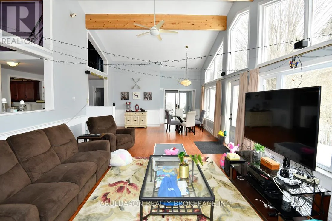 Cross Streets: hwy 11 to hwy 518 West to 2320. ** Directions: HIGHWAY 518. Stunning country retreat set on approxiately 55 acres with a picturesque, park-like setting. Beautiful and cozy home set on 9.5 acres with an additional 45-acre parcel at the rear, accessed by right of way-perfect for outdoor enthusiasts and nature lovers. A stream winds through the property, attracting abundant wildlife and offering an ideal setting for a private hunting cabin or recreational escape.The home offers exceptional space and comfort, featuring cathedral ceilings in the living room, a gourmet kitchen with marble countertops, and a wall of windows that fills the space with natural light. The main floor includes three generously sized bedrooms and two full bathrooms.The lower level boasts a spacious rec room/family room, along with a den and dedicated office-ideal for work or extended living space.Outdoors, enjoy a fenced area perfect for pets. Conveniently located between Huntsville and Burks Falls with easy access to Highway 11, this property offers the perfect blend of privacy, nature, and accessibility. A rare opportunity for true country living-don't miss it! (id:27476)