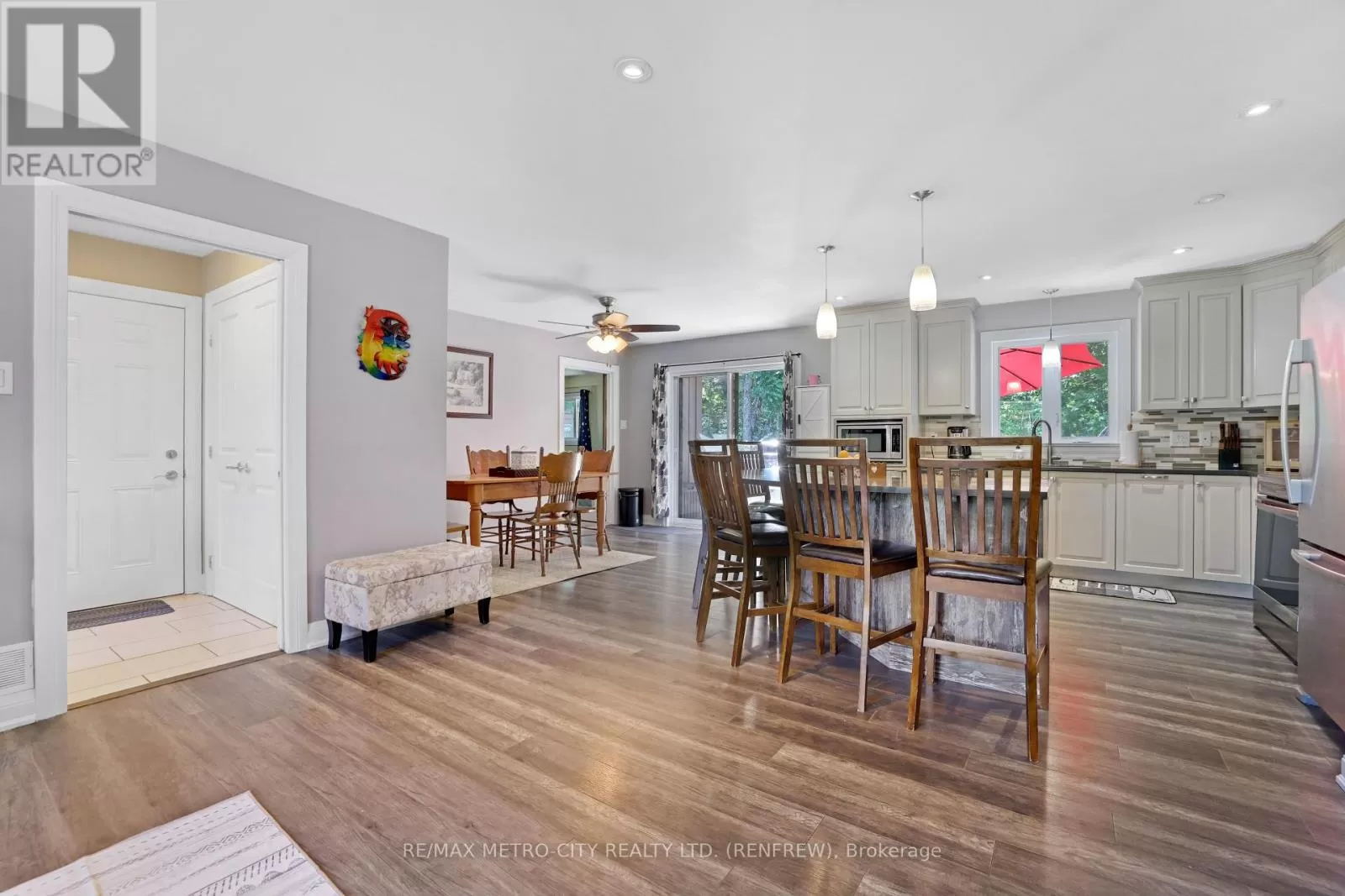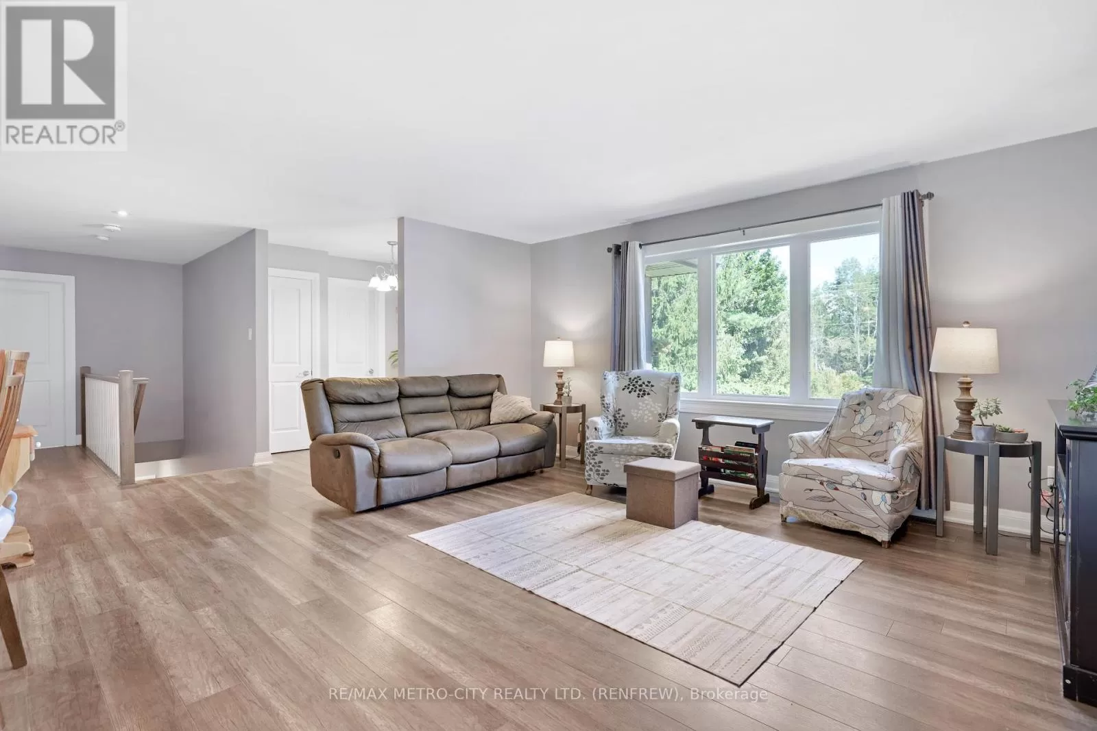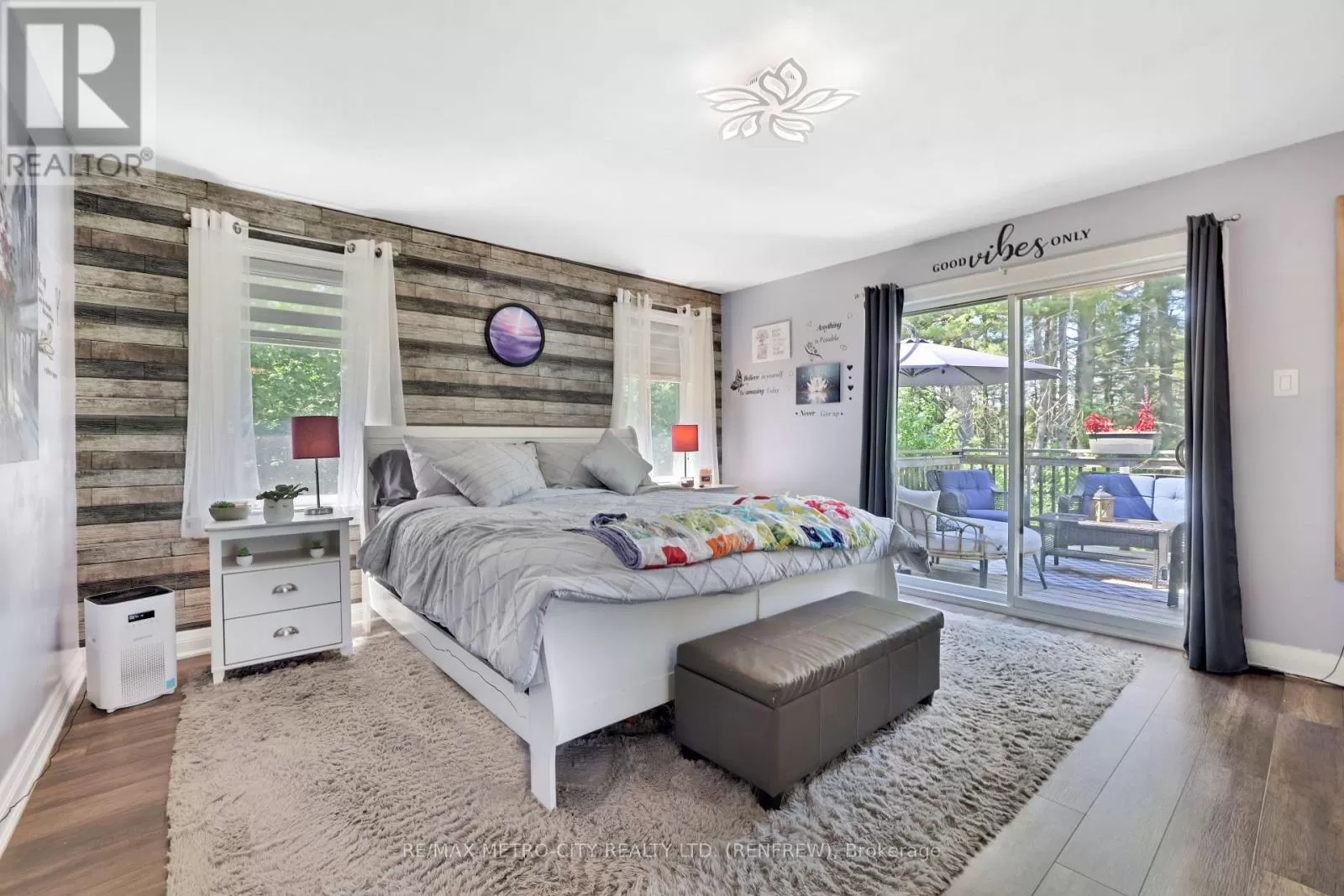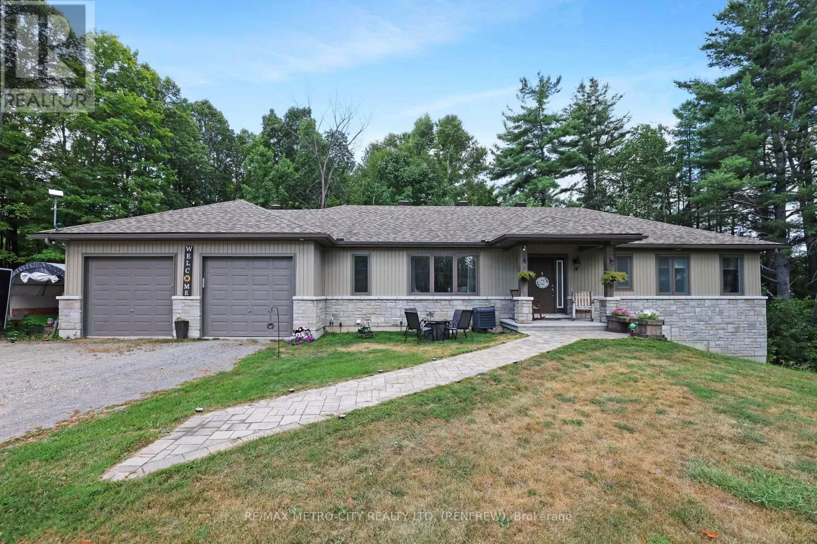 Cross Streets: Burnstown Rd/Fraser Rd. ** Directions: From Renfrew, follow Burnstown Rd to home on the right. Built in 2016, this stylish four-bedroom bungalow offers contemporary living in a peaceful, private setting just minutes from Renfrew and Burnstown. Tucked back from the road and backing onto a lush forest, this home combines modern comfort with natural beauty. Inside, you'll find an open-concept layout designed for today's lifestyle. The spacious kitchen features sleek cabinetry, plenty of counter space, and a large island perfect for hosting friends or casual family dinners. The main floor boasts a bright living room, convenient laundry, a dedicated office space, and a dining area with patio doors off to the rear deck. The primary suite is a true retreat, with a sizable walk-in closet, a luxurious five-piece ensuite, and a private deck overlooking the woods, ideal for relaxing weekends or morning coffee. A second bedroom on the main floor along with a 4 piece bath. The full basement has two additional bedrooms, a rec room, another 4 pc bath, and ample storage to make this home as functional as it is stylish. The finished walk-out basement seamlessly connects indoor and outdoor living through its own access to the attached double garage, enhancing convenience and usability. This move-in-ready home is perfect for those who want to experience country living, smart space, and natural scenery. (id:27476)