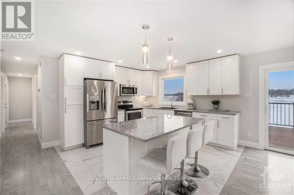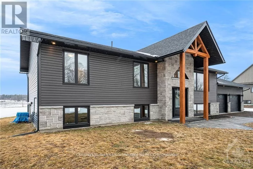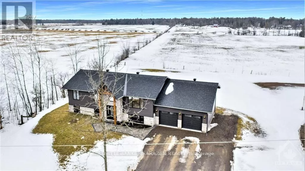 Cross Streets: Munro Dr. ** Directions: 417 west to Arnprior from Ottawa, exit at the White Lake turn off keep to the left. at second set of lights turn right unto Vanjumar St which turns into Rusett Dr turn right unto Campbell Dr then left unto Munro Dr. Lovely newer custom-built high ranch 3-bedroom home with hardwood floors throughout. The open-concept main level is filled with natural light and features a kitchen with granite counters, white cabinetry, and an island perfect for snacks or breakfast. The spacious foyer with glass wall bannisters creates a bright welcome. Three generous bedrooms are on the main level, including a primary bedroom with its own ensuite, plus another full bathroom.The lower level offers a large, bright family room with hardwood floors, plus a storage room with potential for another bedroom and bathroom. The double garage features vaulted ceilings for extra storage and convenient inside entry. The west-facing backyard is private with no rear neighbors. A home that blends comfort, light, and spacecome see for yourself! (id:27476)