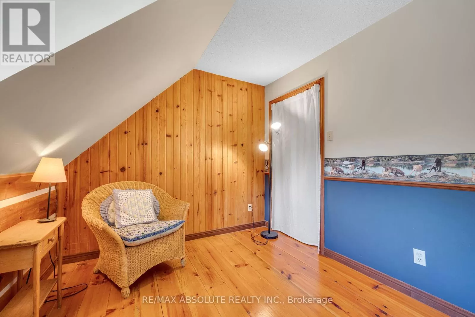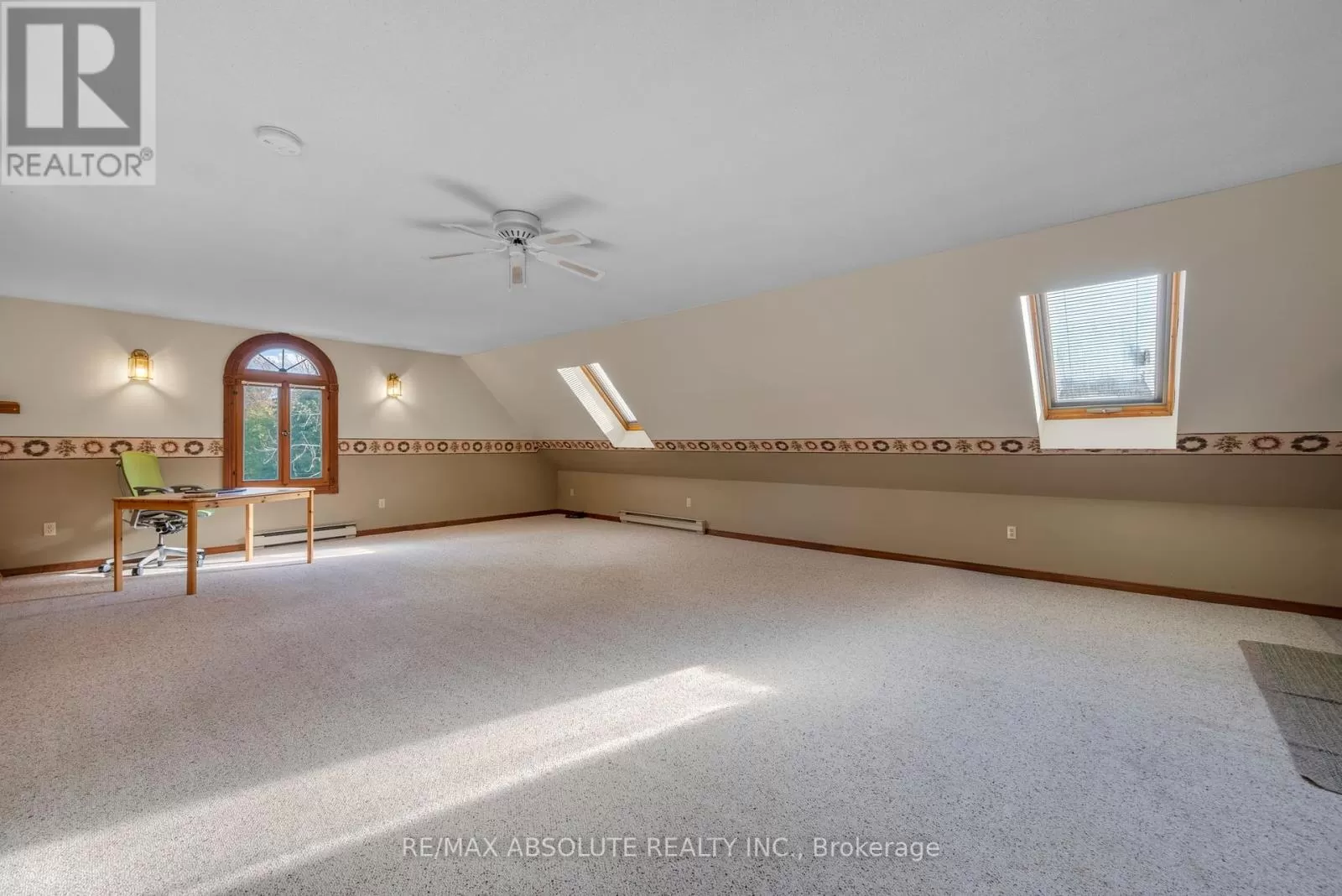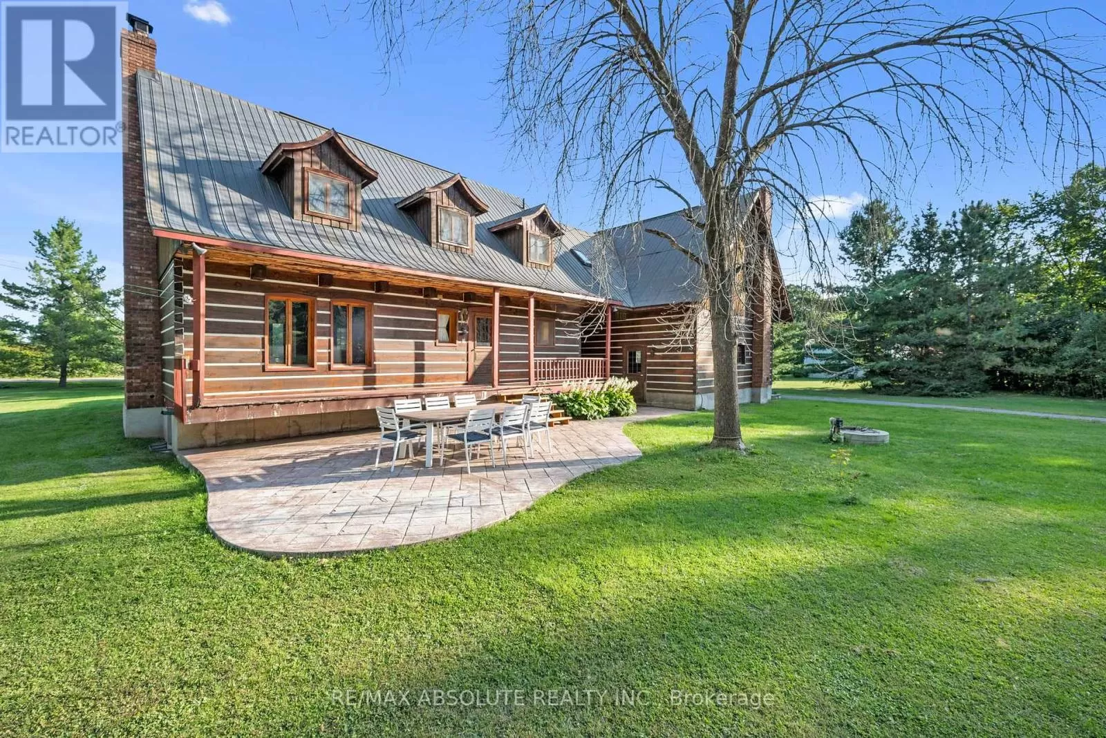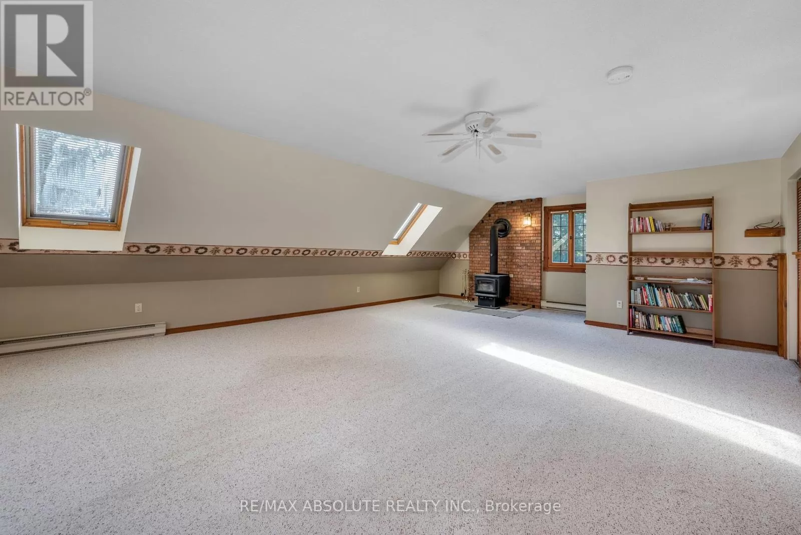 Hwy 417 West to Arnprior, exit Madawaska Blvd, Madawaska Blvd becomes Elgin St which becomes River Road-Once in Braeside turn left on Dochart St. make first right on Burns. Home on right hand side Charming log home on 1.99 acres in Braeside offering 3 bedrooms, 2.5 bathrooms, a versatile bonus room above the garage, a large barn, and a lean-to, with a balance of mature trees and cleared space; enter through a foyer with coat closet leading to a spacious living room with wood-burning stove, newly updated kitchen with ample cabinetry, quartz counters, large island with bar seating for four, pot and pan drawers, undermount sink at window, and adjoining dining room with space for family table and buffet; main floor powder room; upstairs features a primary bedroom with ample closet space and ensuite with vanity, toilet, and tub/shower with ceramic surround plus additional closet space; two secondary bedrooms with ample closets share a full bathroom with tub/shower, ceramic surround and toilet, which also connects to a laundry room with utility sink and storage; the bonus room above the garage provides flexibility for a family room, home office, hobby space or extra bedroom with inside access to the garage; finished basement includes a large family room with wood stove, bar area, and storage/utility room; wood heat throughout creates a cozy ambiance; outside enjoy the barn, lean-to, and generous acreage offering privacy and endless possibilities. 24hrs irrevocable on all offers. (id:27476)