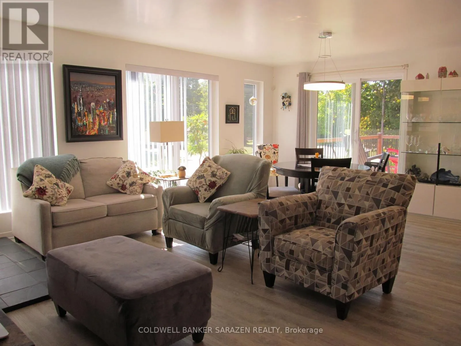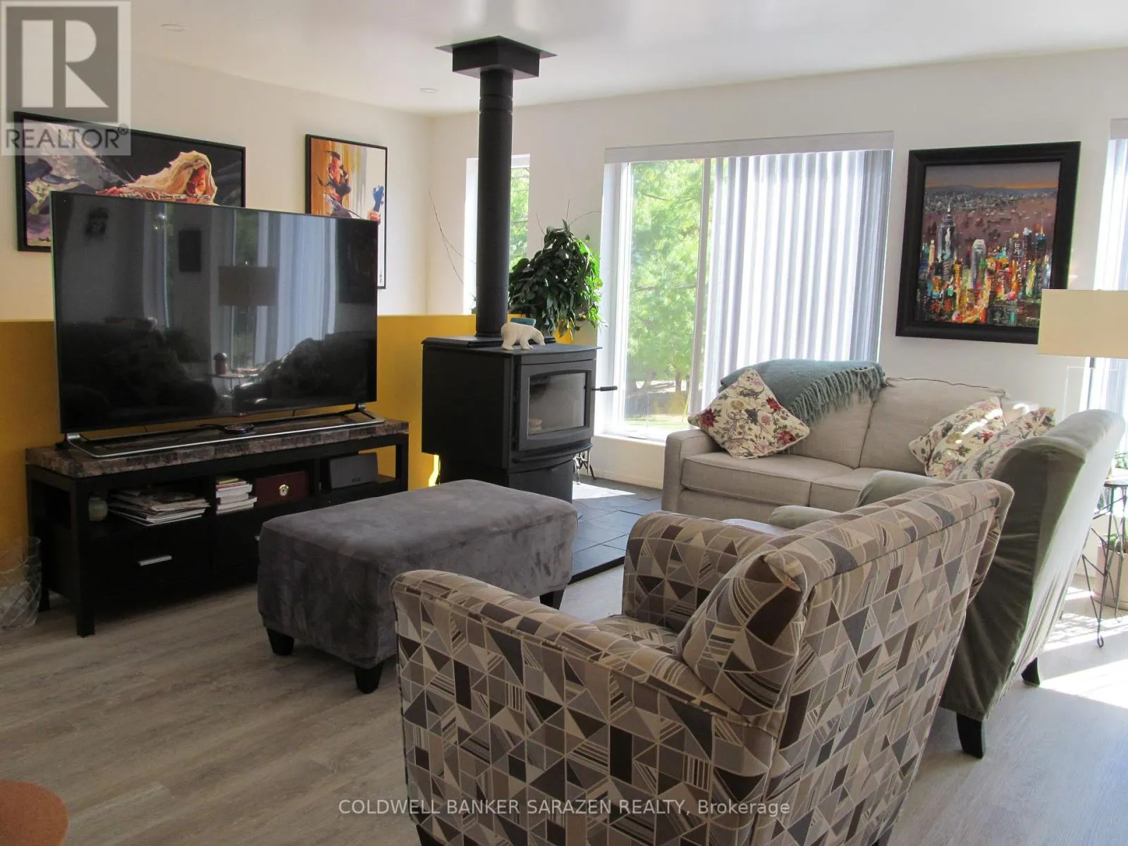 Cross Streets: Burnstown Road. ** Directions: Hyw 417 to White Lake exit, take White Lake thru to just over the Waba Creek. Property is on a corner on the right. Unique property set in the charming village of White Lake! This immaculate two year old home is surrounded by thoughtfully landscaped gardens with two decks on each side to capture both the morning sun and afternoon shade. Welcome to this open concept design home drenched in natural light. Two bedrooms, spacious bath with double sink vanity, bath tub, large storage closet plus your laundry facilities on main floor. The bathroom, for your convenience when entering the house at the front foyer, has a pocket door entry together with an entry from the main hallway. Enjoy winter warm winter evenings by the wood burning stove in the living room. Entertain family and friends sitting around the dining room table or or on the oversized side upper deck accessed via patio doors while watching the family kids and pets can play in the fenced yard. The showcase kitchen features Frigidare Gallery stainless steel refrigerator, propane stove, dishwasher, double sinks and handy island. Storage is made simple with a separate pantry/storage room next to the kitchen. Decorated through-out in cheerful, complementary colours, laminate floors, no carpets and smoke free. The ground level is presently unfinished so use your imagination to design rec/exercise area or establish an at home business venture. This area has radiant floor heating, 10 foot ceilings, roughed-in for a future bathroom, utility sink, furnace, air purifier, water softener and has patio doors to the front stone patio. Professionally landscaped with tastefully thought placement of gardens, rocks, patios and upper decks. Live well while enjoying the village lifestyle where you can walk to the General Store, church, restaurant, spend your summer days fishing, boating and swimming on White Lake minutes away. There are a myriad of local activities - golfing, ski hills, snowmobile trails, music/restaurant venues in Burnstown. All this is yours and you are only 10+ minutes to Arnprior and 417 Highway. Don't miss out! (id:27476)