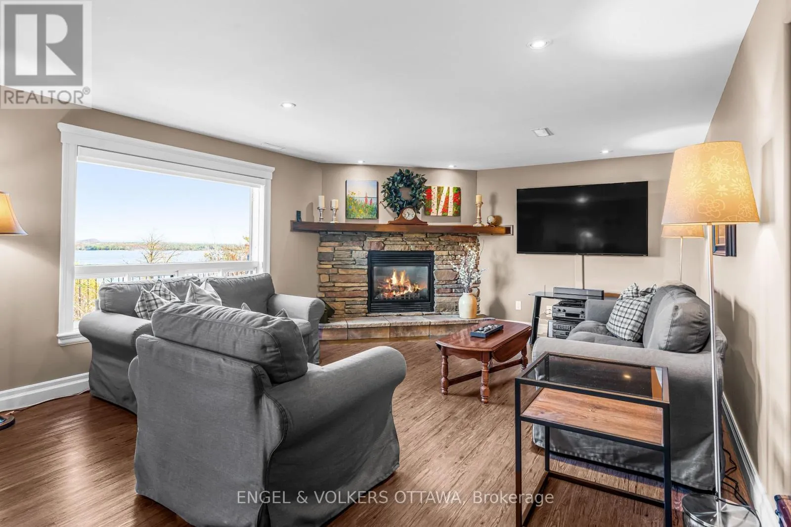 Cross Streets: Usborne Street. ** Directions: HWY 417 West to Arnprior, take exit 184, turn right into Hwy 2, turn left onto Hwy 1. Where riverfront tranquility meets trail-side adventure, welcome to 1144 River Road, a beautifully designed 2 + 1 bedroom, 2.5 bath walk-out bungalow. Tucked within Braeside's warm, close-knit community, this home backs directly onto the Algonquin Trail, with breathtaking, panoramic views of the Ottawa River stretching beyond your backyard. Imagine starting your mornings with coffee on the patio, watching the sun rise over the water, or ending your day with a quiet stroll along the trail that runs right behind your home. Whether it's biking or simply soaking in the ever-changing views, this location truly brings the outdoors to your doorstep. Inside, the open-concept main floor is bright and airy, with large windows framing the river views and flooding the space with natural light. The spacious kitchen features ample cabinetry and counter space, flowing effortlessly into the dining and living area-creating the perfect layout for family gatherings. Step out onto the elevated patio, where you can enjoy the serenity of the water. The main level includes two comfortable bedrooms, including a peaceful primary suite with ensuite bath and generous closet space, along with a convenient second bath. Downstairs, the fully finished walk-out level offers flexible living options-complete with a separate entrance, additional bedroom, 2 piece bathroom, and a bright recreation area with cozy fireplace. This space is ideal for guests, extended family, or even a home office or studio that takes full advantage of the private lower-level access and scenic surroundings. Outside, the property's setting is both tranquil and active - offering the rare combination of waterfront vistas and trail access. Enjoy kayaking or golf nearby, or simply relaxing by the water's edge. With Arnprior just minutes away for shopping, dining, and everyday amenities, and Ottawa within an easy commute, this home perfectly balances rural charm with convenience. (id:27476)