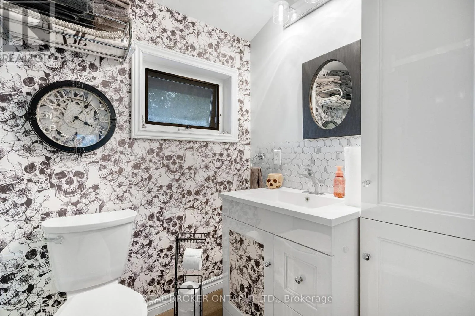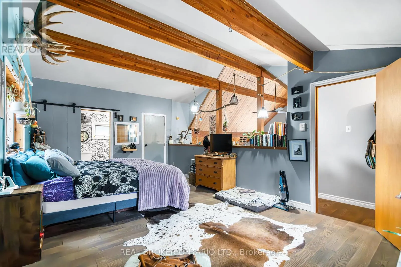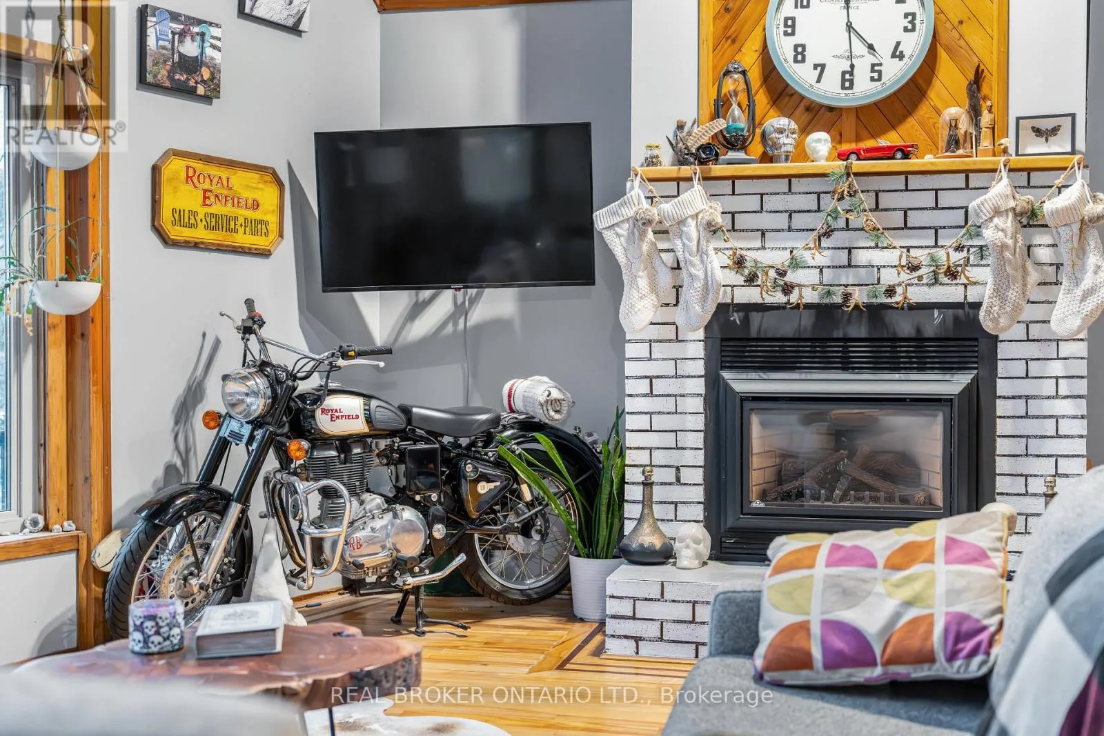 From Arnprior take River Road, / Madawaska street, Left onto Usborne street, right onto Woodland Welcome to 1 Woodland Drive, a charming 3 bed, 2 bath home tucked into a private, wooded corner lot in Braeside. Surrounded by nature and mature trees, this inviting property offers exceptional privacy and a peaceful setting. A wrap around deck and outdoor fire pit make it ideal for unwinding or entertaining. Inside, soaring main floor ceilings and expansive windows including new two storey windows that flood the space with light create a bright, airy atmosphere. The kitchen features white cabinetry, a tiled backsplash, and an eat in island. Hardwood floors enhance the warm living and dining spaces, complete with wainscoting and playful wallpaper. A standout sunroom with floor to ceiling windows provides a serene spot to enjoy the views year round. The main level includes a full bathroom, laundry and two large bedrooms, while the loft style primary suite offers wonderful character and its own ensuite and walk-in closet. The finished basement adds even more living space with wood paneling, a large rec room, a spacious playroom, and a powder room. Additional highlights include a low maintenance metal roof and recent updates to the HVAC and septic systems, offering peace of mind for future owners. Just a short walk to Braeside Beach and the boat launch and only minutes to Arnprior and 30 minutes to Kanata, this home blends cottage charm with everyday convenience. (id:27476)
