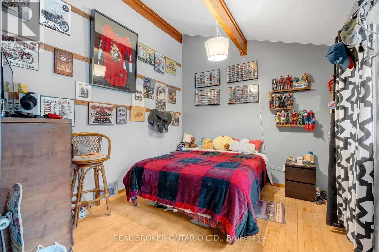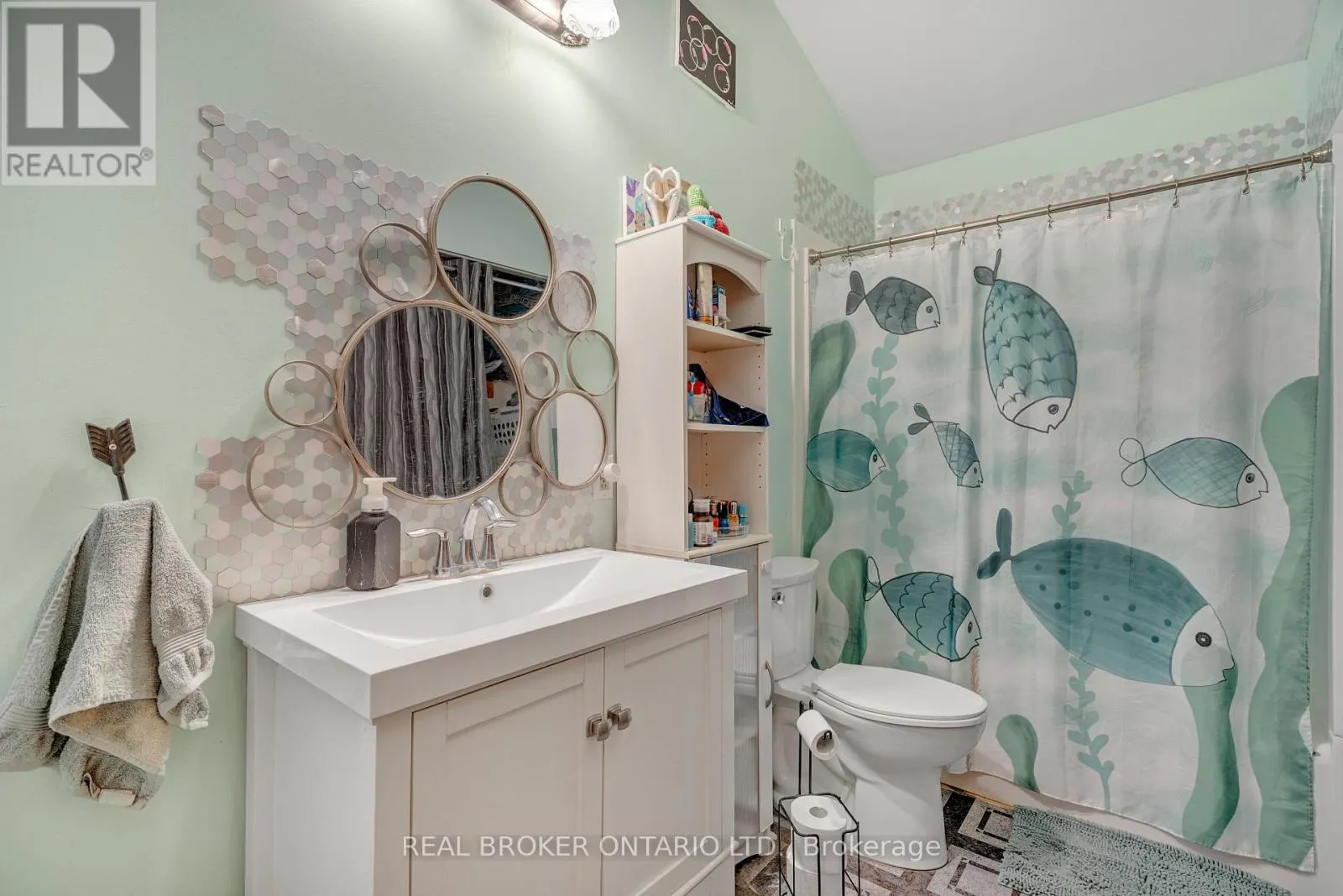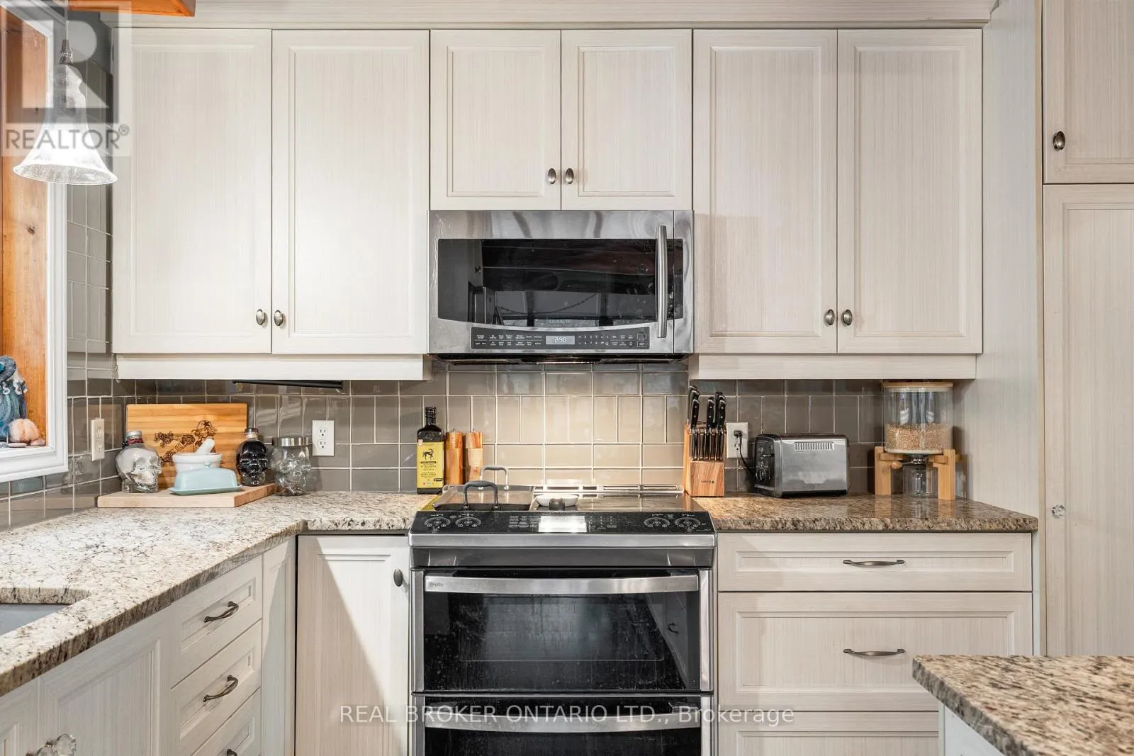 From Arnprior take River Road, / Madawaska street, Left onto Usborne street, right onto Woodland Welcome to 1 Woodland Drive, a charming 3 bed, 2 bath home tucked into a private, wooded corner lot in Braeside. Surrounded by nature and mature trees, this inviting property offers exceptional privacy and a peaceful setting. A wrap around deck and outdoor fire pit make it ideal for unwinding or entertaining. Inside, soaring main floor ceilings and expansive windows including new two storey windows that flood the space with light create a bright, airy atmosphere. The kitchen features white cabinetry, a tiled backsplash, and an eat in island. Hardwood floors enhance the warm living and dining spaces, complete with wainscoting and playful wallpaper. A standout sunroom with floor to ceiling windows provides a serene spot to enjoy the views year round. The main level includes a full bathroom, laundry and two large bedrooms, while the loft style primary suite offers wonderful character and its own ensuite and walk-in closet. The finished basement adds even more living space with wood paneling, a large rec room, a spacious playroom, and a powder room. Additional highlights include a low maintenance metal roof and recent updates to the HVAC and septic systems, offering peace of mind for future owners. Just a short walk to Braeside Beach and the boat launch and only minutes to Arnprior and 30 minutes to Kanata, this home blends cottage charm with everyday convenience. (id:27476)