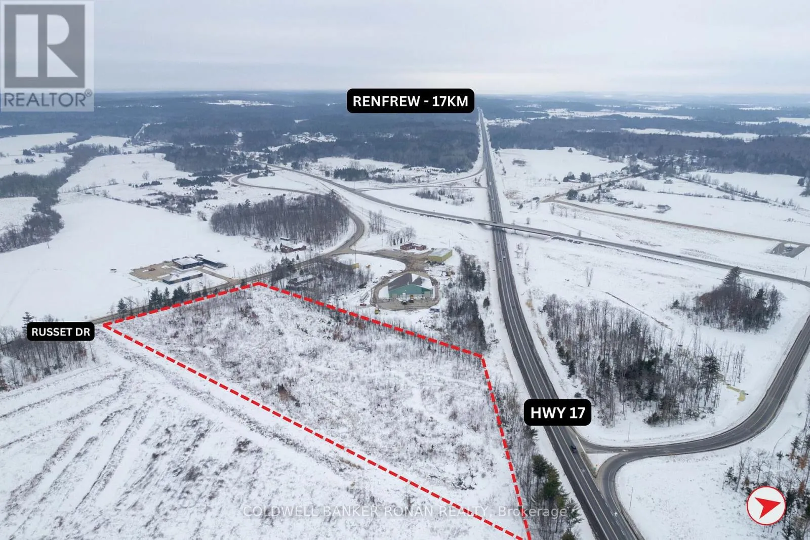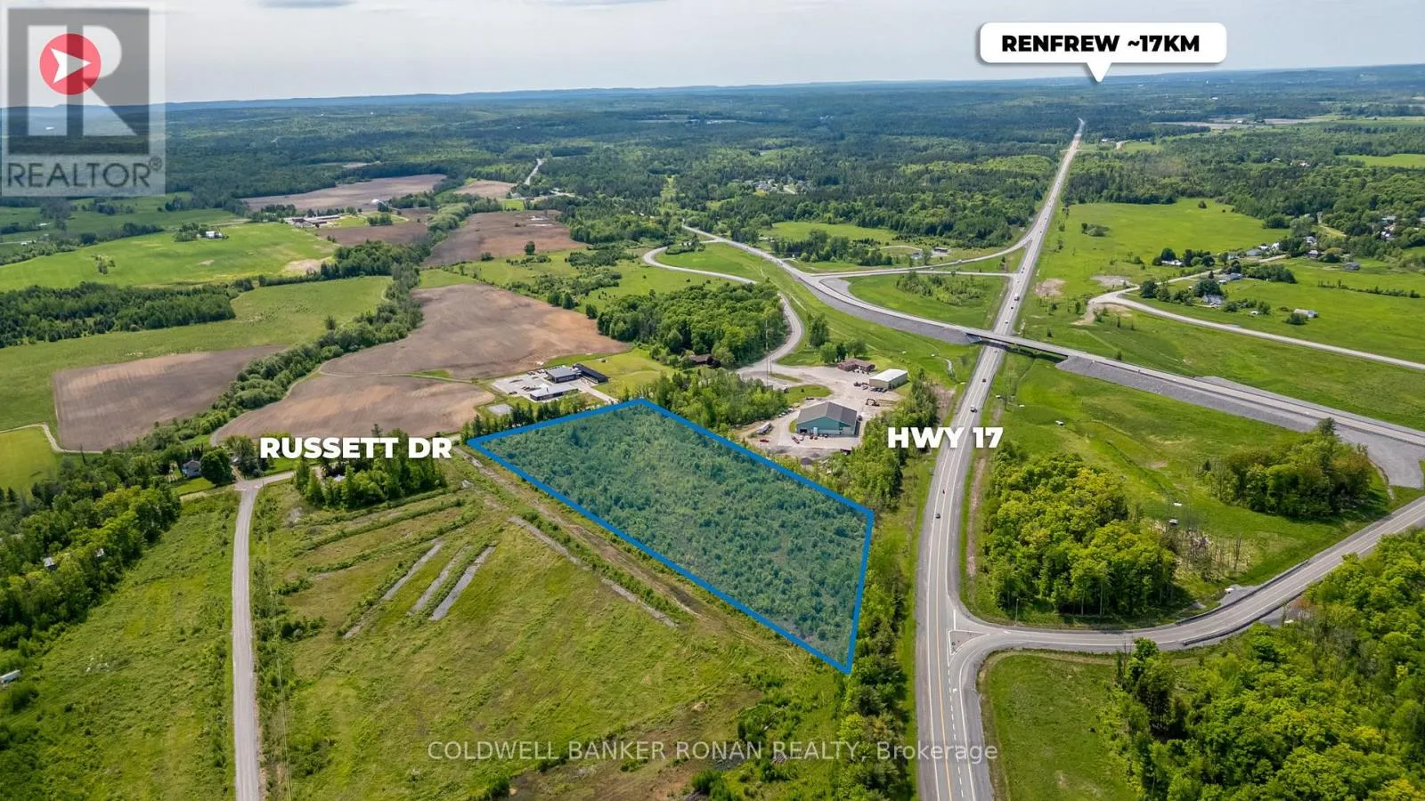 Russett Dr / Calabogie Road Prime 10-acre commercial land opportunity comprised of three separately deeded parcels forming one contiguous site. Strategically zoned Highway Commercial and positioned for future commercial development, this property offers exceptional flexibility for owner-users, developers, and long-term investors alike. The site boasts outstanding exposure with over 570 feet of frontage on Highway 417, providing high visibility and direct access along a major regional transportation corridor. Ideally located just 10 minutes from Arnprior and 12 minutes from Renfrew, the property serves as a gateway to the Ottawa Valley while remaining within easy reach of West Ottawa. An ideal opportunity for industrial, service, commercial, retail, or land banking uses in a growing and undersupplied market where affordability, accessibility, and future upside intersect. (id:27476)