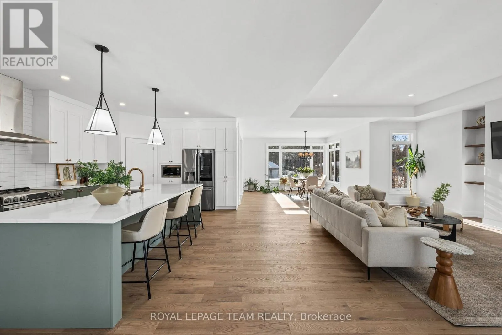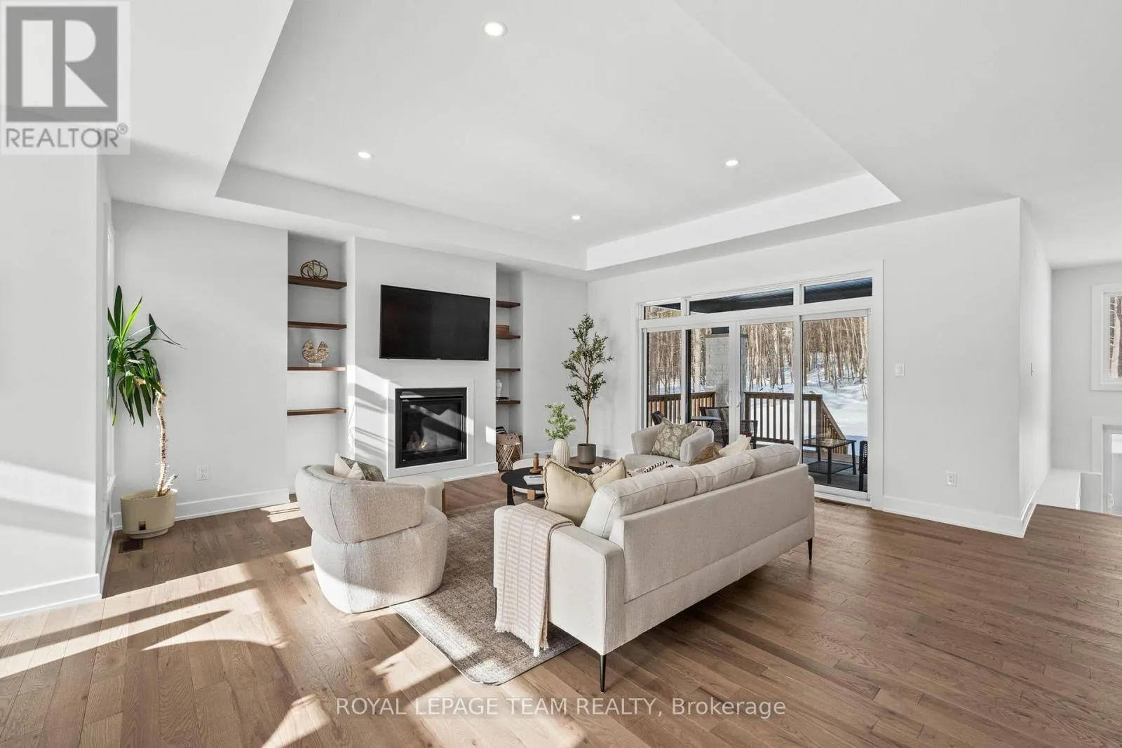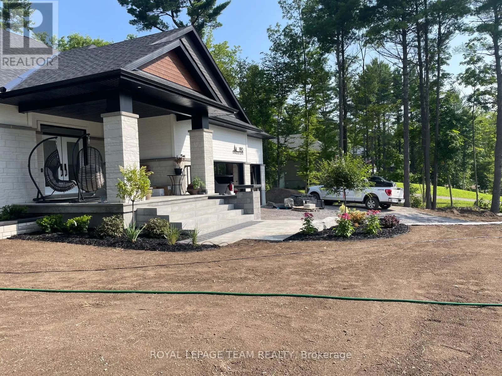 Cross Streets: Anderson Road. ** Directions: Located just off Anderson Rd, closest cross street is Calabogie Rd. Located on a 1.1-acre lot in Glasgow Ridge, this beautifully appointed property offers a tranquil setting with an easy commute to conveniences. Step inside from the charming front porch to a sun-filled living space accented with transom windows, smooth ceilings, and hardwood flooring throughout. The kitchen features two-toned, floor-to-ceiling cabinetry, quartz countertops, tile backsplash, a pantry, and a centre island that extends the prep space - ideal for entertaining. This area opens to the dining room and great room with a natural gas fireplace, tray ceiling, recessed shelving niches, and access to the covered porch and backyard. A dedicated laundry room with interior access to the three-car garage adds convenience. The inviting primary bedroom includes a walk-in closet with custom maple built-ins and a 5-piece ensuite with a dual-sink vanity, a soaker tub, and a glass-enclosed shower, creating a private retreat. Two secondary bedrooms share a well-appointed bathroom. Outdoors, the covered porch opens to a backyard framed by mature trees, providing a serene and private space to relax throughout the seasons. (id:27476)
