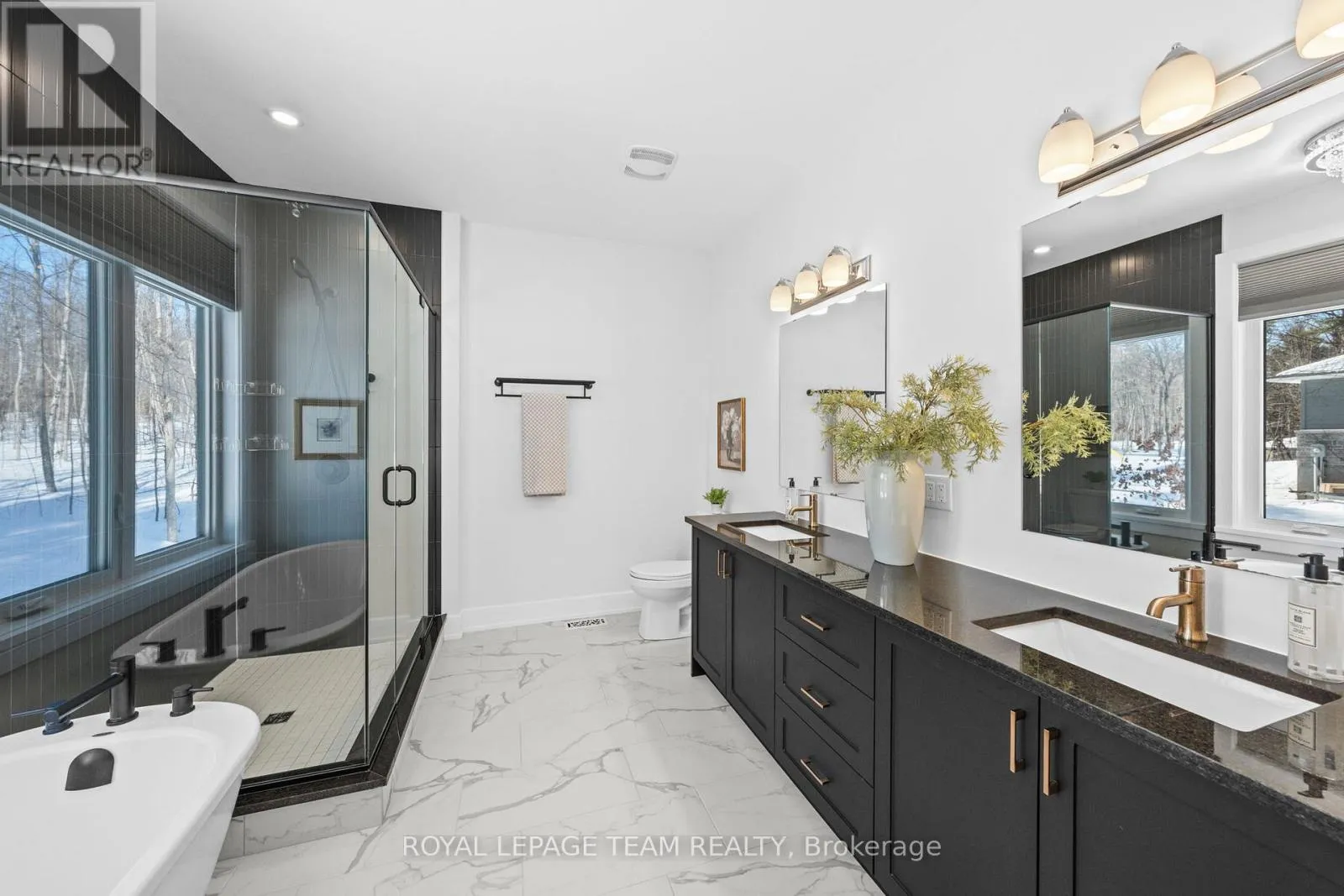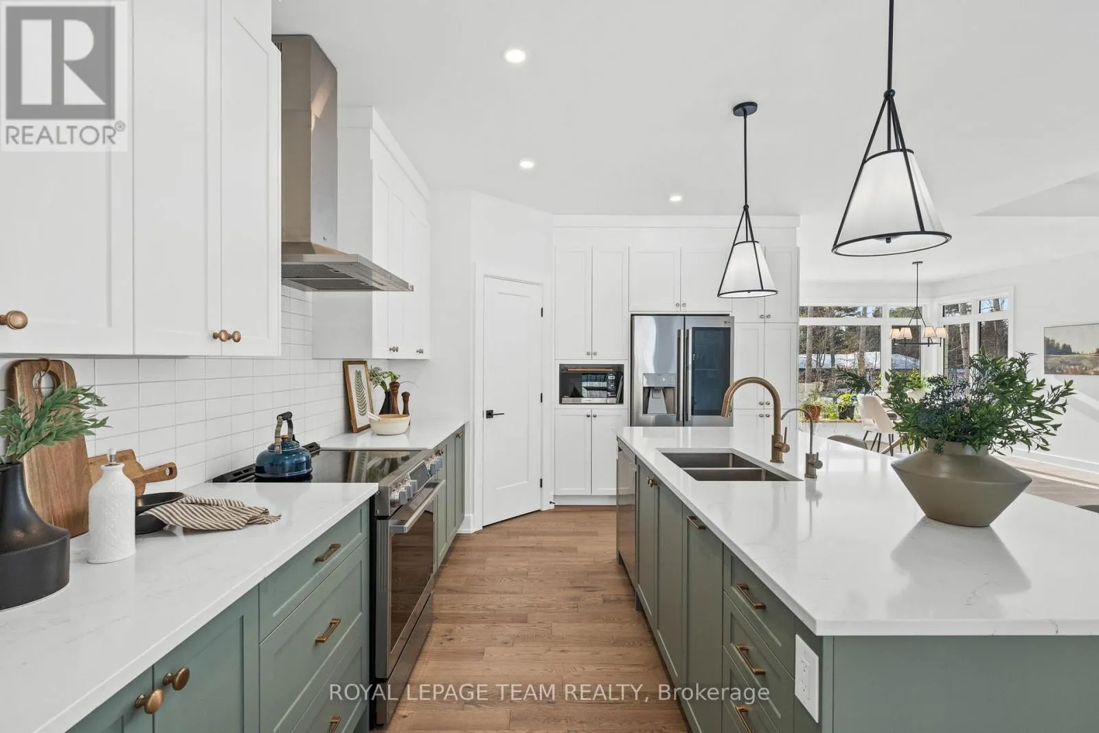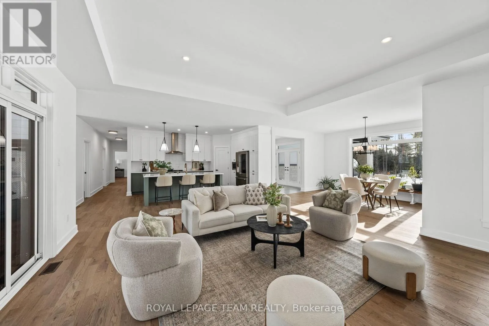 Cross Streets: Anderson Road. ** Directions: Located just off Anderson Rd, closest cross street is Calabogie Rd. Located on a 1.1-acre lot in Glasgow Ridge, this beautifully appointed property offers a tranquil setting with an easy commute to conveniences. Step inside from the charming front porch to a sun-filled living space accented with transom windows, smooth ceilings, and hardwood flooring throughout. The kitchen features two-toned, floor-to-ceiling cabinetry, quartz countertops, tile backsplash, a pantry, and a centre island that extends the prep space - ideal for entertaining. This area opens to the dining room and great room with a natural gas fireplace, tray ceiling, recessed shelving niches, and access to the covered porch and backyard. A dedicated laundry room with interior access to the three-car garage adds convenience. The inviting primary bedroom includes a walk-in closet with custom maple built-ins and a 5-piece ensuite with a dual-sink vanity, a soaker tub, and a glass-enclosed shower, creating a private retreat. Two secondary bedrooms share a well-appointed bathroom. Outdoors, the covered porch opens to a backyard framed by mature trees, providing a serene and private space to relax throughout the seasons. (id:27476)
