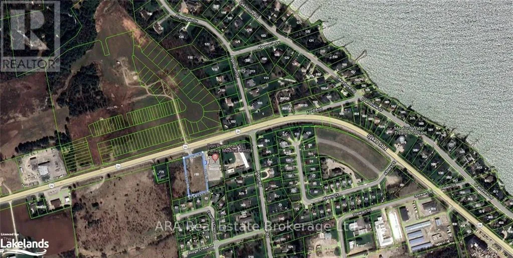 Highway 26 West out of Meaford towards Owen Sound, property is next to Don Bumstead Medical Health Clinic C2 Zoned lot with Highway 26 exposure on the West edge of Meaford. The North side of Highway 26 has 249 residential units draft plan approved and under construction. Directly to the West is Meaford Haven Development of 15.44ha in process. Immediately adjacent to the East is the Don Bumstead & Family Medical Health Clinic. The entrance from Highway 26 comes directly into this lot and is subject to a right of way to both adjacent lots. The 25' easement at the rear of the property services both this lot and the lot adjacent to the West for municipal sewers and storm water. The Municipal water is located within the 10.10' easement at the front of the property. Excellent location for retail, food, grocery etc. (id:27476)