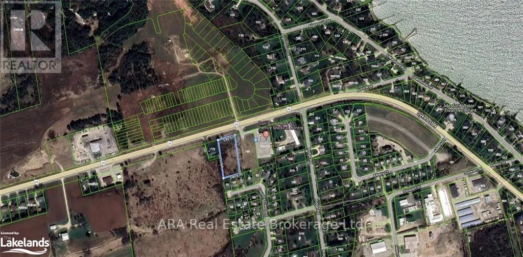 : Highway 26 West out of Meaford towards Owen Sound, property is 2nd from to Don Bumstead Medical\r\nHealth Clinic on the South Side of Hwy 26. C2 Zoned lot with Highway 26 exposure on the West edge of Meaford. The North side of Highway 26 has 249 residential units draft plan approved and under construction. Directly to the West is Meaford Haven Development of 15.44ha in process. Immediately adjacent to the East is the Don Bumstead & Family Medical Health Clinic. The entrance from Highway 26 comes across Part 3 as a 66 foot right of way to this parcel. The 25' easement across the rear of Part 3 is for sanitary sewers and storm water. The Municipal water is located within the 10.10' easement at the front of the property. Excellent location for retail, food, grocery etc. (id:27476)