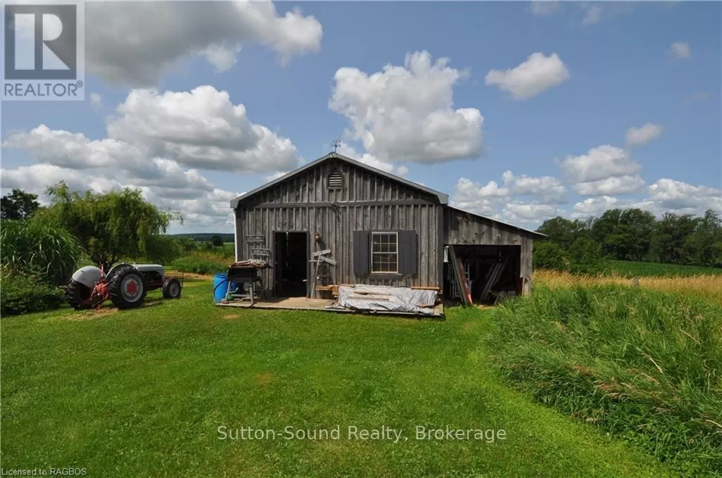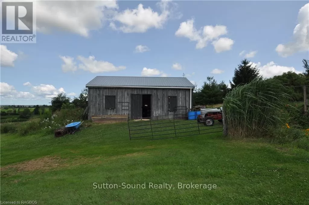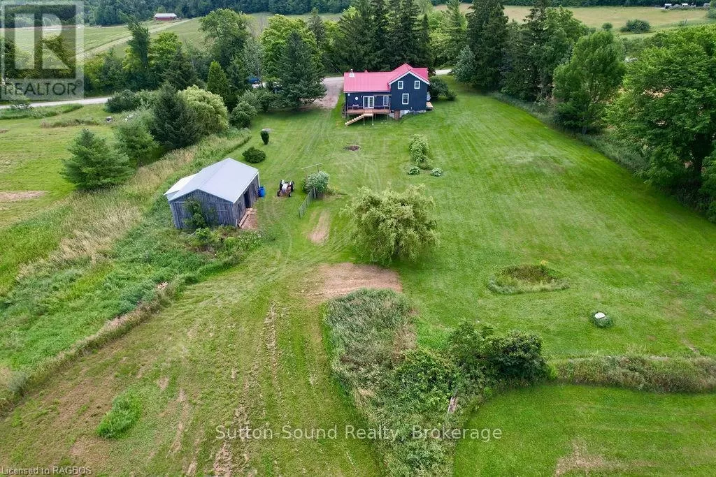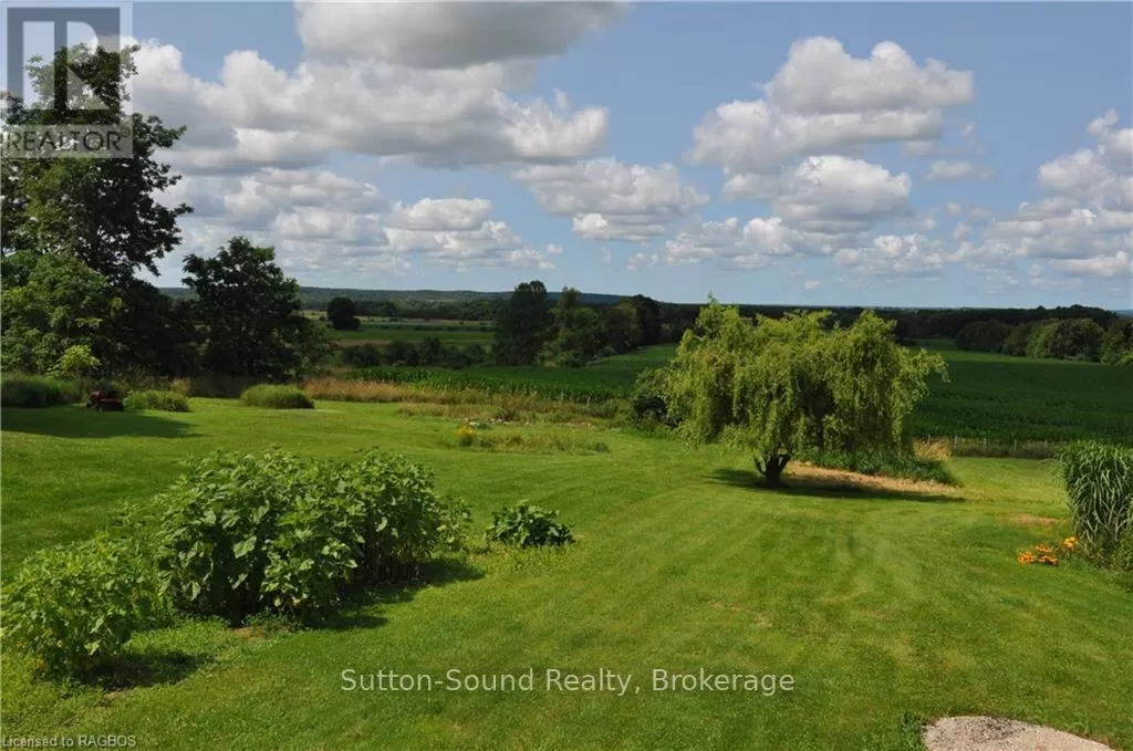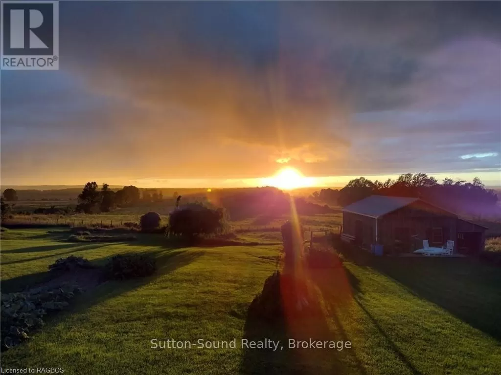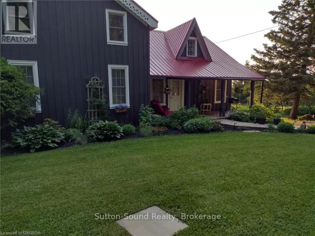 From Meaford Harbour on Georgian Bay, head North on Skykes Street. Continue onto Highway 26 West. Turn Right, following the signs for Coffin Ridge Vineyards & Winery, onto Concession Road 2 North. Farmhouse will be on your Left with the red roof. Discover serenity in this meticulously restored century farmhouse nestled on nearly 4 acres of picturesque countryside, with the majestic Niagara Escarpment as your backdrop and Coffin Ridge Vineyards & Boutique Winery as your esteemed neighbor. Perfectly blending rustic charm with modern elegance, this property is a haven for both relaxation and hobby farming enthusiasts. Settle into the warmth of a fully restored farmhouse, where a striking cedar tongue-and-groove cathedral ceiling in the great room frames a cozy wood-burning fireplace and French doors open onto a sun-drenched deck. The kitchen beckons with contemporary butcher block countertops, industrial accents, and a spacious pantry alongside a charming breakfast nook. Retreat to the tranquility of a main-floor master suite offering privacy and comfort with its own ensuite bathroom. Upstairs, four additional bedrooms and a full bath provide ample space for family and guests, each room offering sweeping views of the expansive landscape. Outdoor enthusiasts will delight in the property's amenities, including a 20x30 barn with hydro service, that at one time had 2 horse stalls, and frost-free hydrant (currently not working), upper and lower pastures, and vibrant perennial gardens. Revel in breathtaking sunset views over Georgian Bay from the deck, or explore the nearby natural beauty atop the Niagara Escarpment. This property offers a secluded retreat while being conveniently near the charming towns of Meaford, Owen Sound skiing at Blue Mountain. Just a short drive away from essential amenities and an easy commute to Kitchener-Waterloo and Toronto, it blends privacy with accessibility. Embrace the essence of the Georgian Bay lifestyle with this extraordinary country estate, where modern comfort meets timeless natural beauty. Don't miss the opportunity to make this dream property your retreat from the everyday hustle and bustle. Seller works all kinds of hours would appreciate 48 hours notice for a showing. (id:27476)