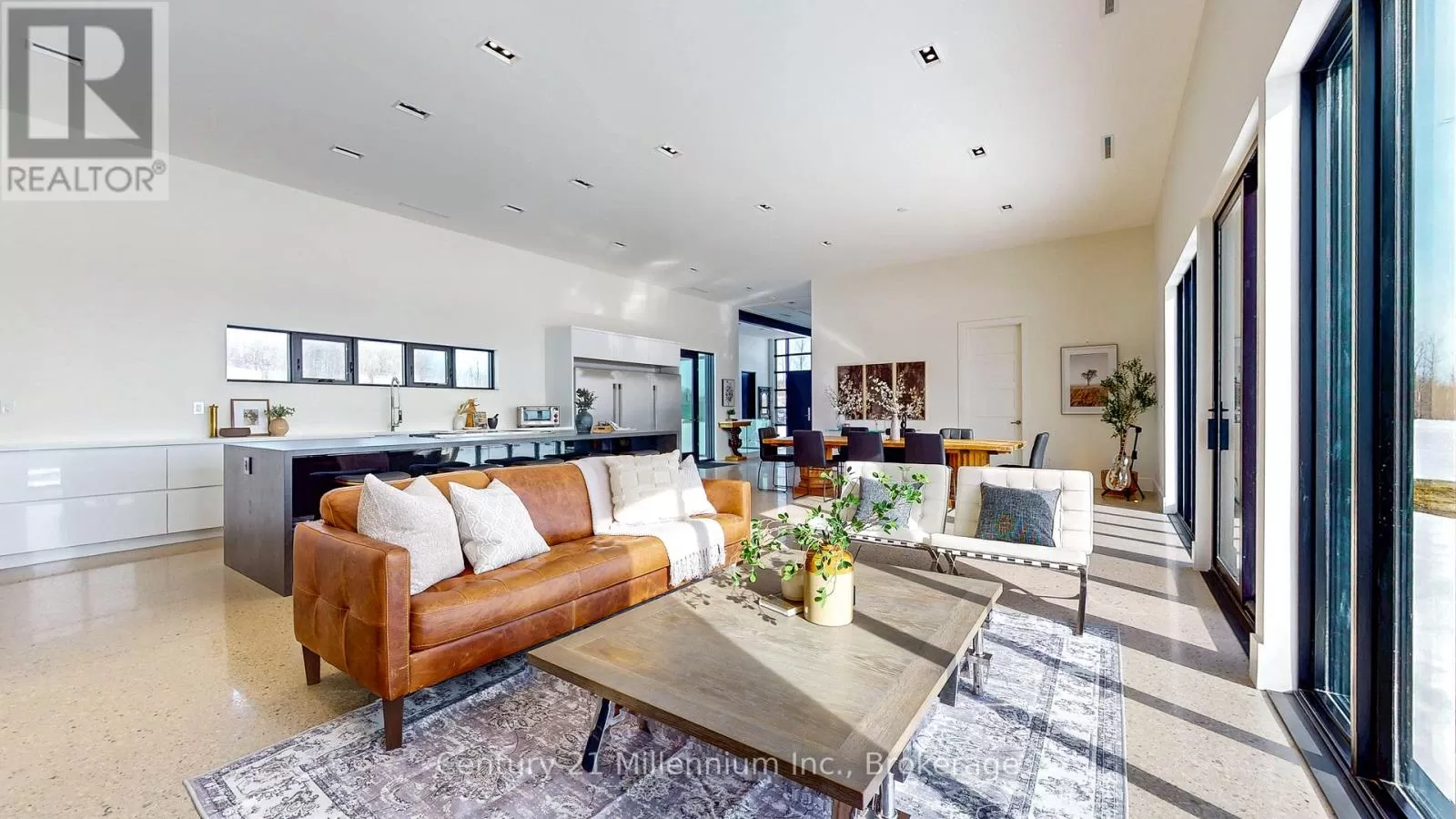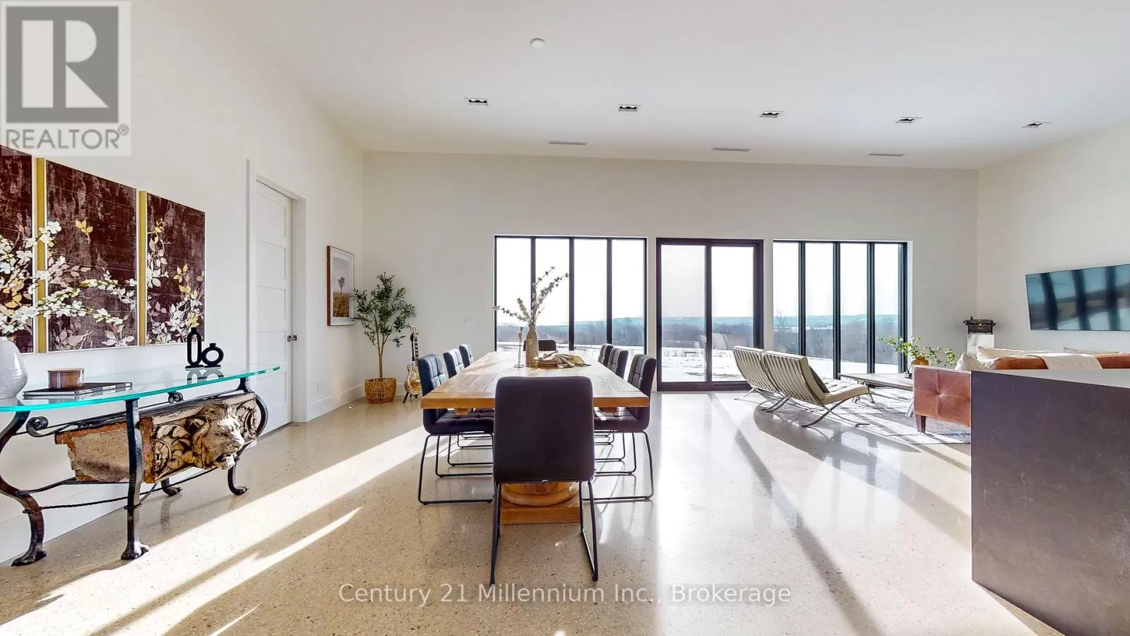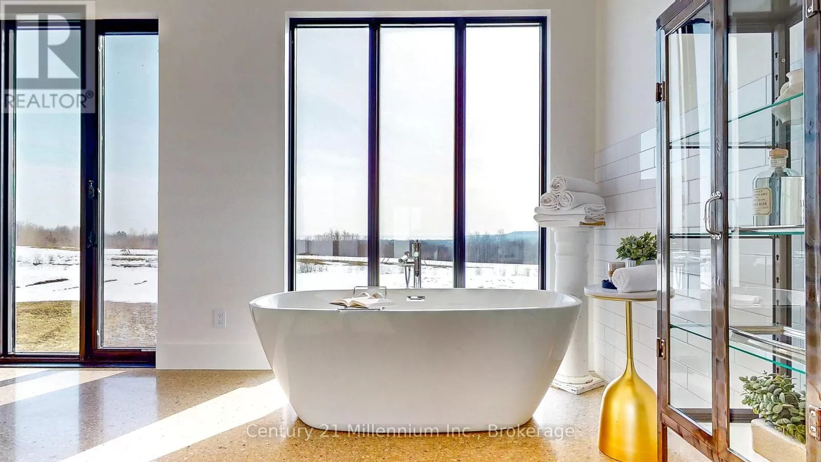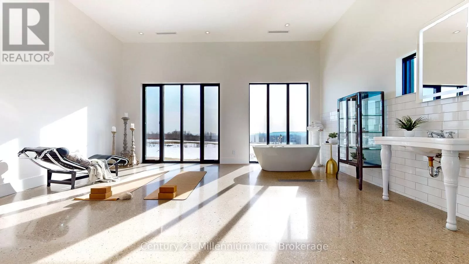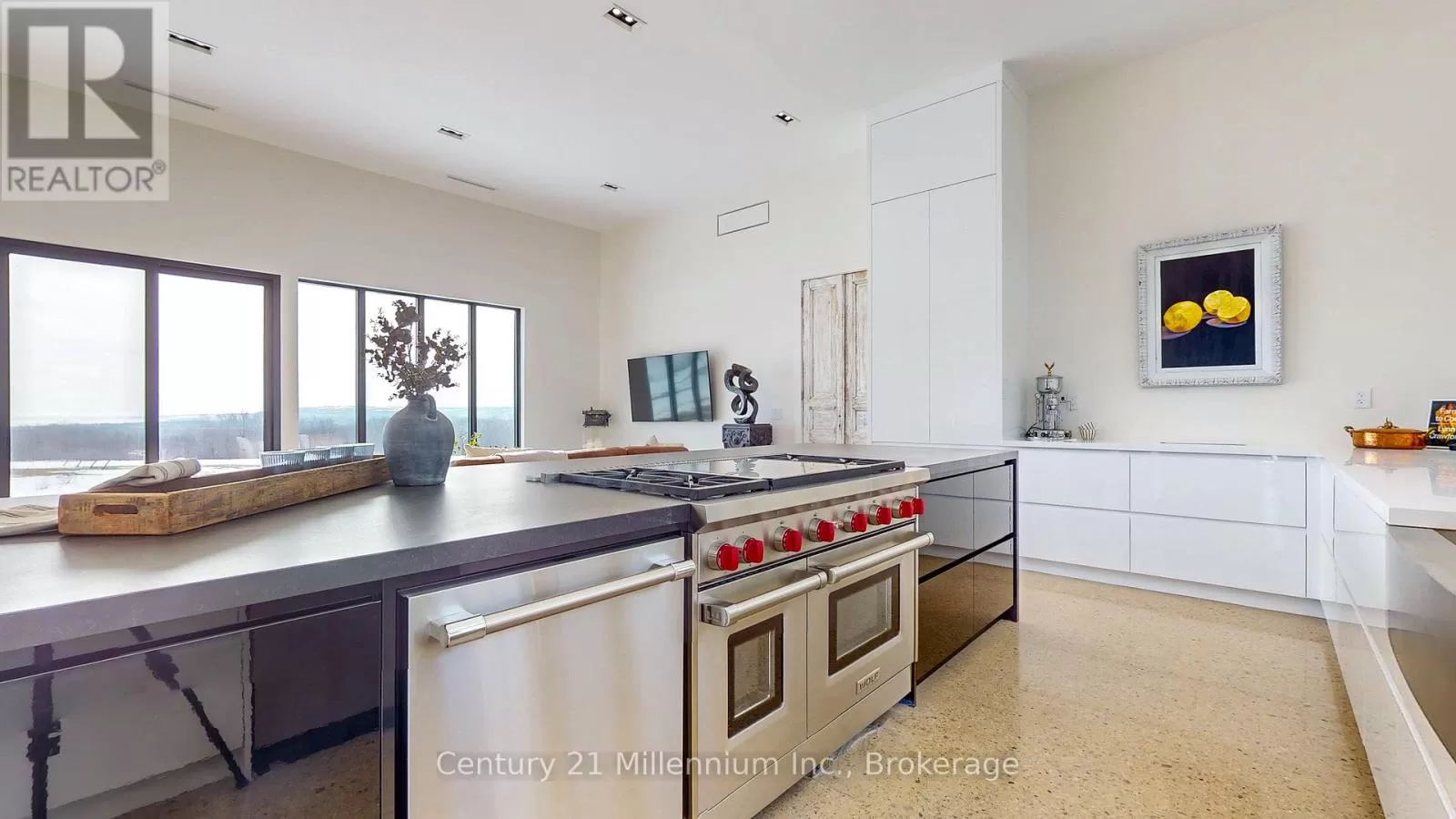 Cross Streets: GREY ROAD 112 AND 22 SIDEROAD. ** Directions: GREY ROAD 112 /22 SIDEROAD. Truly Stunning Contemporary Retreat with Panoramic Views of Georgian Bay , Forest and Escarpment. Discover unparalleled luxury and tranquility at this exceptional property located at 138406 Grey Road 112 in Meaford. Spectacular Scottish Long Home designed by Jason McClean. Set on an expansive 37.9 acres, this contemporary bungalow with walk out offers breathtaking views of both Georgian Bay and the Niagara Escarpment, providing a serene backdrop for modern living. Property Highlights: Bedrooms: 2 spacious bedrooms with heated floors, ensuring comfort throughout the year. Bathrooms: 2 well-appointed bathrooms featuring modern fixtures and finishes. 1 roughed in bathroom on lower level. Living Space: The open-concept design boasts 12-foot ceilings, oversized doorways, and expansive rooms that create a sense of freedom and fluidity. Gourmet Kitchen: Designed by Cabneato, the kitchen is a chef's dream with a built-in Wolf Stainless Steel Pro Range equipped with a downdraft venting system, dual dishwashers, and two industrial stainless steel refrigerators perfect for entertaining family and friends. Lower Level Potential: The partially finished walk-out lower level, with its 9-foot ceilings, offers incredible opportunities for customization. Whether you envision a showroom for motorsport enthusiasts or a micro-winery, the space is primed for your creative touch. Micro-Vineyard: Embrace the property's south-facing slope, which creates an ideal microclimate for viticulture. The chemical and pesticide-free micro-vineyard features 400 professionally designed vines, offering the potential for boutique winemaking. Enjoy radiant heating throughout the polished concrete floors and the benefits of triple-paned windows, ensuring both comfort and sustainability. The expansive acreage provides total privacy and is perfect for a small hobby farm or simply enjoying the captivating natural beauty that surrounds the property. Located just minutes from Meaford's charming downtown. (id:27476)