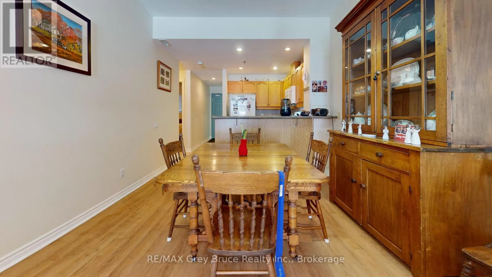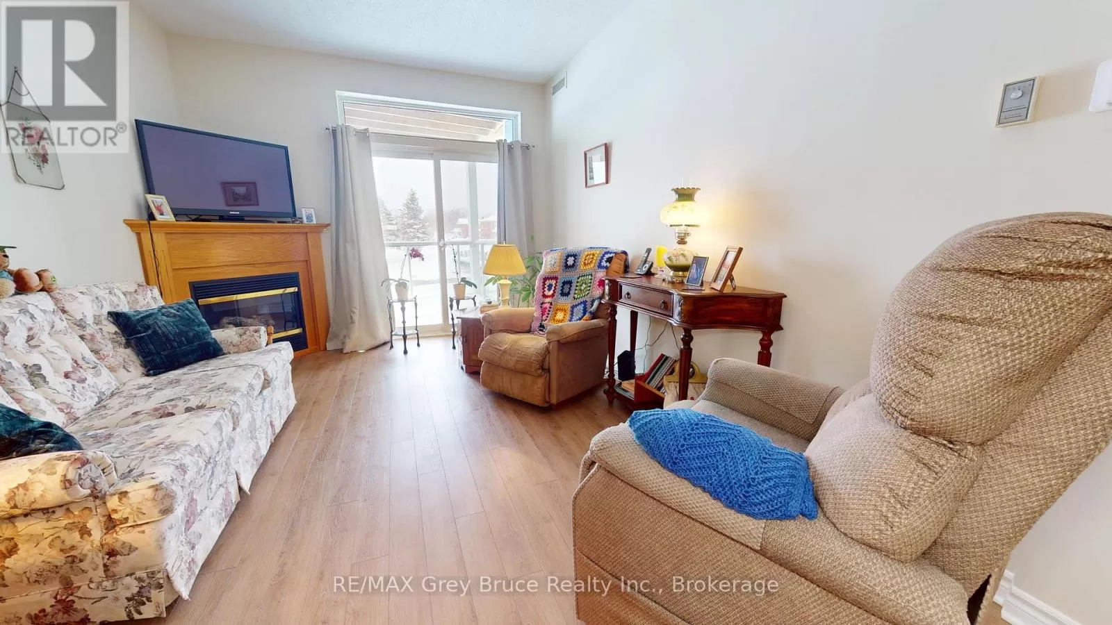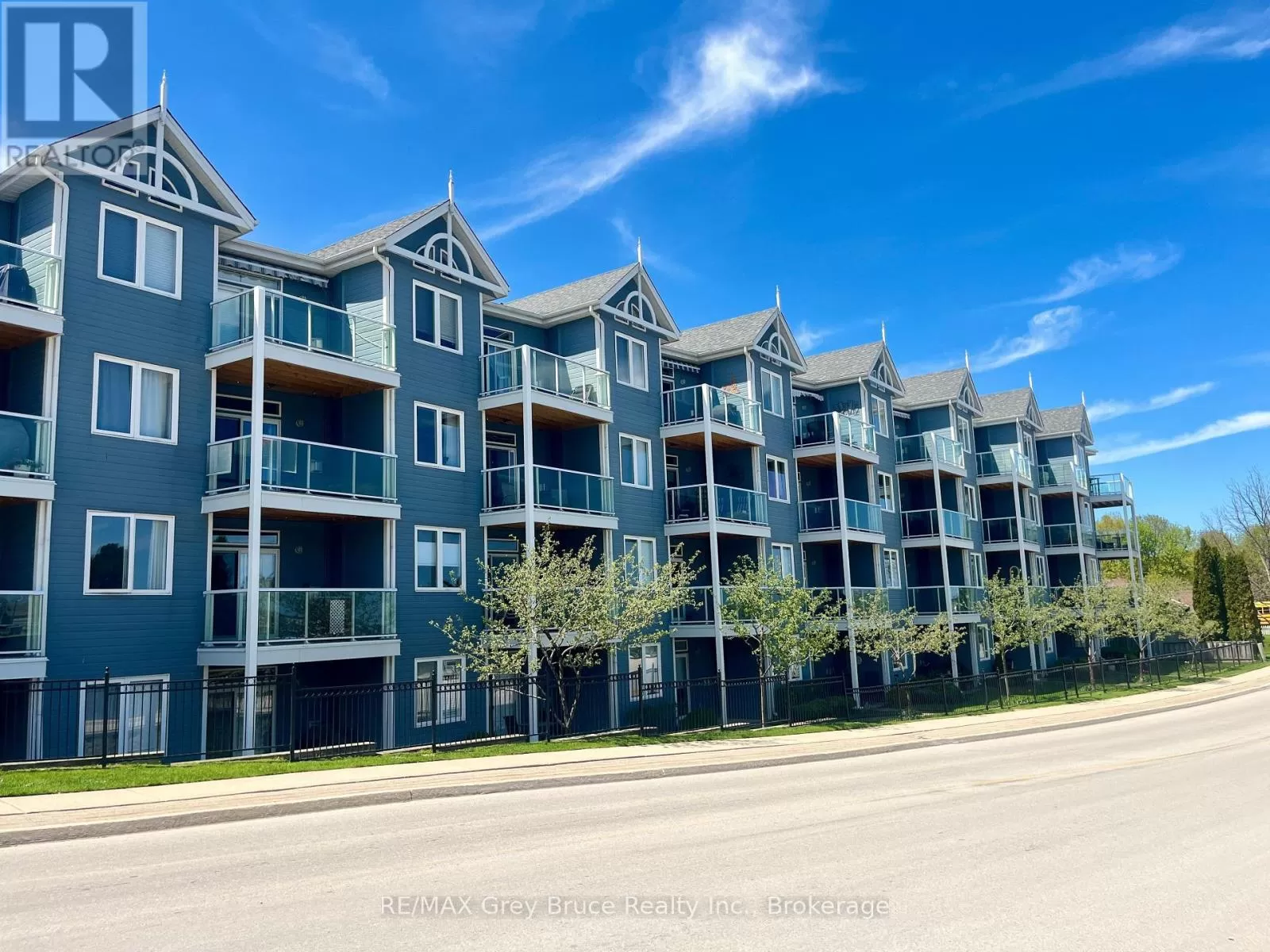 Cross Streets: Bayfield St and Trowbridge St. ** Directions: Sykes St N to Trowbridge St to Bayfield St, property on West side of road, see signs. Looking for a maintenance free lifestyle? This immaculately maintained 2-bedroom, 2-bath home on the 3rd floor in desirable Harbourside Condominiums is looking for a new family to call it home. Perfectly located just a short walk from downtown Meaford, you will have easy access to shopping, dining, and personal care services. Sit on your balcony and watch the waterfront! The beach and parks are a short walk away. This bright and inviting 954 square foot unit features a spacious open-concept layout, with a large balcony showing gorgeous water views! Move in ready, you will be instantly impressed at the tasteful decorating, and the new flooring installed throughout. The primary suite boasts an ensuite bath & a large walk in closet. The friendly and welcoming community atmosphere makes this condo a wonderful place to call home. The meeting/entertainment room is available for reading and puzzles, or, as it has a small kitchen, can be used for larger groups. Complete with one parking spot, situated close to the entrance, and a locker for extra storage, this condo is perfect for those looking to enjoy scenic waterfront living with no maintenance, modern conveniences. Don't miss this incredible opportunity! (id:27476)