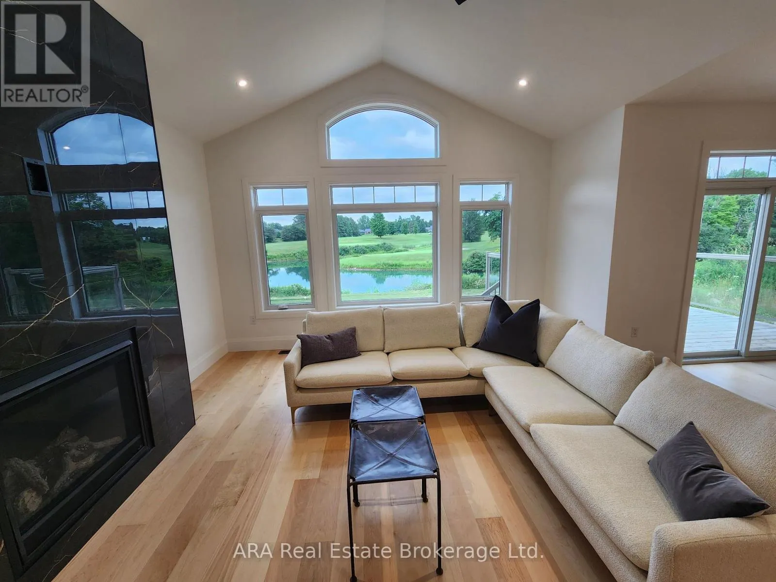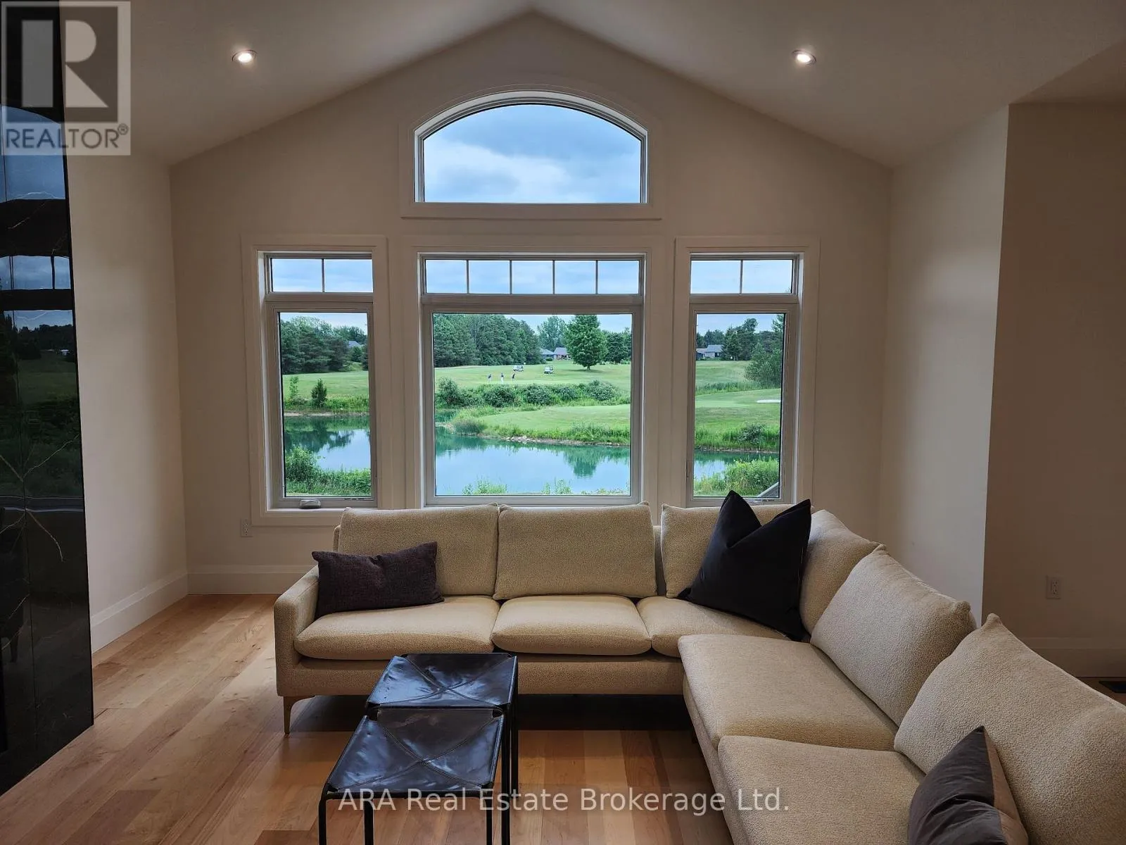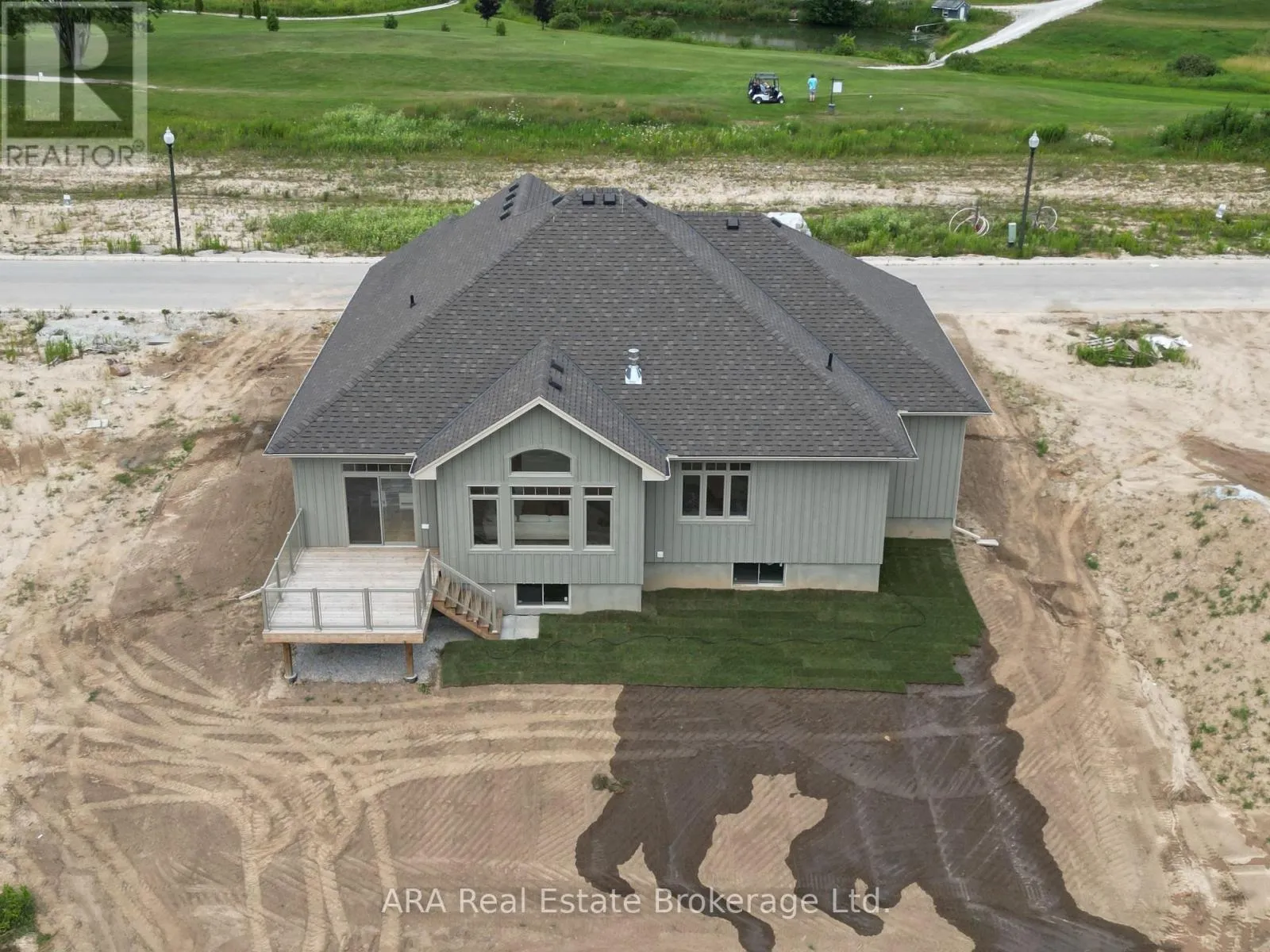 Cross Streets: Ridge Road and St. Andrews Drive. ** Directions: Highway 26 to Ridge Road, South on Ridge Road to Hilton Lane, West on Hilton Lane to the top of the hill. Property is on the South side. Scenic Views from Bungalow with Pond and Green Directly Behind Randle Run #5 Green - This beautifully designed 3-bedroom bungalow offers tranquil views across a large pond to the #5 and #6 greens on Randle Run, creating a peaceful and picturesque setting for everyday living. Enjoy the scenery from your back deck and main living areas, where large windows frame the natural beauty. Start your mornings with a quiet beverage or entertain friends in the evening this home is perfect for both relaxation and hosting. The cathedral ceiling in the living room enhances the sense of space and light, while the third bedroom offers flexibility as a home office or guest room. The two-car garage includes extra space at the rear, ideal for a workbench or golf cart parking. With 1,766 sq ft of living space, this home provides comfort and functionality in a sought-after location. **Important Information: Applicable sales tax is not included in the purchase price. Due to the current political landscape surrounding taxation on properties under $1.5 million, buyers should be aware that sales tax still applies. The roll number and MPAC assessment will be completed after final occupancy. HST is in addition to the purchase price, but the Builder is open to assignment of the Principal Residence Rebate from qualified buyers. Please Note: This property has been professionally staged. All furniture and décor shown in the photos are not included in the sale. (id:27476)