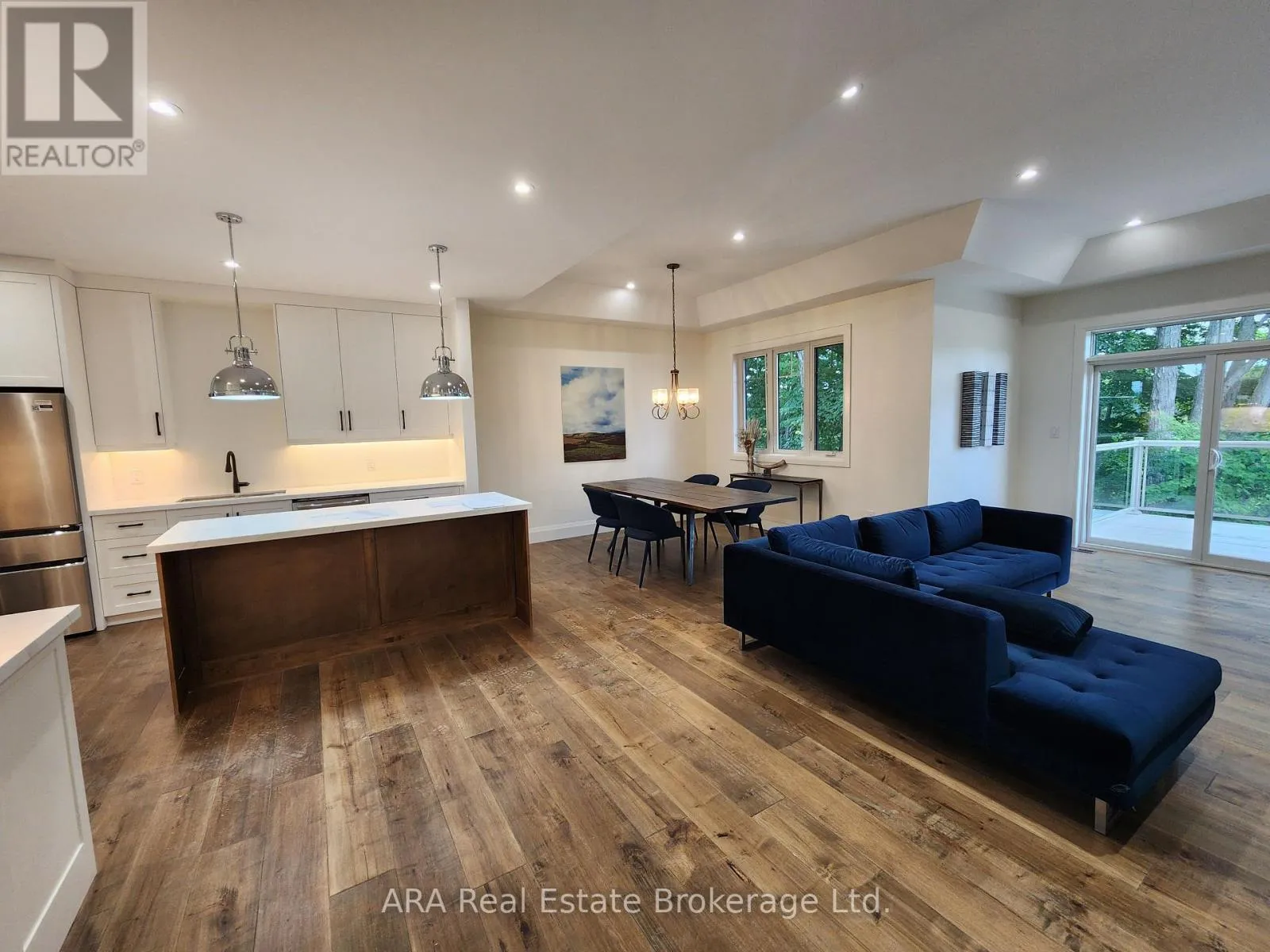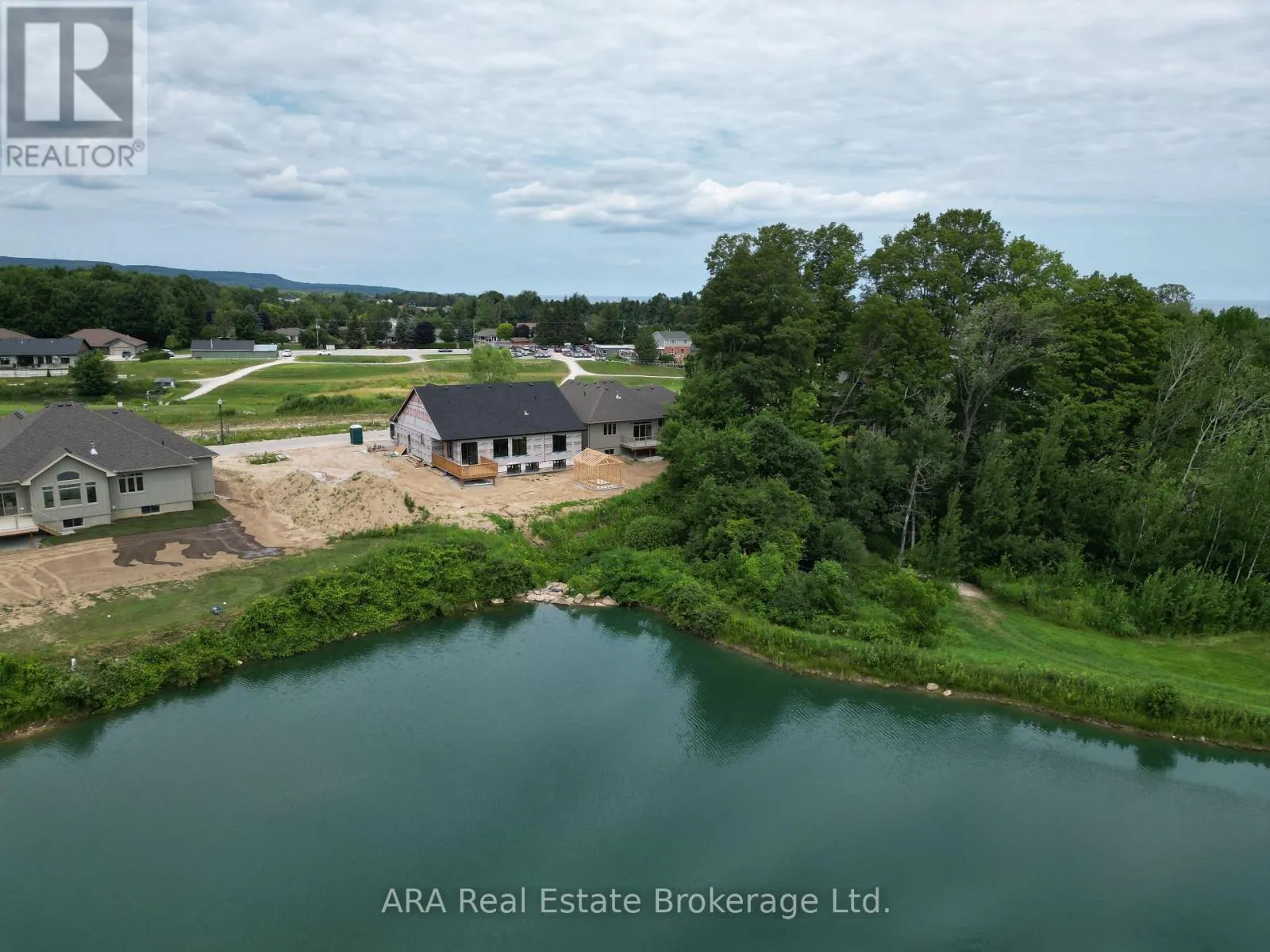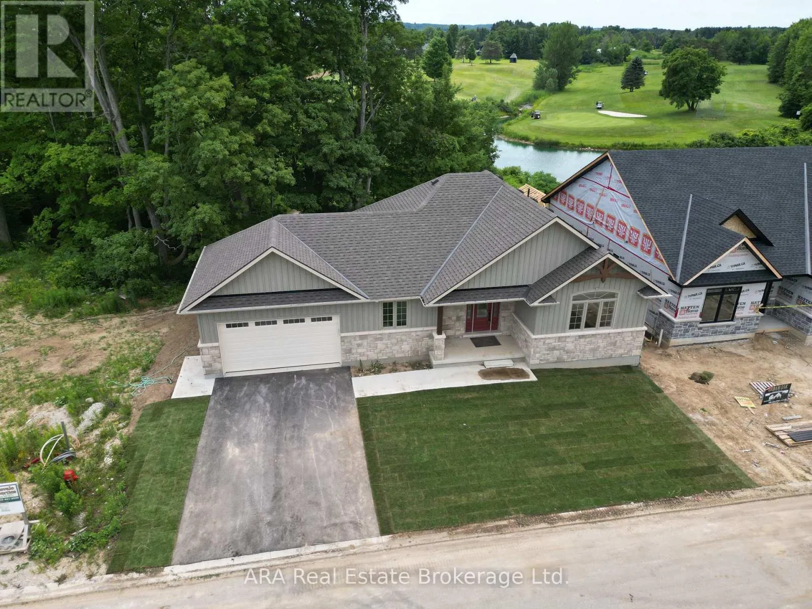 Cross Streets: Ridge Road and St. Andrews Drive. ** Directions: Continue west on Highway 26 as you leave Meaford heading toward Owen Sound. Turn left on Ridge Road and follow until the road curves left and dips down. Turn right onto Hilton Lane. Property is on your left. Scenic Bungalow Overlooking Pond and Fairway - This elegant 2-bedroom bungalow offers stunning views through a ravine and across a large pond to the 5th green of the golf course. Enjoy the tranquil scenery from your dining room, living room, and primary bedroom, each thoughtfully positioned to capture the natural beauty. Architectural details include coffered ceilings in the dining and living rooms, and a cathedral ceiling in the front bedroom, adding character and charm throughout the home. Start and end your day with your favorite beverage on the spacious rear deck, the perfect spot to relax and take in the peaceful surroundings. **Key Details** Applicable sales tax is not included in the purchase price. Due to recent political developments surrounding tax policy on properties under $1.5 million, buyers should be aware that applicable sales taxes still apply and are not included in the listing price. Development and initial building permit fees are included in the base listing price. Please Note: This property has been professionally staged. All furniture and décor shown in the photos are not included in the sale. Kitchen appliances are included in the sale. Property taxes have not yet been assessed, as this is a new build awaiting its first occupant - it could be you! (id:27476)