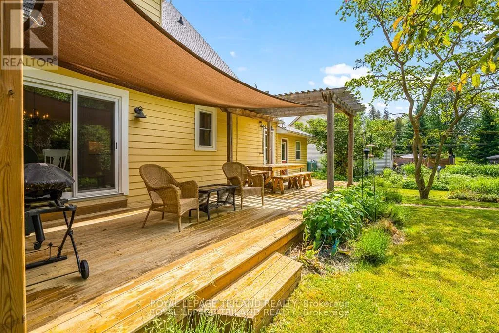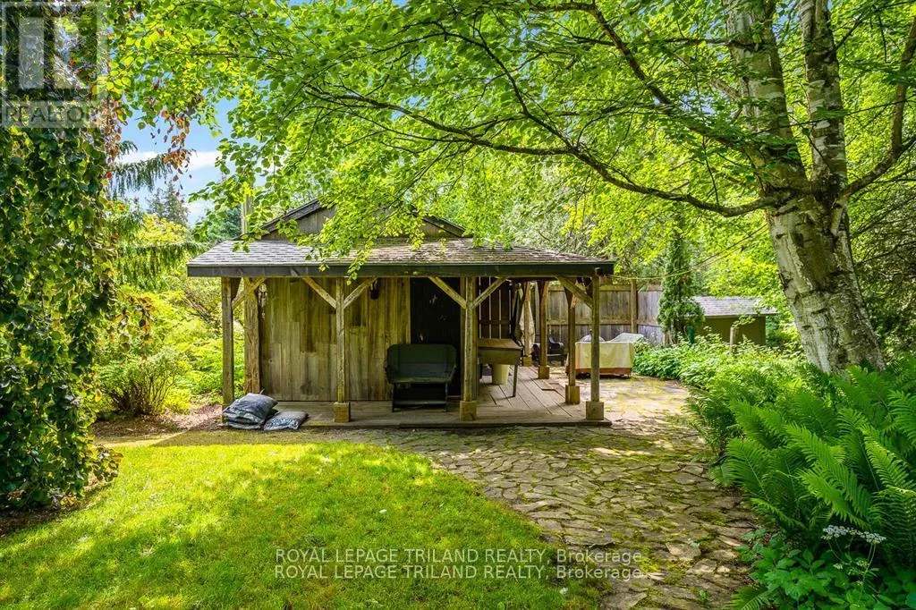 Cross Streets: Grey Road 15 and Tom Thomson Line. ** Directions: From Owen Sound travel north on Grey Road 15. Pass Hibou Conservation Area, pass Bothwell's Creek bridge. The home is on the west side of the road. Nestled in the heart of historic Leith on a large lot sits the most picturesque classic home, also known as the Jewel of the Village. A stunning combination of historic charm and modern conveniences. This home has been lovingly maintained throughout the decades. Cozy up to your morning cup of java or tea on the covered front porch. With 4 bedrooms and two full baths a large family can comfortably enjoy this home. Main floor bedroom could be conveniently used as an in-law suite or yoga studio. Beautiful, updated kitchen with quartz countertops and island, also open to the dining room. The reading room with its vast array of windows is a haven. Living room features huge original sliding pocket doors. Multi level deck with canopy sunshade and pergola makes outdoor living easy. Meandering garden pathway with curated gardens lead to a 24 X 12 cabin with woodstove, wrap around porch and a lingering view of the river below. Multifunctional shed for gardening and storage. Attic is accessible and fully insulated waiting for your final finishings. Enjoy the extraordinary sunsets each evening by taking a short walk to shallow sandy Leith Beach. Proximity to Georgian Bay and Owen Sound. Nature lovers dream with Ainslie Wood Conservation Area to the north of Leith; Hibou Beach and Conservation Area to the south and the Bruce Trail. (id:27476)