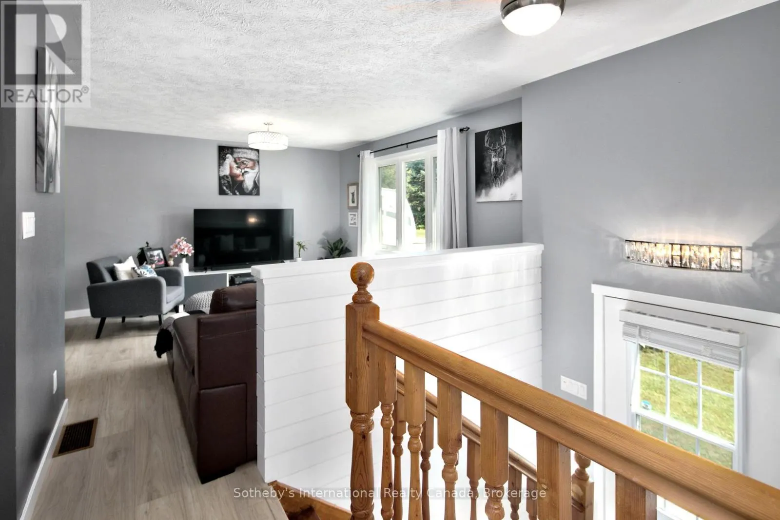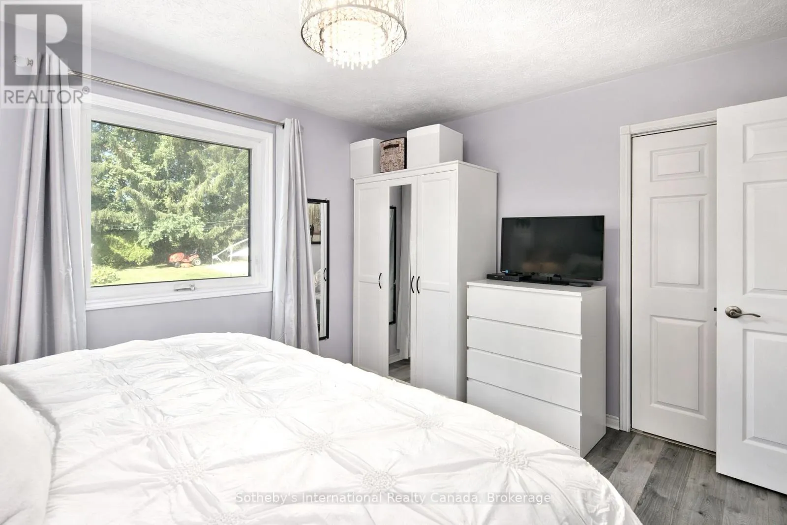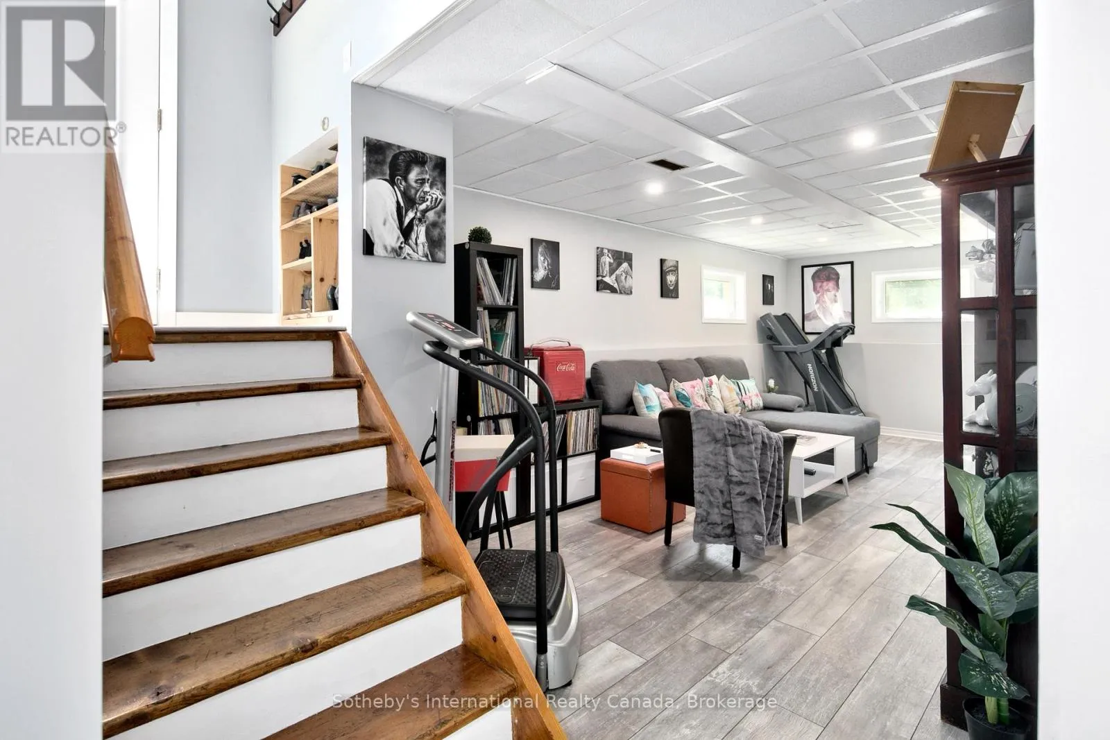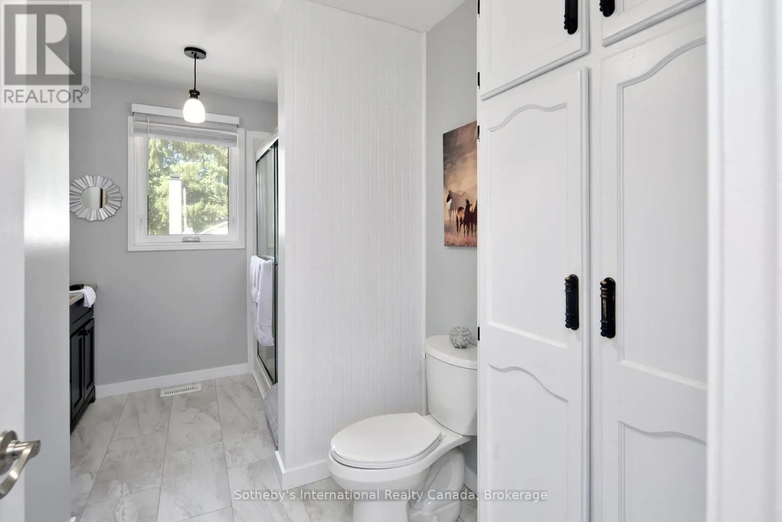 Cross Streets: Greenfield Drive. ** Directions: Cook Street to Miller continue on Grey Rd 12 and turn right on Greenfield Drive. Welcome to this charming raised bungalow nestled on a highly sought-after, quiet cul-de-sac. Situated on a generous 0.5+ acre lot, this home offers exceptional privacy surrounded by mature trees your own private retreat just minutes from town. Step outside onto the expansive deck, perfect for entertaining or simply enjoying the serene, tree-lined setting. Step inside to discover a beautiful abundance of light, and an open interior featuring thoughtfully renovated rooms. The main floor boasts a spacious primary bedroom, two additional bedrooms, an open concept kitchen highlighted with quartz counter tops and a stylish shiplap feature wall that adds warmth and character. The lower level offers even more living space with an additional bedroom, a large rec room, an exercise room, and the potential for an in-law suite ideal for multigenerational living or guests. This is a rare opportunity to own a move-in ready home in a tranquil, family-friendly location with plenty of room to grow. (id:27476)