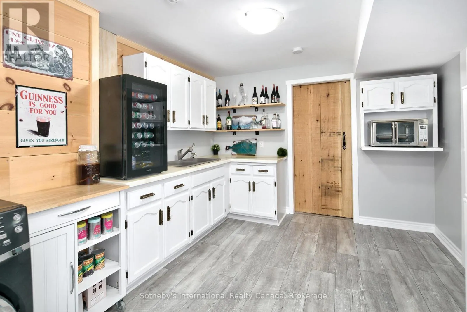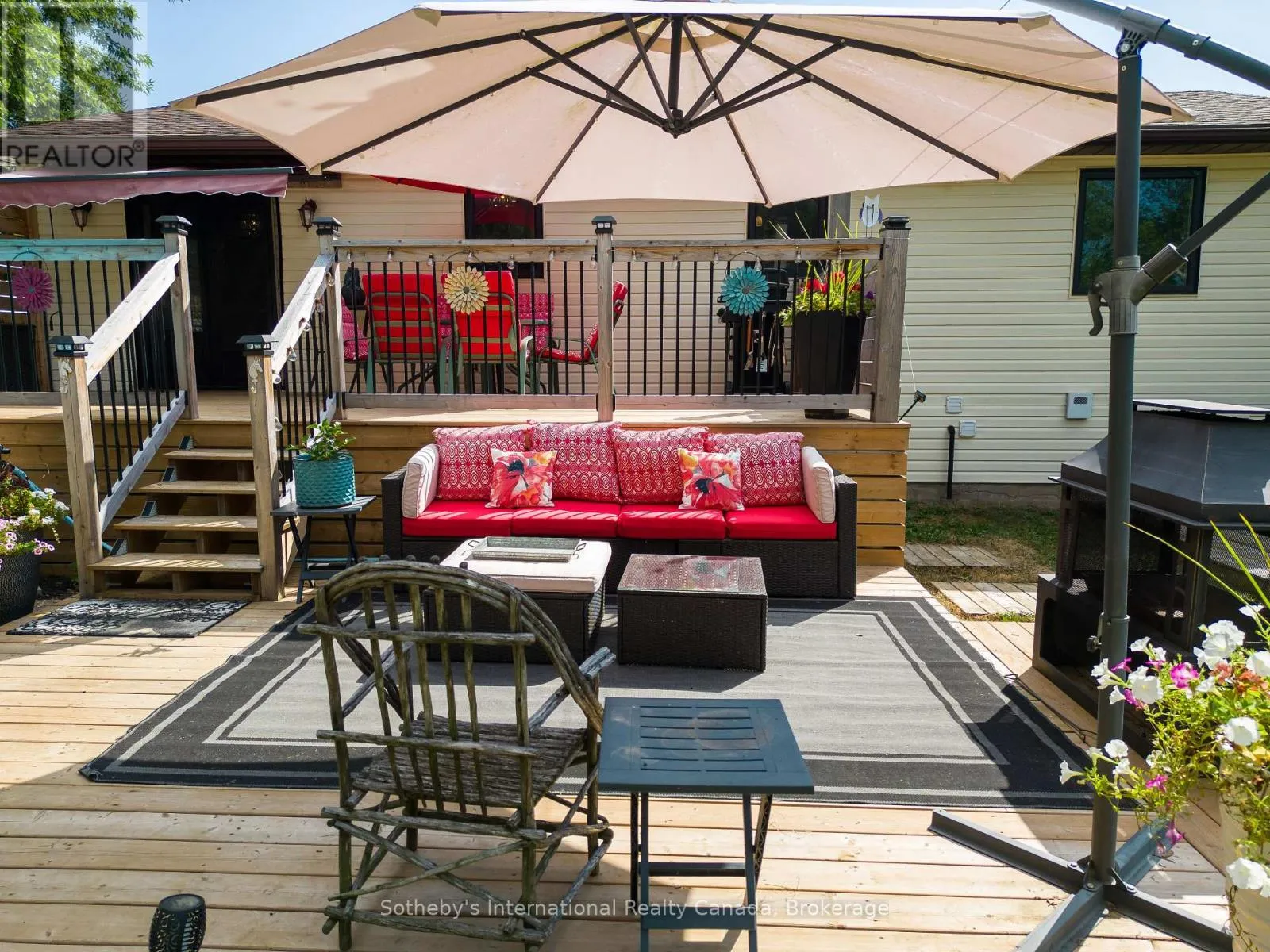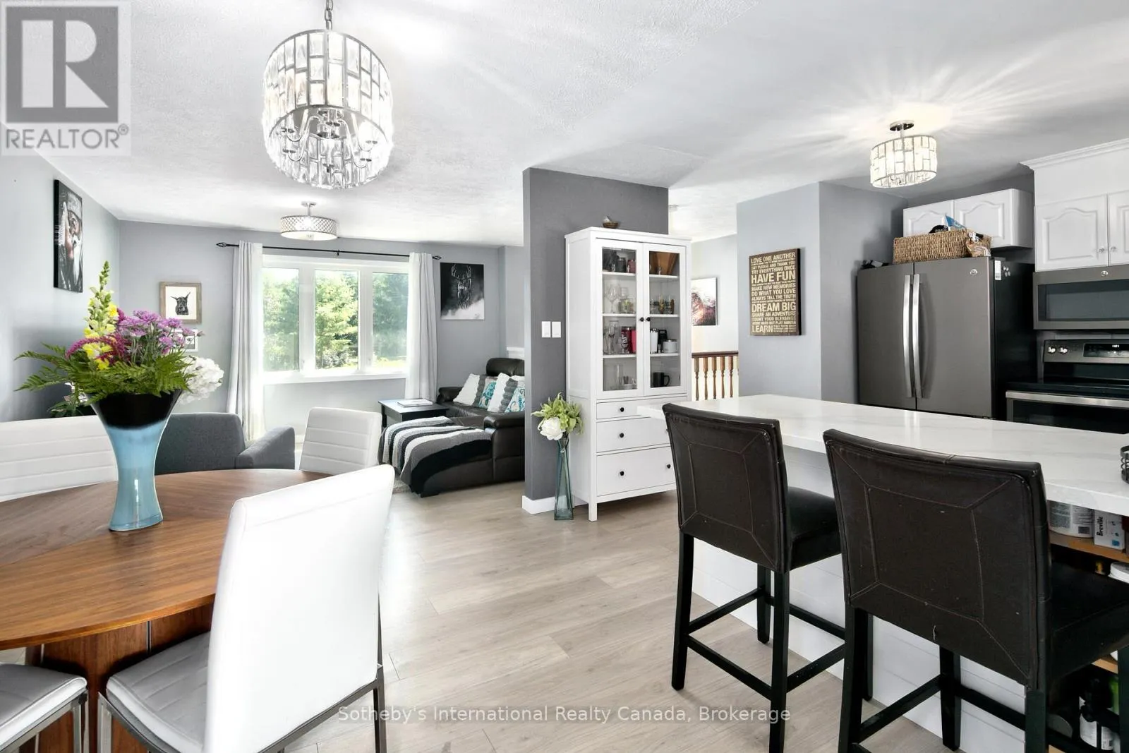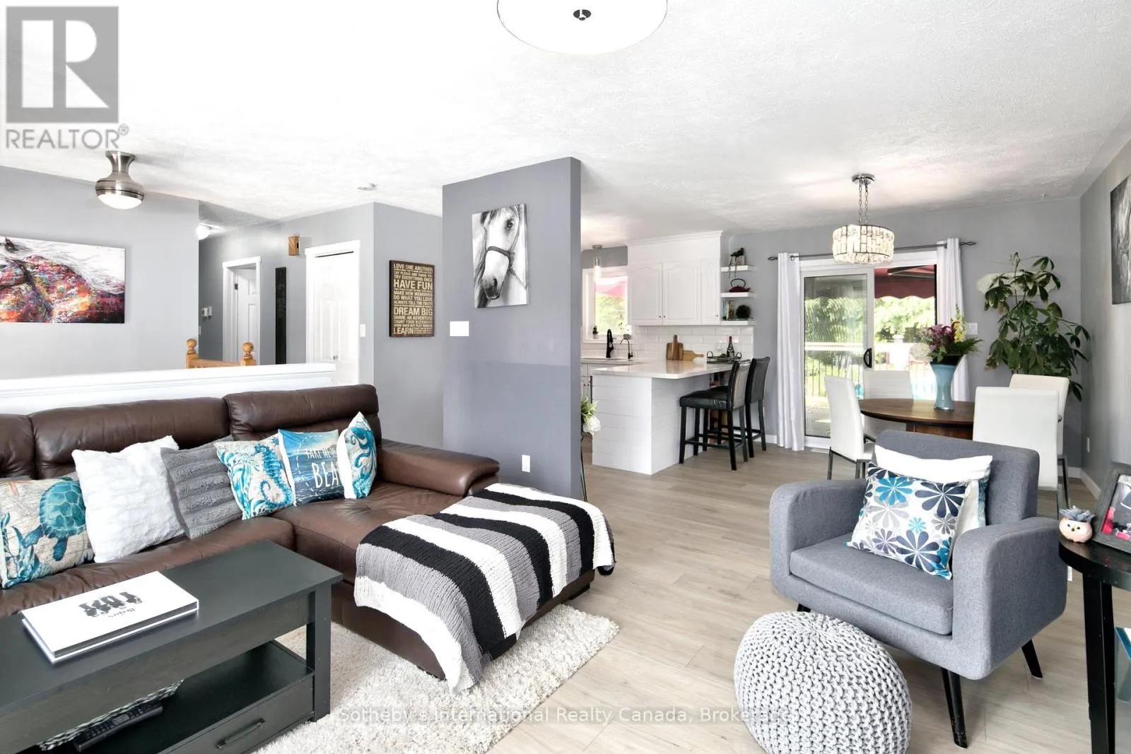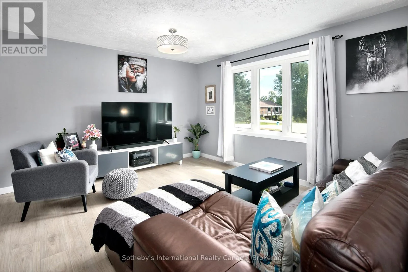 Cross Streets: Greenfield Drive. ** Directions: Cook Street to Miller continue on Grey Rd 12 and turn right on Greenfield Drive. Welcome to this charming raised bungalow nestled on a highly sought-after, quiet cul-de-sac. Situated on a generous 0.5+ acre lot, this home offers exceptional privacy surrounded by mature trees your own private retreat just minutes from town. Step outside onto the expansive deck, perfect for entertaining or simply enjoying the serene, tree-lined setting. Step inside to discover a beautiful abundance of light, and an open interior featuring thoughtfully renovated rooms. The main floor boasts a spacious primary bedroom, two additional bedrooms, an open concept kitchen highlighted with quartz counter tops and a stylish shiplap feature wall that adds warmth and character. The lower level offers even more living space with an additional bedroom, a large rec room, an exercise room, and the potential for an in-law suite ideal for multigenerational living or guests. This is a rare opportunity to own a move-in ready home in a tranquil, family-friendly location with plenty of room to grow. (id:27476)
