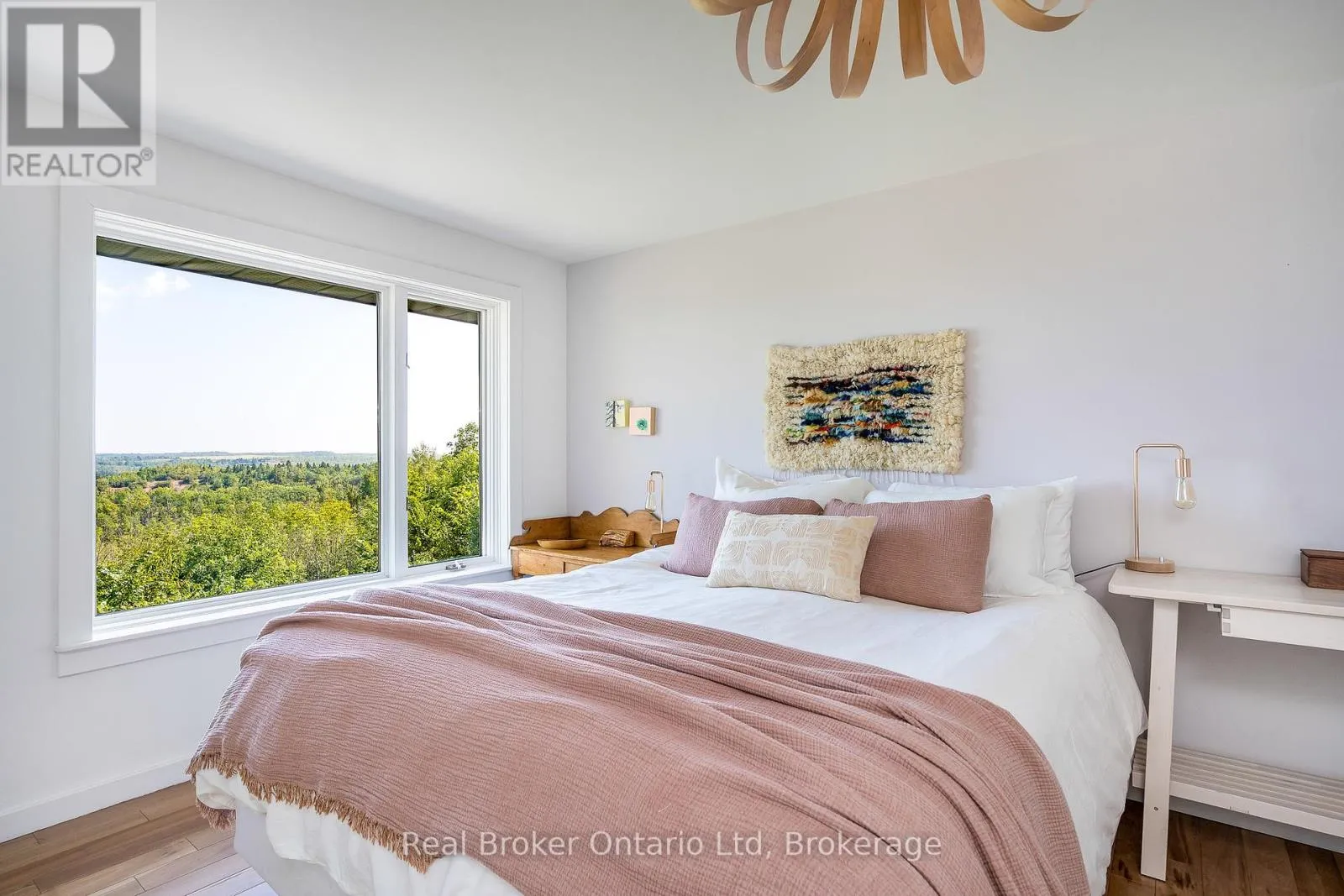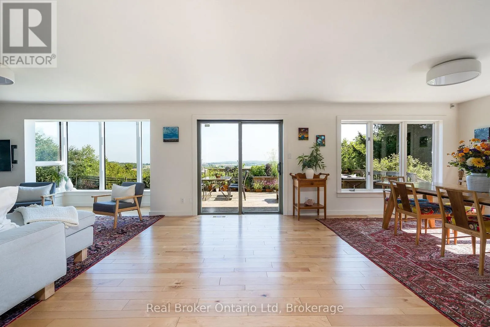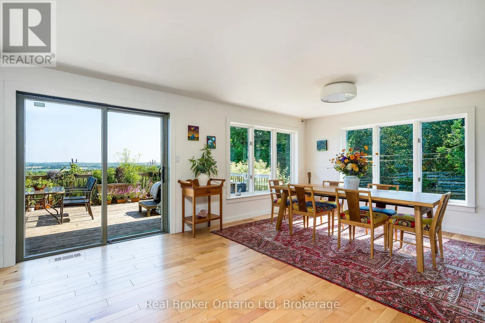 Cross Streets: Grey Road 7 & Old Mail Road. ** Directions: From Grey 7, turn on to Old Mail Road and head East. The moment you turn in, you can feel it - you've arrived somewhere unlike anywhere else. On a quiet country road, a long winding driveway leads to a secluded retreat. More than sixty acres of fields, rolling hills, fruit trees, and forests unfold in every direction, threaded with private trails to wander. In the distance, the shimmer of Georgian Bay. Sunrises that take your breath away, star-filled skies at night, and views that feel limitless. At the heart of it all is a one-of-a-kind healthy home, lovingly restored using biological building principles and natural, eco-friendly materials. Solid hardwood floors run throughout, and natural light fills every corner of this four-bedroom, four-bathroom home. A wood-burning fireplace anchors the main living space, adding both warmth and atmosphere year-round. The kitchen is spacious and inviting, designed for gathering, while the bathrooms are dreamy in every way. The primary suite is a retreat of its own, complete with a four-piece ensuite, walk-in closet, lounge for relaxing, and a deck overlooking the property - an ideal spot for quiet evenings or comfortably welcoming in-laws and guests. From every room, you'll take in stunning views of the land and valley beyond. Practicality meets purpose with geothermal heating and cooling for efficiency, a two-car garage with a built-in workshop, and generous storage throughout. Though it feels worlds away, it's just minutes from Thornbury, Meaford, Georgian Bay, top schools, and local farm stores. It's a home that feels good to live in, inside and out. Simply put, this place is special. (id:27476)