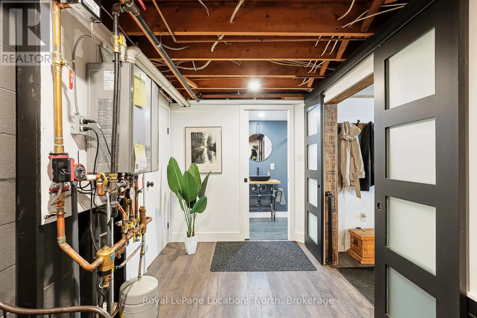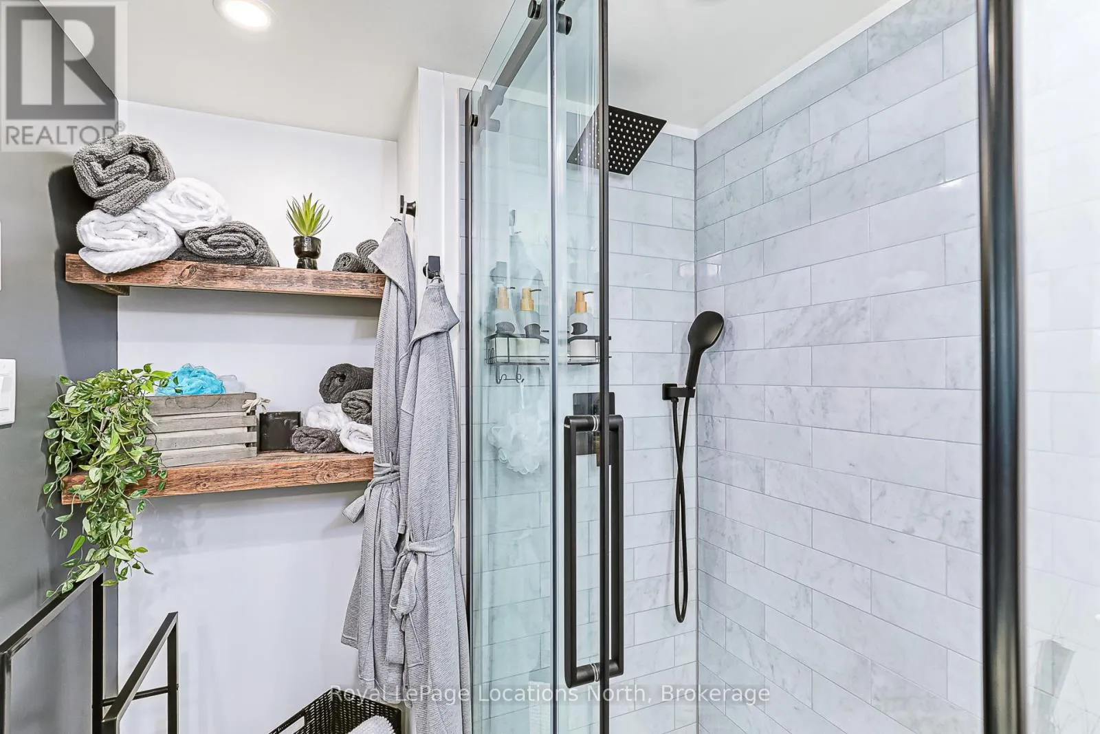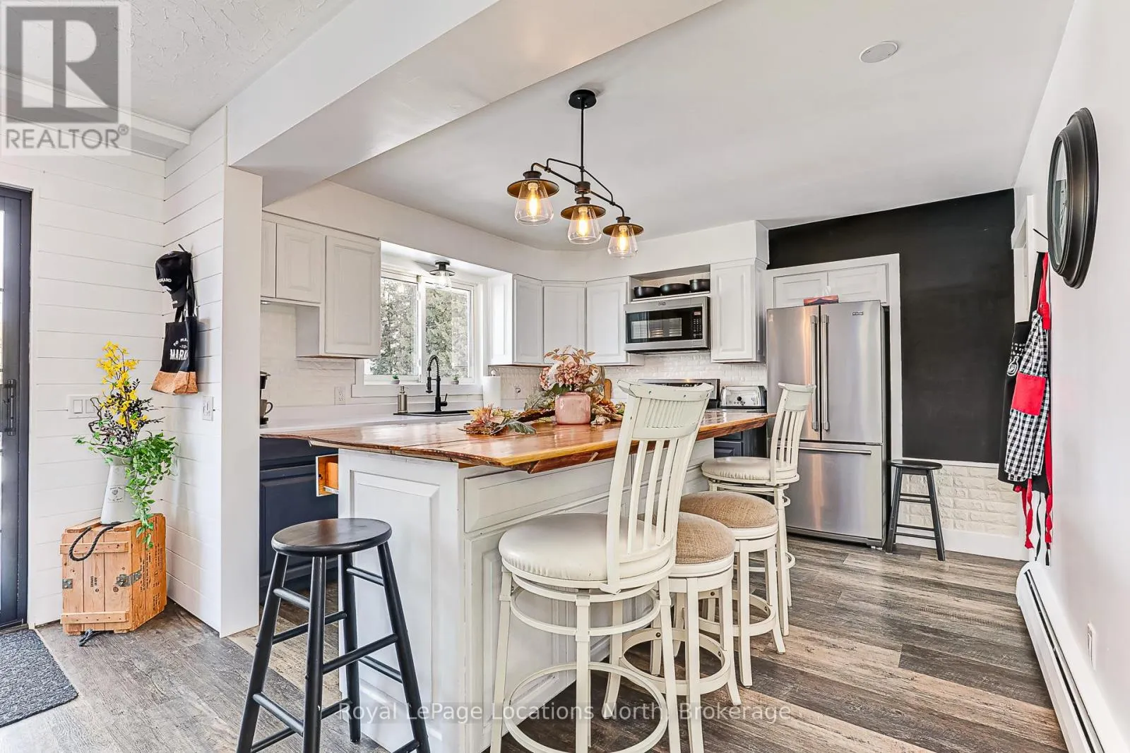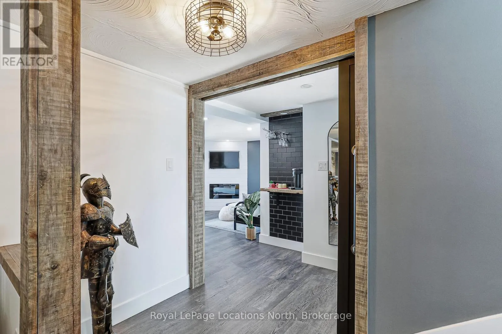 Cross Streets: Highway 26 and St Vincent St. ** Directions: Highway 26 to St Vincent Street. Right on Montgomery. #128 see sign. Welcome to this fully renovated gem on one of Meaford's most sought-after streets Montgomery Street, affectionately known as Teachers Row. Homes here rarely come to market, and its easy to see why. This charming 3-bed, 3-bath solid brick home sits on over half an acre, offering in-town convenience, timeless style, and relaxed living just a short stroll to Georgian Bays sandy shores and the local school. Bathed in natural light from sunrise to sunset, the home is perfectly positioned to enjoy both morning rays and evening views from the front and back decks. Curb appeal shines with a paved driveway, natural stone walkway, and heated, partially insulated garage with inside access via the lower-level mudroom. Inside, the open-concept kitchen and dining area impresses with a custom handcrafted island, solid wood cabinetry, and Maytag True Fingerprint-Resistant appliances. Step through the walkout to your fully fenced backyard, ideal for entertaining or taking in the seasonal Bay views. The main floor features a spacious primary bedroom with LG Laundry Tower, a generous second bedroom, and a luxurious 5-piece bath with double sinks and soaker tub. The lower level includes a private third bedroom with 3-piece ensuite (in-floor heat, rainhead shower, custom vanity), a second kitchenette, cozy living area with electric fireplace, and separate entrance ideal for guests or income potential. A bonus 380 sq ft family room features a gas fireplace and its own 3-piece bath with in-floor heating and rainhead shower, perfect for movie nights or playtime. Outside, enjoy stone landscaping, a sand pad with drainage for pool or firepit, 30AMP RV hookup, and generator rough-in all ready for year-round enjoyment. This is Meaford living at its best. (id:27476)