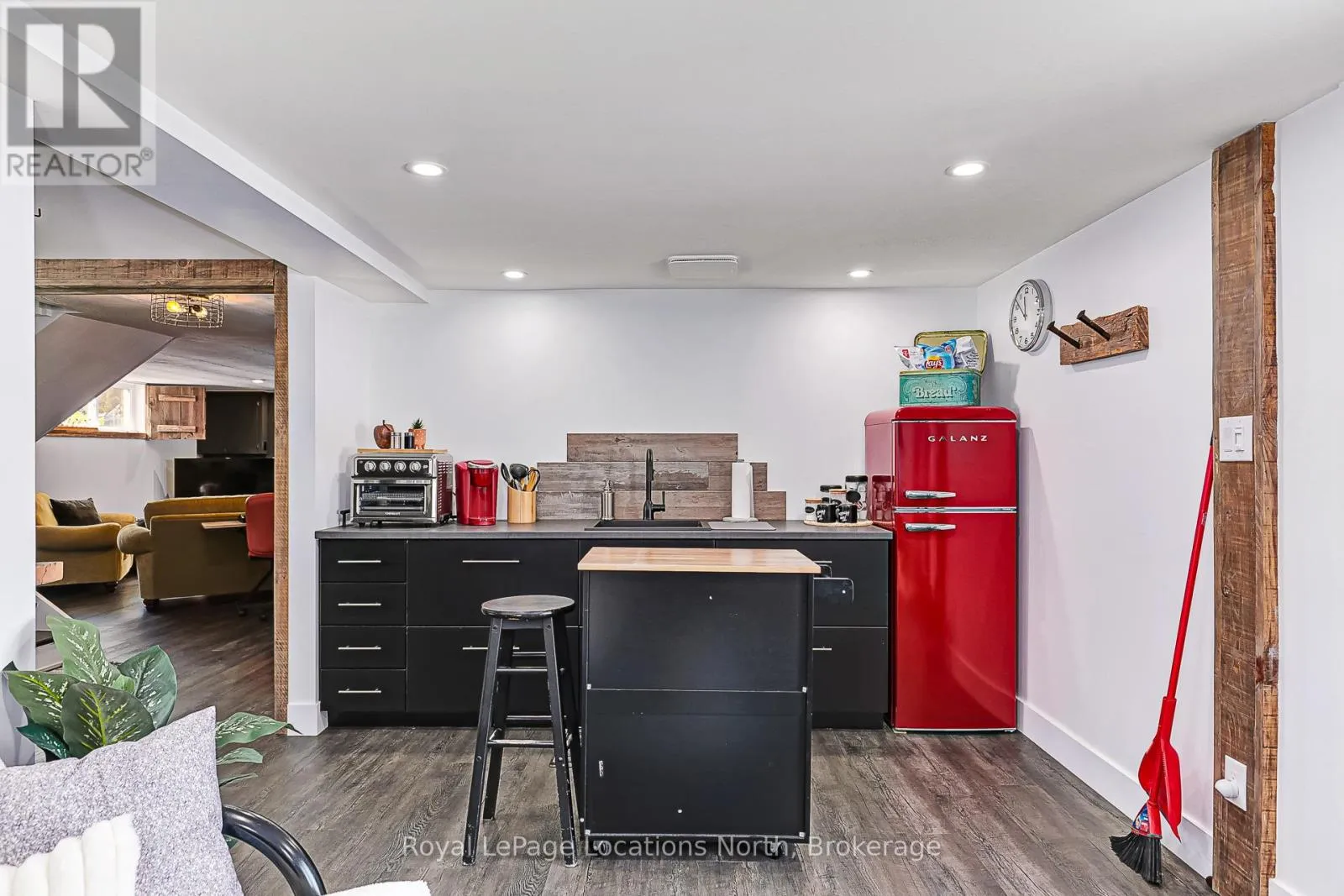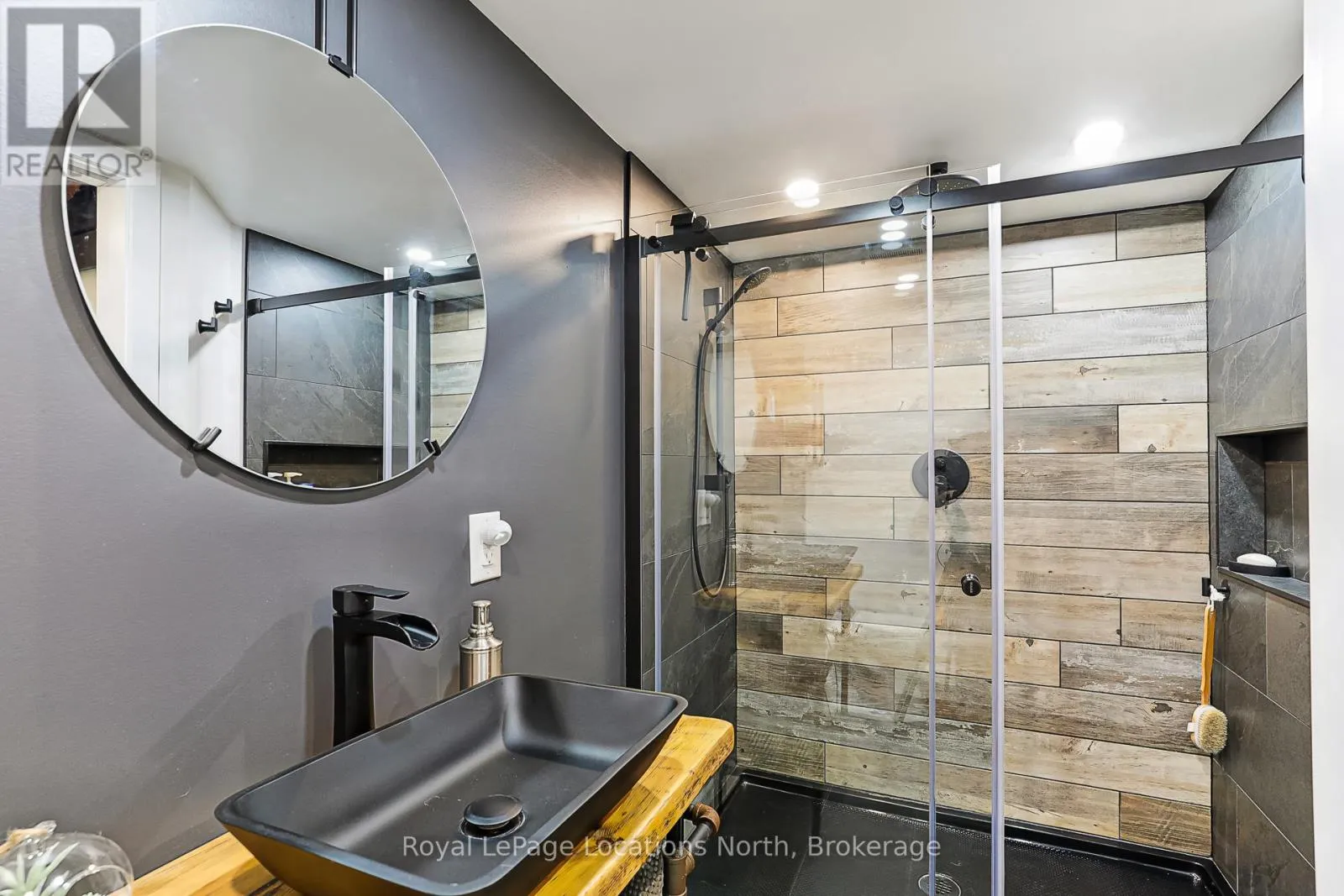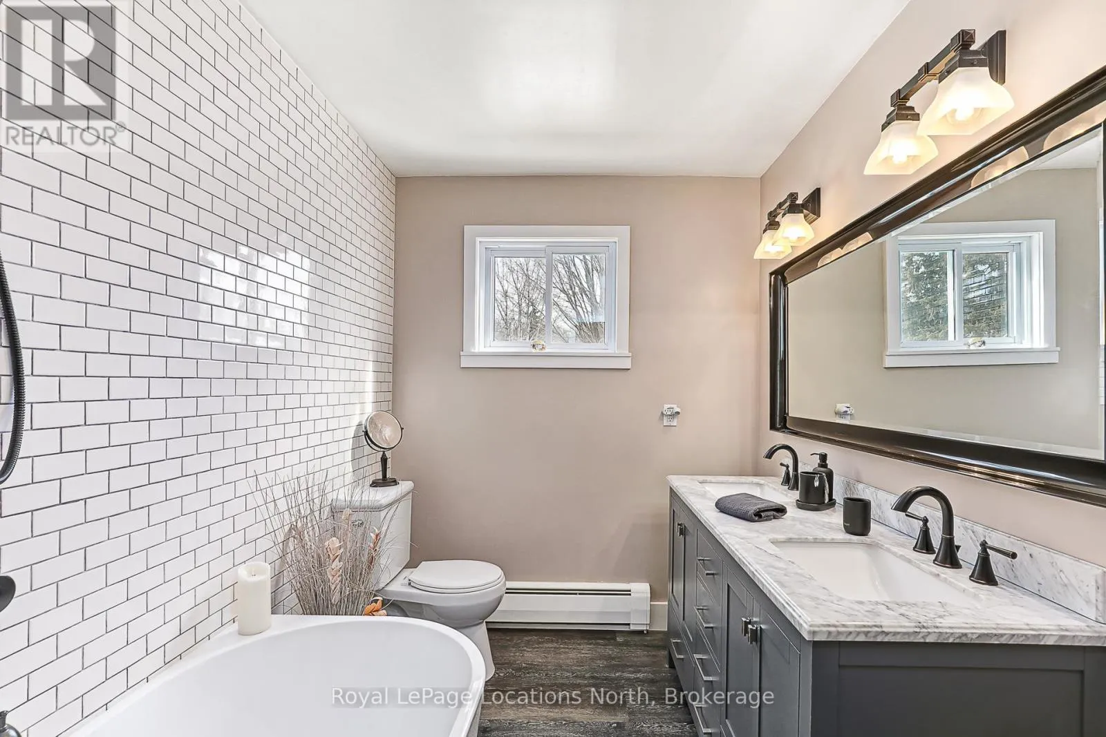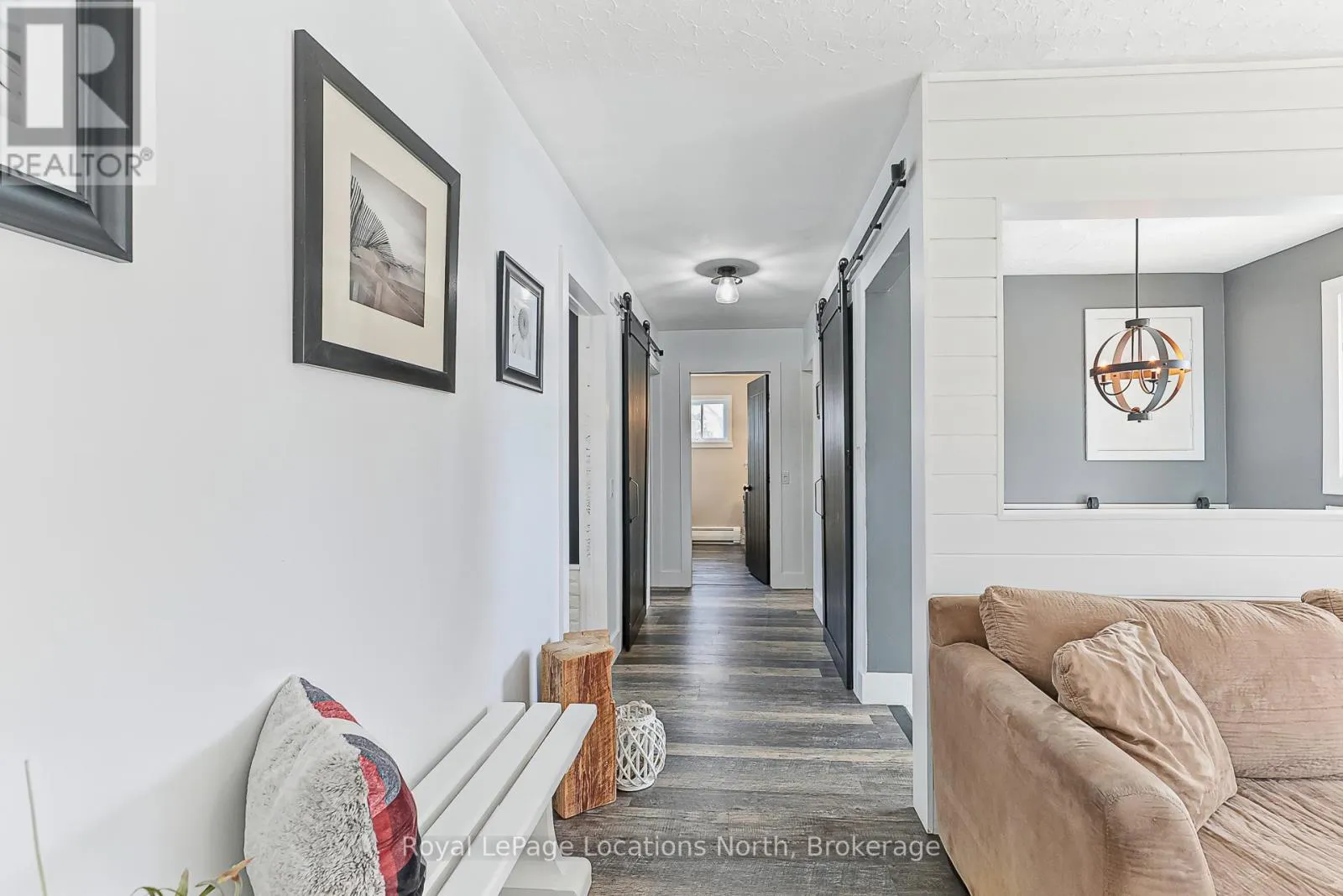 Cross Streets: Highway 26 and St Vincent St. ** Directions: Highway 26 to St Vincent Street. Right on Montgomery. #128 see sign. Welcome to this fully renovated gem on one of Meaford's most sought-after streets Montgomery Street, affectionately known as Teachers Row. Homes here rarely come to market, and its easy to see why. This charming 3-bed, 3-bath solid brick home sits on over half an acre, offering in-town convenience, timeless style, and relaxed living just a short stroll to Georgian Bays sandy shores and the local school. Bathed in natural light from sunrise to sunset, the home is perfectly positioned to enjoy both morning rays and evening views from the front and back decks. Curb appeal shines with a paved driveway, natural stone walkway, and heated, partially insulated garage with inside access via the lower-level mudroom. Inside, the open-concept kitchen and dining area impresses with a custom handcrafted island, solid wood cabinetry, and Maytag True Fingerprint-Resistant appliances. Step through the walkout to your fully fenced backyard, ideal for entertaining or taking in the seasonal Bay views. The main floor features a spacious primary bedroom with LG Laundry Tower, a generous second bedroom, and a luxurious 5-piece bath with double sinks and soaker tub. The lower level includes a private third bedroom with 3-piece ensuite (in-floor heat, rainhead shower, custom vanity), a second kitchenette, cozy living area with electric fireplace, and separate entrance ideal for guests or income potential. A bonus 380 sq ft family room features a gas fireplace and its own 3-piece bath with in-floor heating and rainhead shower, perfect for movie nights or playtime. Outside, enjoy stone landscaping, a sand pad with drainage for pool or firepit, 30AMP RV hookup, and generator rough-in all ready for year-round enjoyment. This is Meaford living at its best. (id:27476)