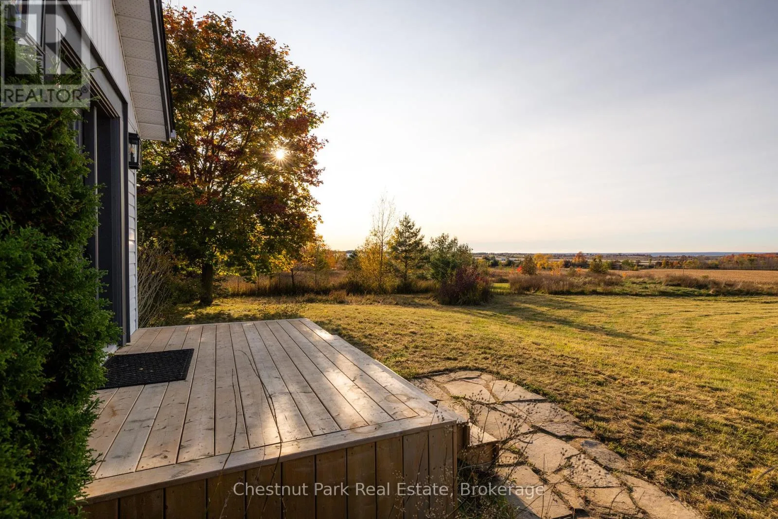 Cross Streets: From Owen Sound take Hwy 26 East towards Meaford turn Left onto Irish Block Road. Follow to the \"T\" which is SDRD 27 and turn right property is Fire #324310 on the right. ** Directions: From Owen Sound take Hwy 26 East towards Meaford. Turn Left onto Irish Block Road. Follow to the \"T\" which is SDRD 27 and turn right - property fire #324310 on the right. Incredible value is being offered on this tastefully renovated 3 bedroom, 2 bathroom, over 2,000 square foot home which resides on a stunning 4 acre parcel. An abundance of natural light pours into this beautiful home bringing the outdoors within. Enjoy these sweeping views over the country landscape from most rooms in the home, along with captivating sunsets. Cozy up beside your fireplace in your open concept living area, relax in your sunroom, sit outside on the inviting front porch, or enjoy the large backyard and deck area, just off the kitchen. The oversized garage provides excellent space for all your toys and tools and with plenty of beautiful lawns, gardens and apple trees to call your own. This beautiful countryside property is located near the Coffin Ridge Winery, downtown Meaford and Owen Sound. Book your showing to learn more about this excellent opportunity. (id:27476)