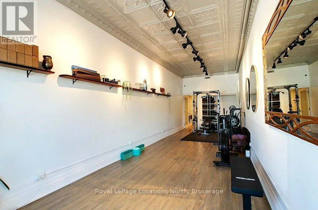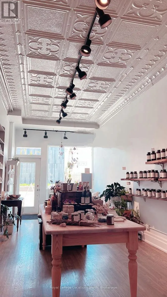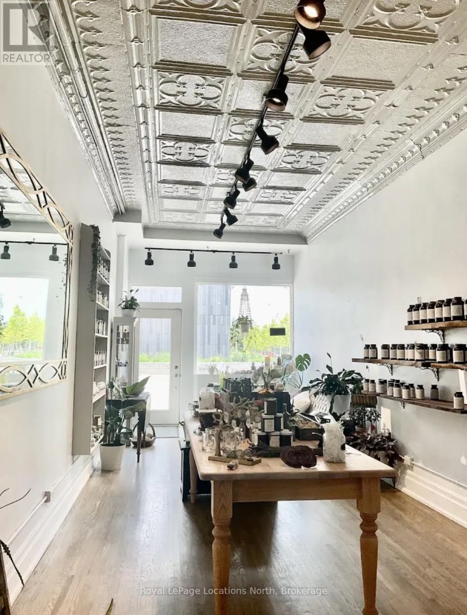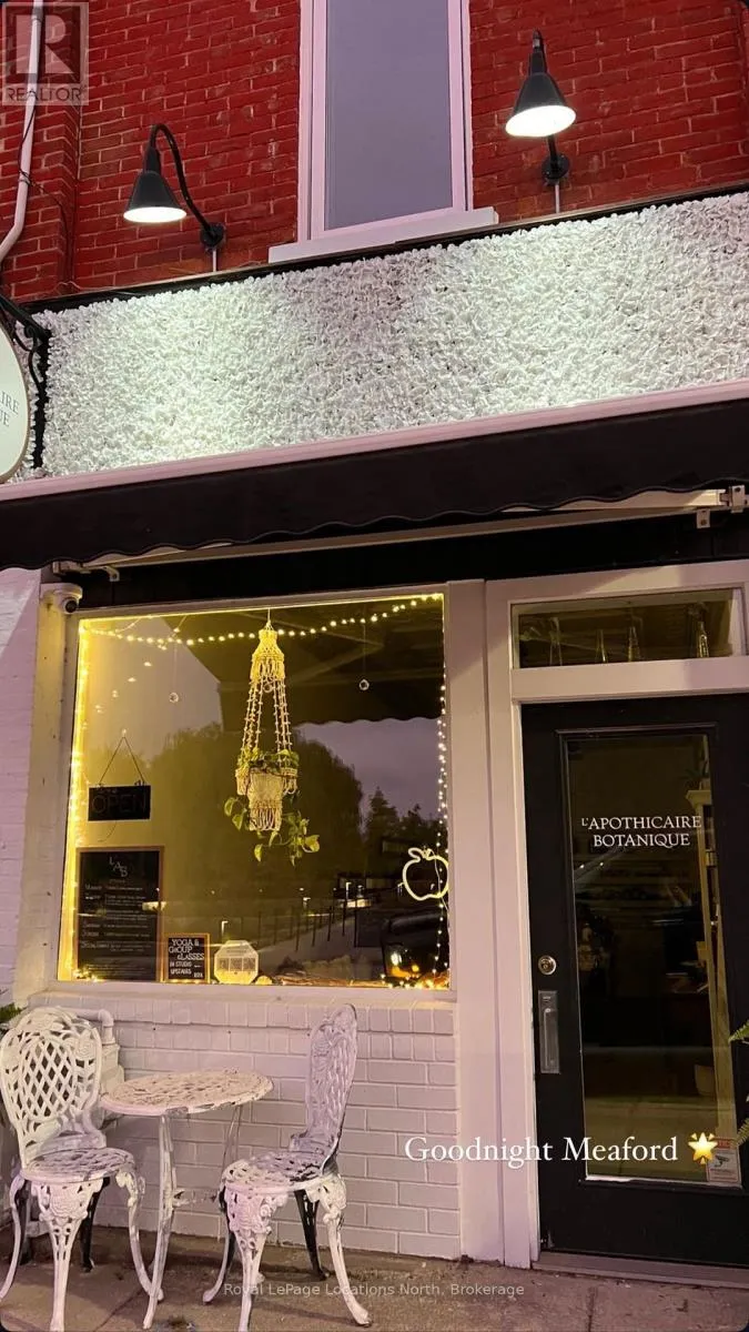 Cross Streets: Sykes St N and Berry St. ** Directions: Hwy 26 (Sykes Street N) Meaford. #8 on west side of street across from Library. Commercial ground floor unit. Remarkable opportunity in this commercial building on the main street in trendy, downtown Meaford. This updated space doesn't leave much for the new owner to modify. The main floor commercial unit is well designed for a variety of uses with neutral decor, high ceilings, gallery lighting, front and back entrances, updated electrical, storage, two-piece washroom, commercial sink and access to basement. Exposure on the main street and customer street parking is a great perk for any business. Some commercial uses include: Art Studio, Retail, Fitness Center, Business/Medical Office, Restaurant (Buyer to perform their due diligence for desired use). Monthly cost is plus utilities. Total square footage includes basement storage. Retail space alone is 726 sqft. Also listed FOR SALE - MLS #X12362812. (id:27476)