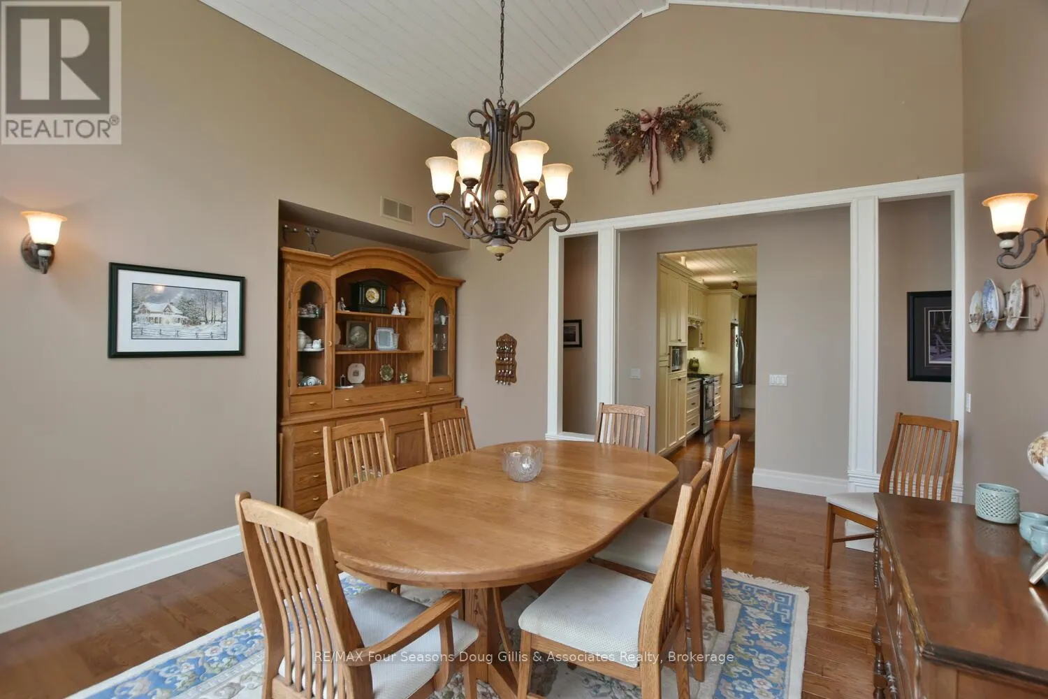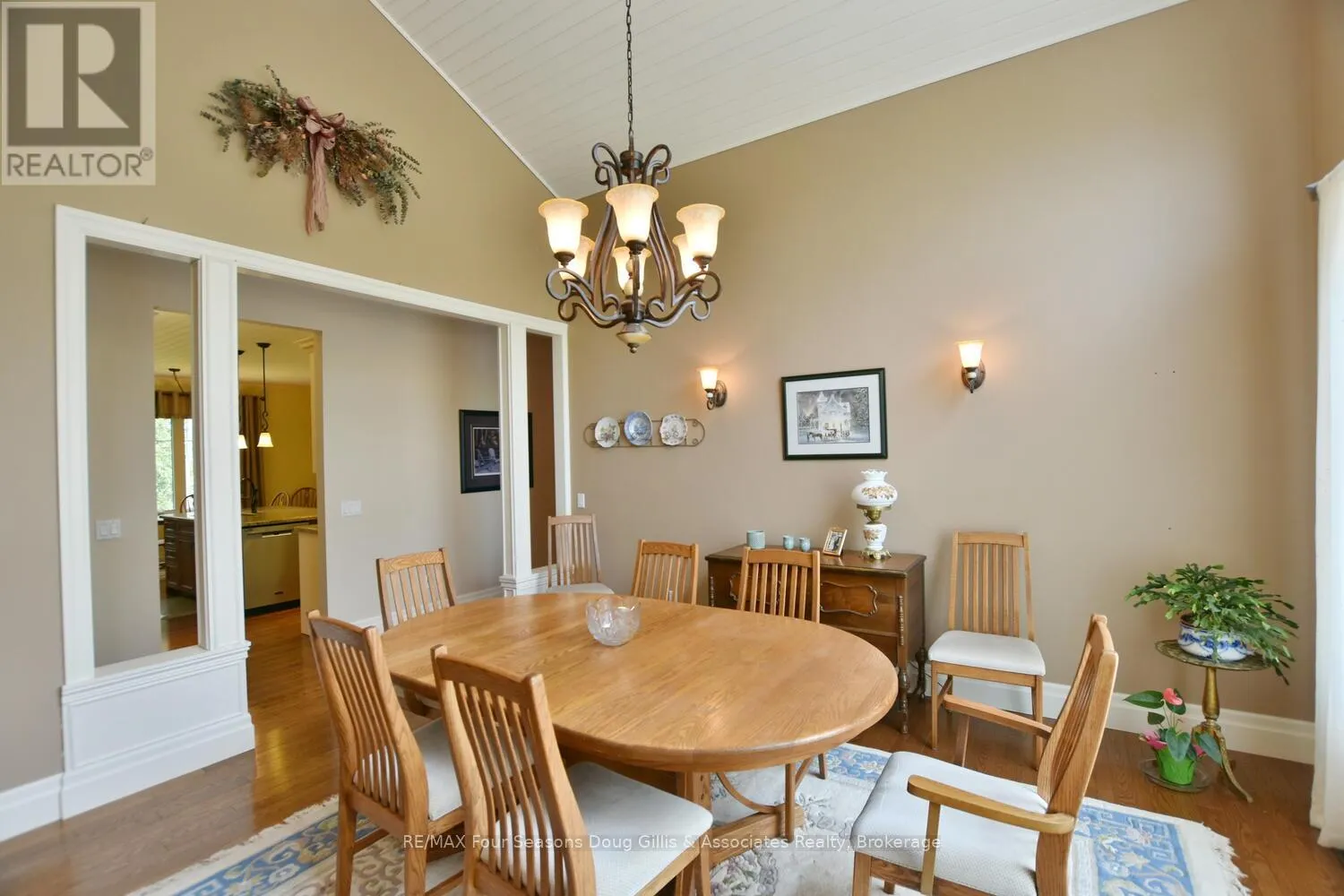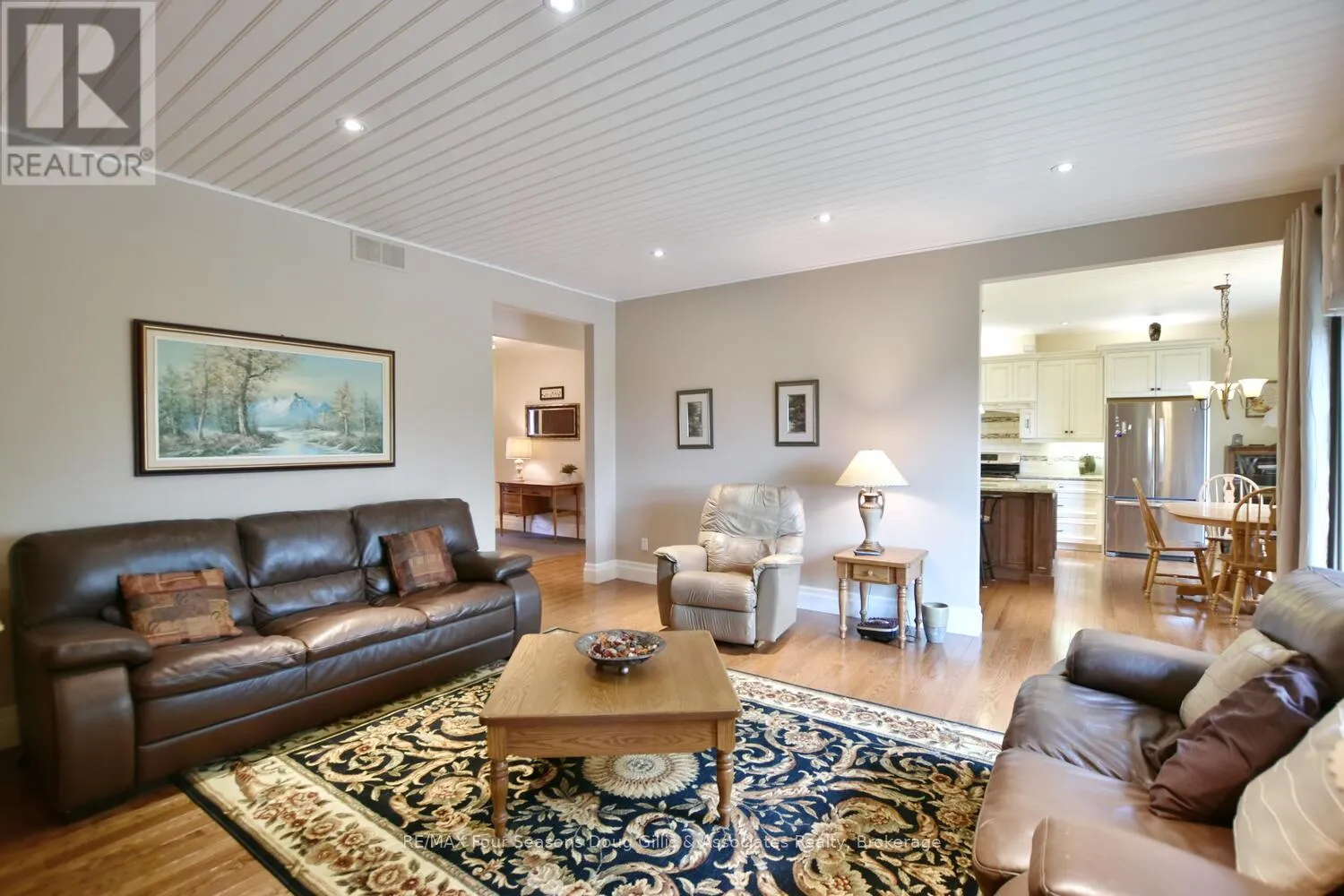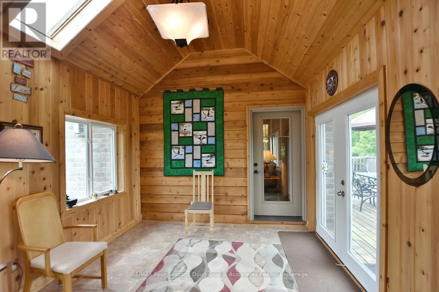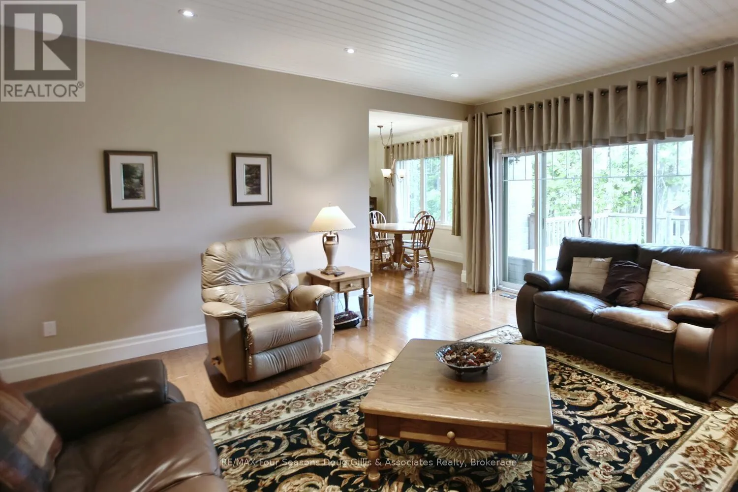 Cross Streets: Algonquin Drive and Lakeshore Rd. ** Directions: Head west on HWY 26 through Meaford, Turn right on Ford Ave, Left on Lakeshore Rd, Left on Algonquin Drive and a right on Algonquin Drive. House is on the right. This stunning 4,588 sqft custom-built home is perfectly situated on a quiet 0.89-acre(+/-) cul-de-sac in one of Meaford's most desirable neighborhoods. Designed for comfort, style, and functionality, this 5-bedroom, 3.5-bath residence combines timeless curb appeal with thoughtful interior details. The exterior features professional landscaping, split rail fencing, dual stone-pillared driveways, and a striking stone & brick façade with steep rooflines and large windows. Inside, the main floor offers 9' ceilings, wide hallways, oak hardwood and ceramic flooring, and vaulted ceilings with tongue-and-groove paneling in the open-concept living, dining, and kitchen areas. A gas fireplace with custom oak built-ins provides a cozy focal point. The chef's kitchen includes custom off-white cabinetry, granite countertops, dual stone sinks, a central island, tiled backsplash, and stainless-trim appliances, including a gas range, hood, fridge with ice-maker, and dishwasher. A cedar-lined 3-season sunroom adds charm and versatility, while the living room opens to a deck with panoramic Georgian Bay views. The lower level features a spacious rec room with walk-out access, providing flexible space for entertaining, recreation, or family living. Both garages are oversized, insulated, and drywalled - one with heated floors, the other with a unit heater - offering room for up to 4 vehicles, a workshop, or additional storage. The yard is fully equipped for outdoor living, including a vegetable garden and garden shelter. Additional features include main-floor laundry with front-load washer/dryer, natural gas furnace, central air, HRV system, dual hot water heaters, central vacuum, municipal water, and an Eco-Flow septic system serviced annually. Built by the owner to an exceptionally high standard with quality materials and craftsmanship, this home is ideal for families, investors, or anyone seeking upscale, peaceful living just minutes from Meaford's waterfront, golf, and amenities. (id:27476)