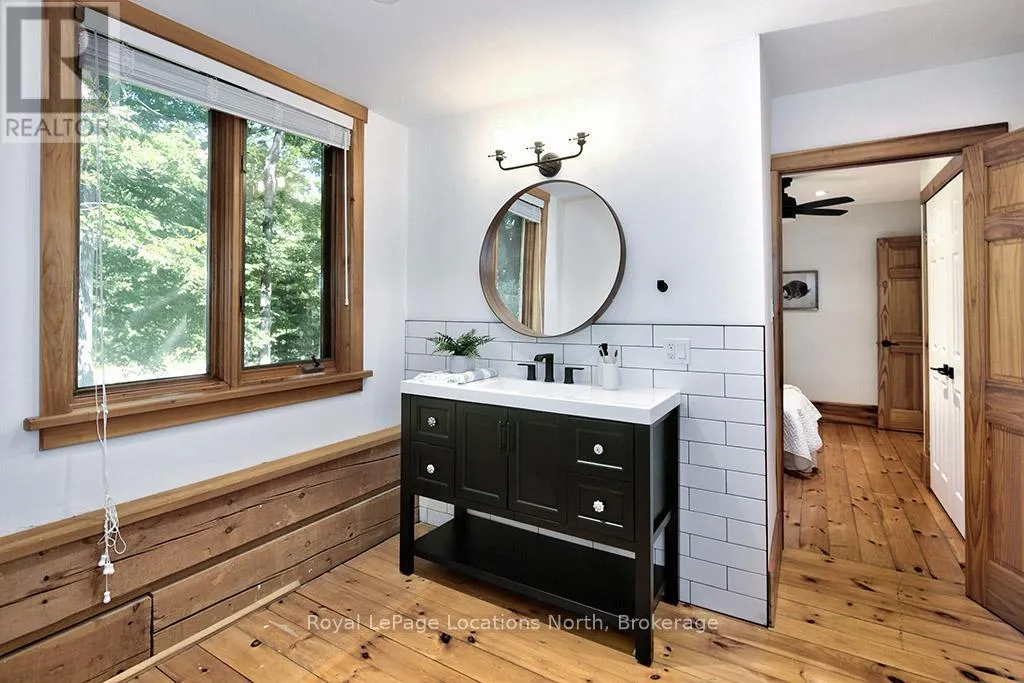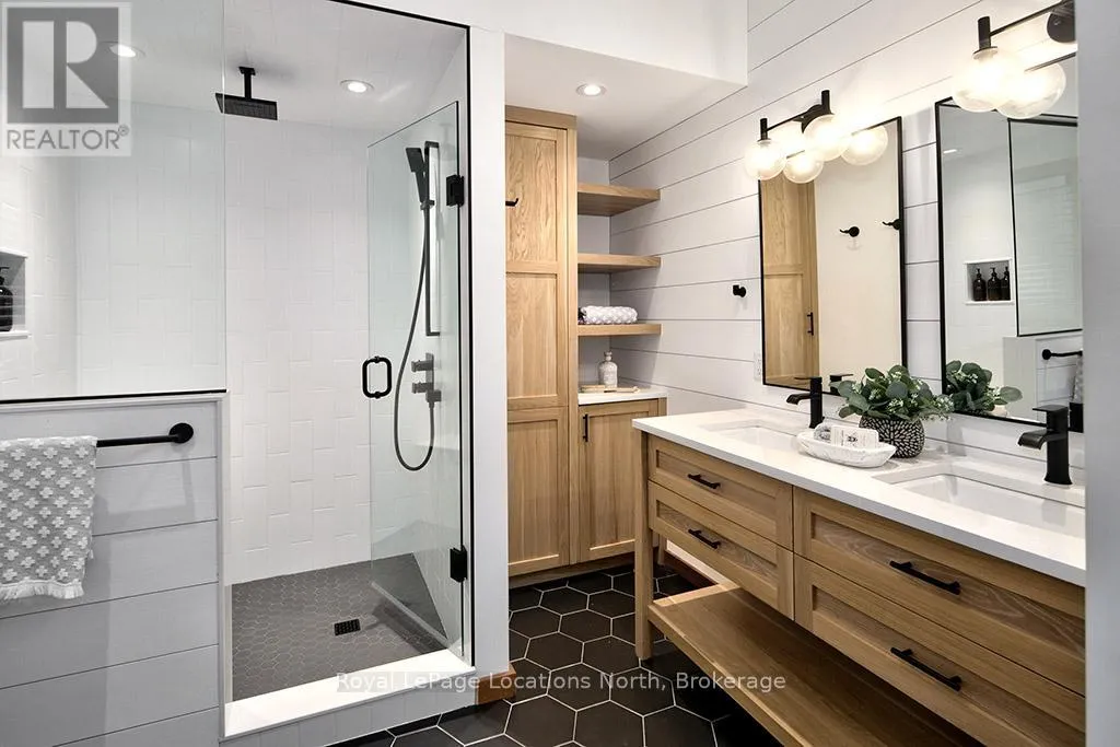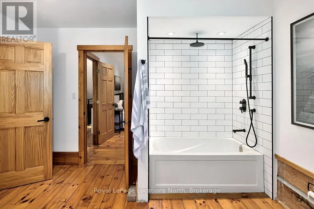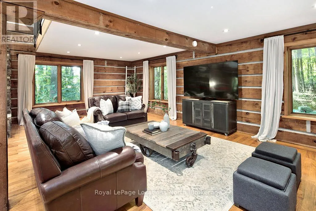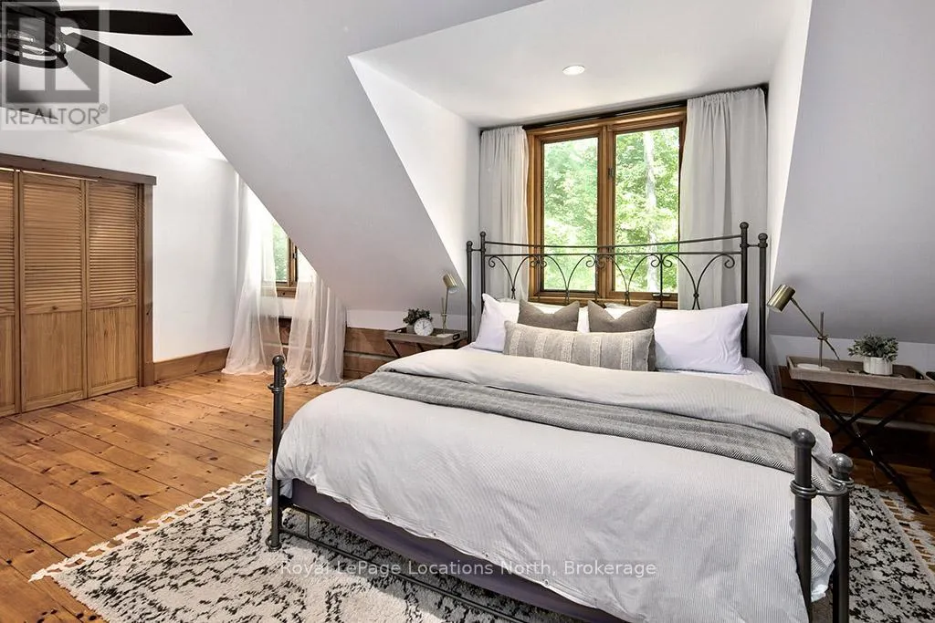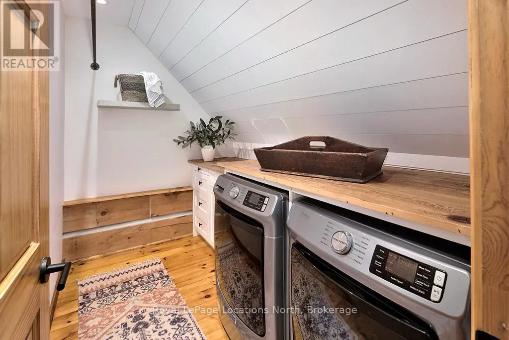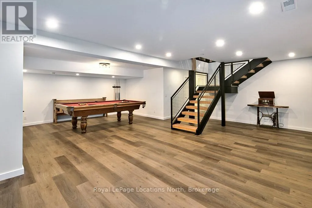 Cross Streets: 22nd Sdrd & 11th Line. ** Directions: Hwy 26 to 7th Line North to 22nd Sdrd West To Sign. Where Rustic Beauty Meets Modern Luxury! Nestled on a quiet road and surrounded by mature trees, this fully renovated custom log home is a rare blend of rustic charm and modern luxury. Set on 1.4 acres, surrounded by forest with a southwest-facing backyard - perfect for veggie gardens and soaking in afternoon sun as it dances across the property. Steps from the Tom Thomson Trail - ideal for a peaceful evening unwind and just a 5-minute drive to the pristine waterfront at St. Vincent Park on Georgian Bay. Enjoy a true country setting, only 10 minutes to downtown Meaford and a short drive to Owen Sound for city conveniences. Every detail in this home has been thoughtfully considered. At the heart is a stunning designer kitchen in a warm earthy green, featuring top-tier appliances, smart tech, and custom cabinetry that flows seamlessly into the expansive dining room. Clever additions like integrated outlets, a charging cupboard tucked into the hidden pantry, and a second oven in the oversized island make this space both functional and beautiful. The dining room opens onto the back deck, perfect for entertaining. The living room impresses with cathedral ceilings, a dramatic statement light, and a floor-to-ceiling wood-burning stone fireplace - ideal for cozy après-ski evenings. Upstairs, the spacious primary bedroom offers a spa-like 3-piece ensuite with heated floors and custom cabinetry. Two additional bedrooms share a stylish 4-piece bath, with original hardwood floors flowing throughout the upper level. A striking metal staircase leads to the lower level - perfect for entertaining with a custom wet bar, pool table, surround sound wiring, and a sleek bathroom with heated tile floors. A fourth bedroom or home office adds flexibility. The oversized 2-car garage features heated floors, custom cabinetry, extra-tall ceilings, and a bonus second floor for a studio, gym, or storage. This is more than a home - its a lifestyle, where nature & luxury exist in perfect harmony. (id:27476)