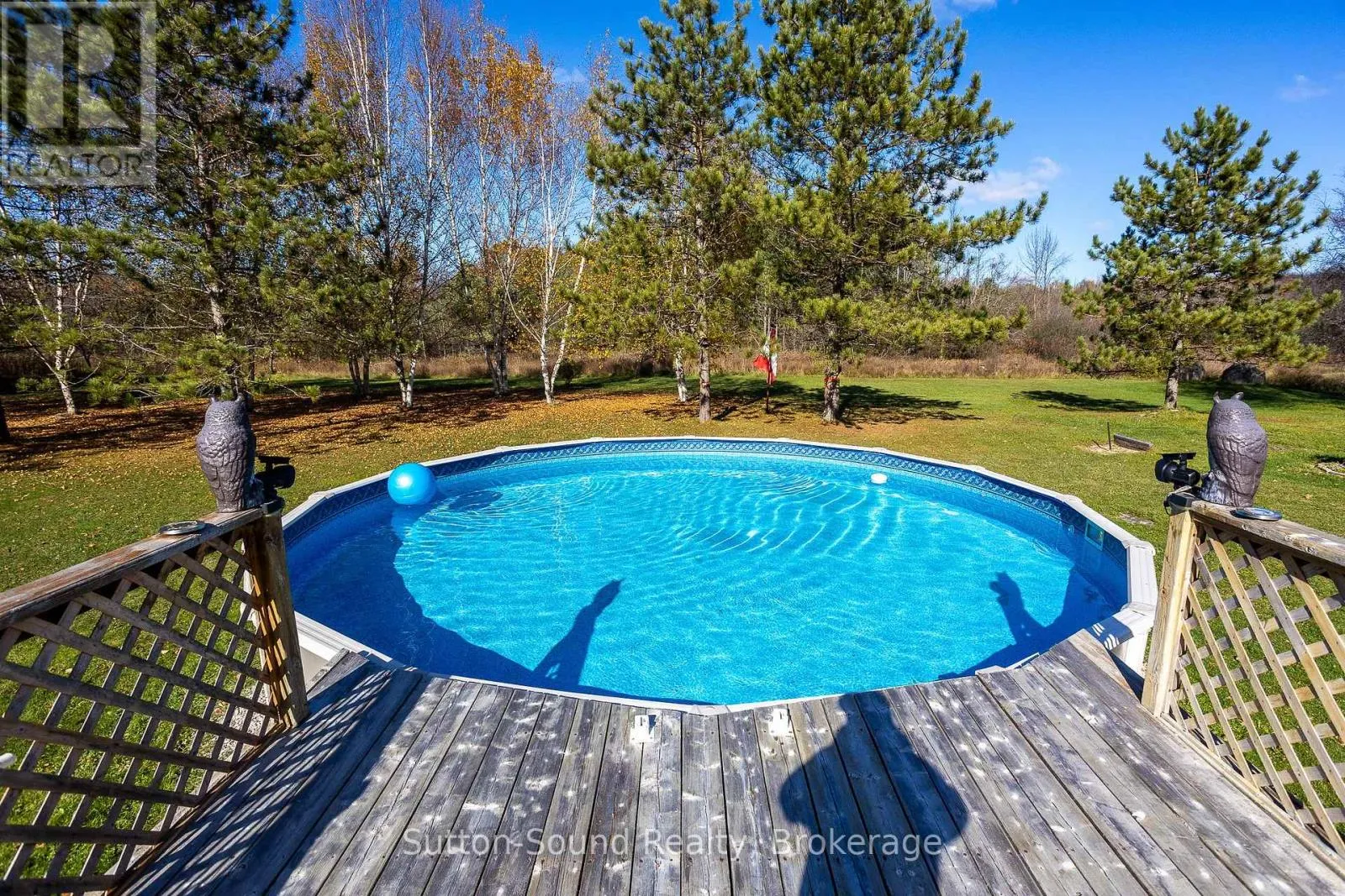 Cross Streets: Concession 11. ** Directions: East on HWY 26 from OS turn right (south) on concession 11 (top of 1st hill out of OS) then left (east) just past the Sydenham Quarry on SDR 15, dead end road, follow to #143659. Beautiful bungalow in the country on a dead end road. Catch yourself enjoying the outdoors at this lovely 2+ acre lot on the outskirts of town. Entertaining sized porch leading to the above ground pool for making summer memories. Lots of space to snow shoe in the winter or settle in and watch the snow fall from inside you warm cozy home. One floor living with 3 bedrooms 2 bathrooms and two living rooms gives you lots of space for your family or to have family come and stay. A approximately 35x18 shed currently used for storage has a median that runs down the garage, cannot park cars but could be a great work shop. Conveniently located just off highway 26. A short 5 minute drive to Owen Sound, Close to all the East Side amenities and many Bruce trail access points and only a 12 minute drive to Meaford. If using google or GPS please use address as 143659 SIDE ROAD 15 OWEN SOUND- to get the home. (id:27476)