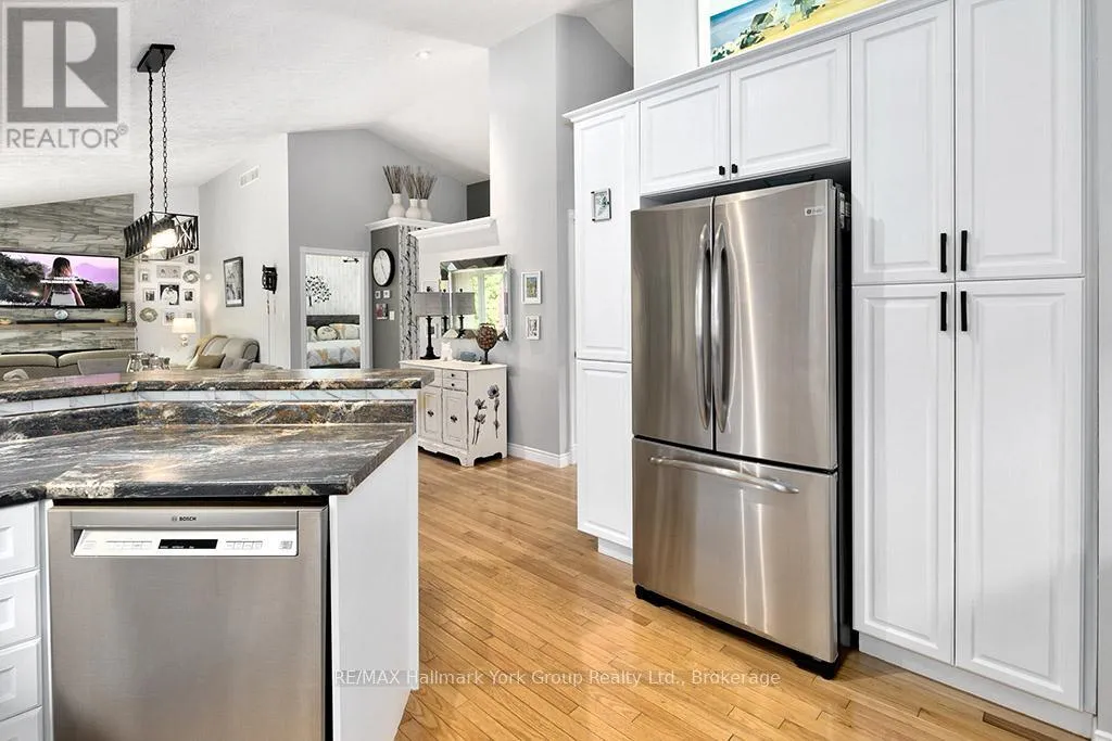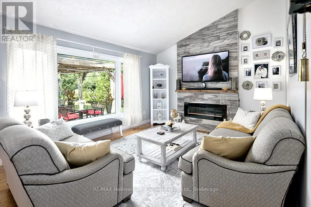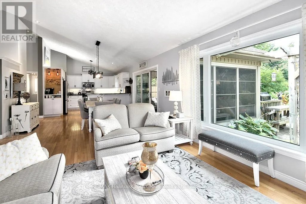 Cross Streets: Highway 26 to Ridge Road. ** Directions: Highway 26 to Ridge Rd. Meaford Bungalow Beauty - Custom Home Charm & Year-Round Comfort Welcome to this stunning custom-built bungalow in the heart of Meaford, where elegance and comfort combine to create the perfect family retreat or year-round escape. Step through the large, welcoming foyer into a bright, open-concept living space that seamlessly blends the living, dining, and kitchen areas, all featuring gleaming hardwood floors. The heart of the home is the spacious living room warmed by a cozy fireplace and views of the beautifully landscaped backyard. The kitchen is a chef's dream with beautiful cabinetry, ample counter space, and picturesque views of your backyard oasis. Just off the living area, the sunroom offers a tranquil space filled with natural light perfect for relaxing or entertaining. The main floor features a luxurious primary bedroom retreat with vaulted ceilings, a private ensuite, and dual closets. A generous second bedroom and a full bathroom complete the main level. Downstairs, the fully finished basement is ideal for hosting family and friends. It boasts a large recreation area with a second fireplace, a bar/kitchenette, and two spacious bedrooms thoughtfully designed for comfort and privacy. Step outside to enjoy the beautifully fenced and landscaped backyard, complete with a shed bar, garden sanctuary, gas BBQ hookup, and wiring for a hot tub. The oversized insulated and heated two-car garage offers inside access, rear yard access, hot and cold water, and a driveway large enough for six vehicles. Located just minutes from Meaford's historic downtown, Meaford Hall, Georgian Bay, the waterfront, marina, local apple orchards, wineries, and scenic trails, this home also offers easy access to Thornbury, Blue Mountain Village, and nearby ski hills. A truly exceptional property where luxury meets lifestyle in the charming community of Meaford. (id:27476)