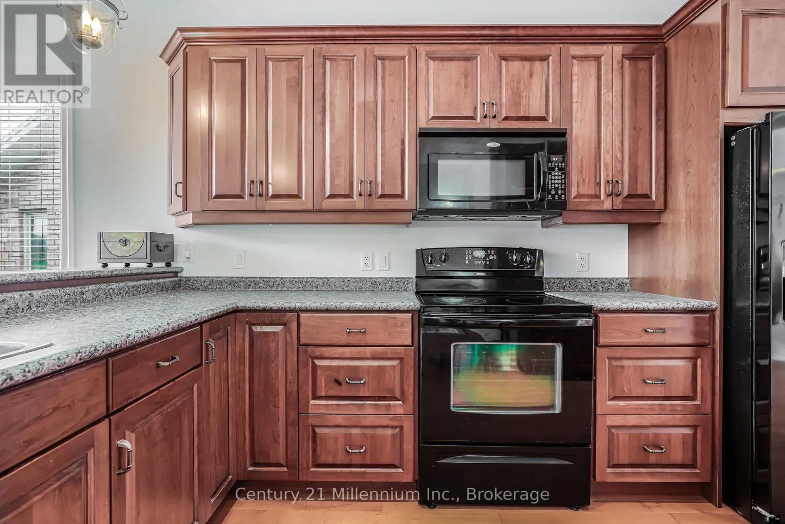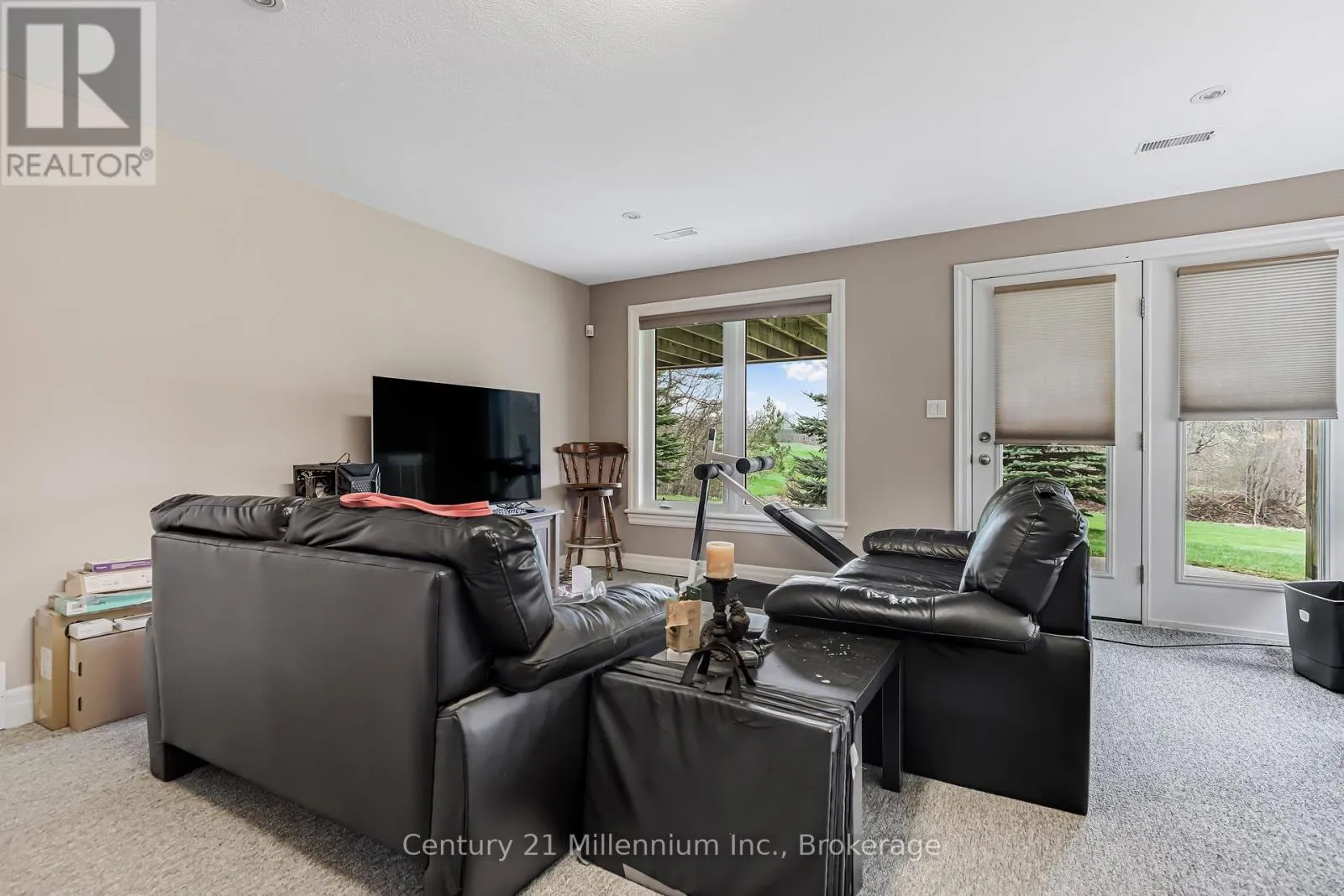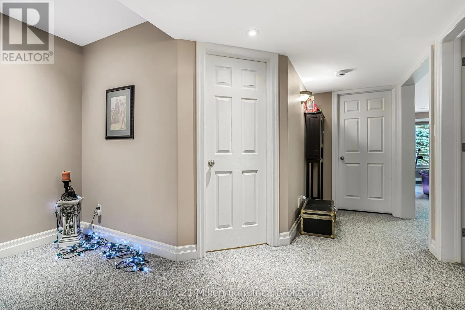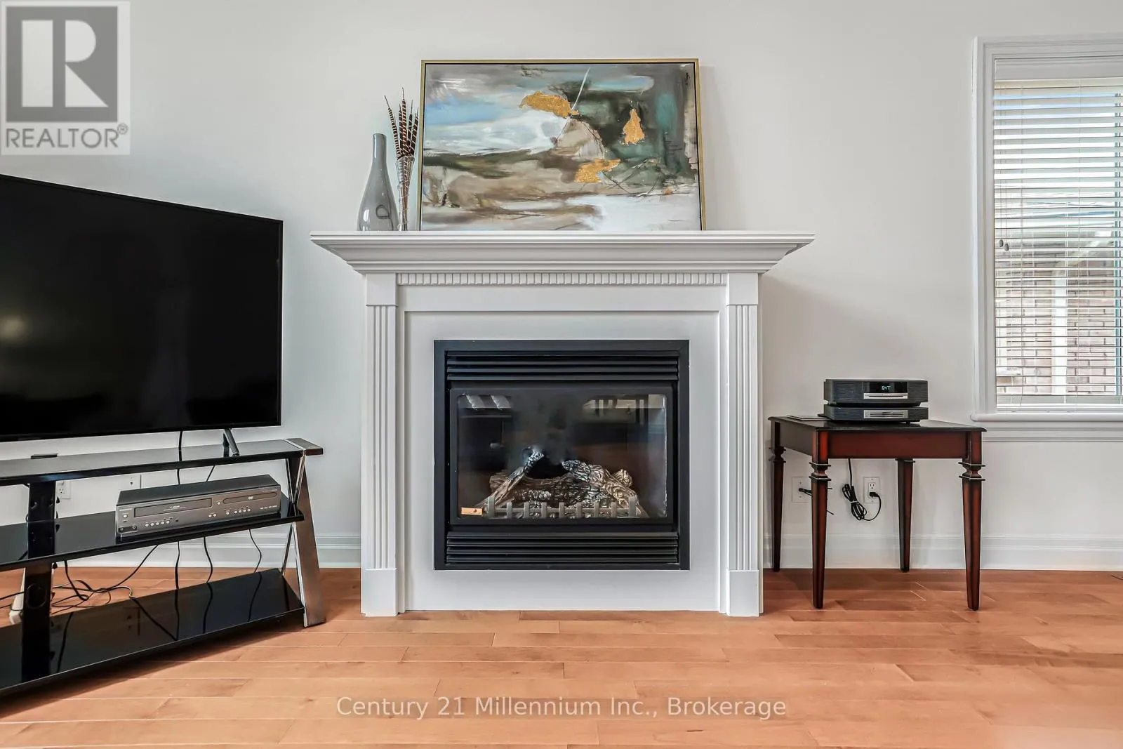 Cross Streets: Pearson St, Ridge Rd. ** Directions: Take Hwy 26 to Ridge rd, follow to Glen Abbey Ct. Backing directly onto the 11th hole of the Meaford Golf & Country Club, this all-stone bungalow offers sweeping views of the fairway and tranquil pond and unlike alot of other homes for sale on the course, this one is freehold with no monthly condo fees. Built in 2006 by respected builder Tom Clancy, its one of the best values in the area for golf course living. Nestled on a quiet cul-de-sac among other prestigious homes, you're just minutes to the marina and a short drive to Blue Mountain. The full stone exterior, symmetrical gabled rooflines, twin bay windows, and impressive front entry create timeless curb appeal. A concrete driveway leads to the oversized double garage, with plenty of parking for guests. Inside, natural light floods the space, highlighting the upscale finishes and craftsmanship. Hardwood floors run throughout the main level, while soaring ceilings create an airy, grand feel. The formal dining room features a tiered tray ceiling with pot lights, and the kitchen boasts rich wood cabinetry, a breakfast bar, and an open flow into the spacious living room with a gas fireplace and a wall of windows framing the golf course view. Step onto the elevated deck with glass railings and soak in the peaceful vista of the pond and manicured greens. The primary suite is generously sized with spectacular backyard views, a walk-in closet, and a spa-like ensuite with tiled glass shower, double vanity, and jacuzzi tub. A second bedroom or office, main floor laundry, add convenience. The finished lower level includes a rec room with walkout to the backyard, a third bedroom, 3-pc bath, and plenty of room to expand. If you've been dreaming of golf course living without the condo fees, this rare freehold property combines beauty, value, and an unbeatable lifestyle. (id:27476)