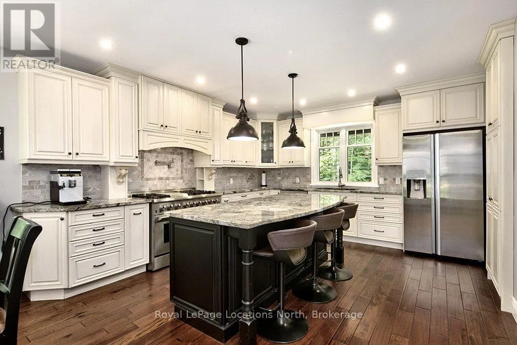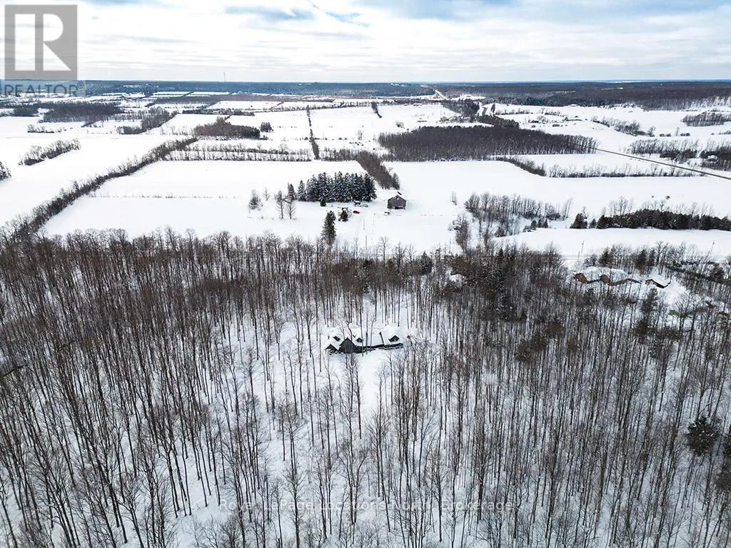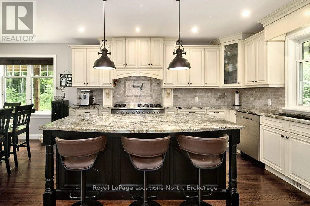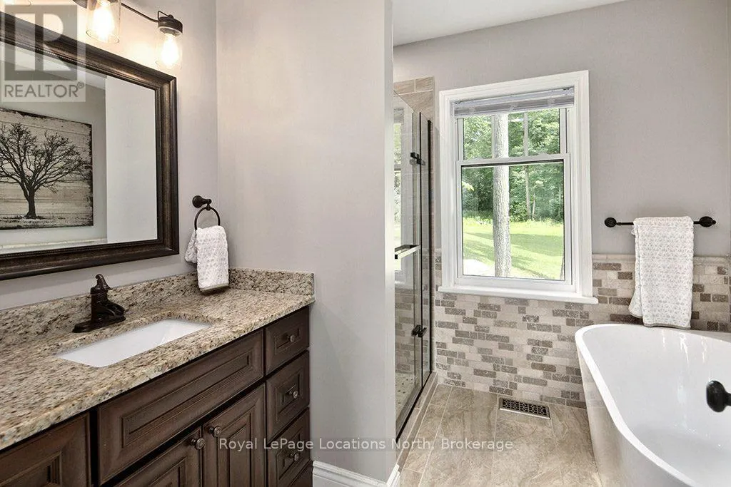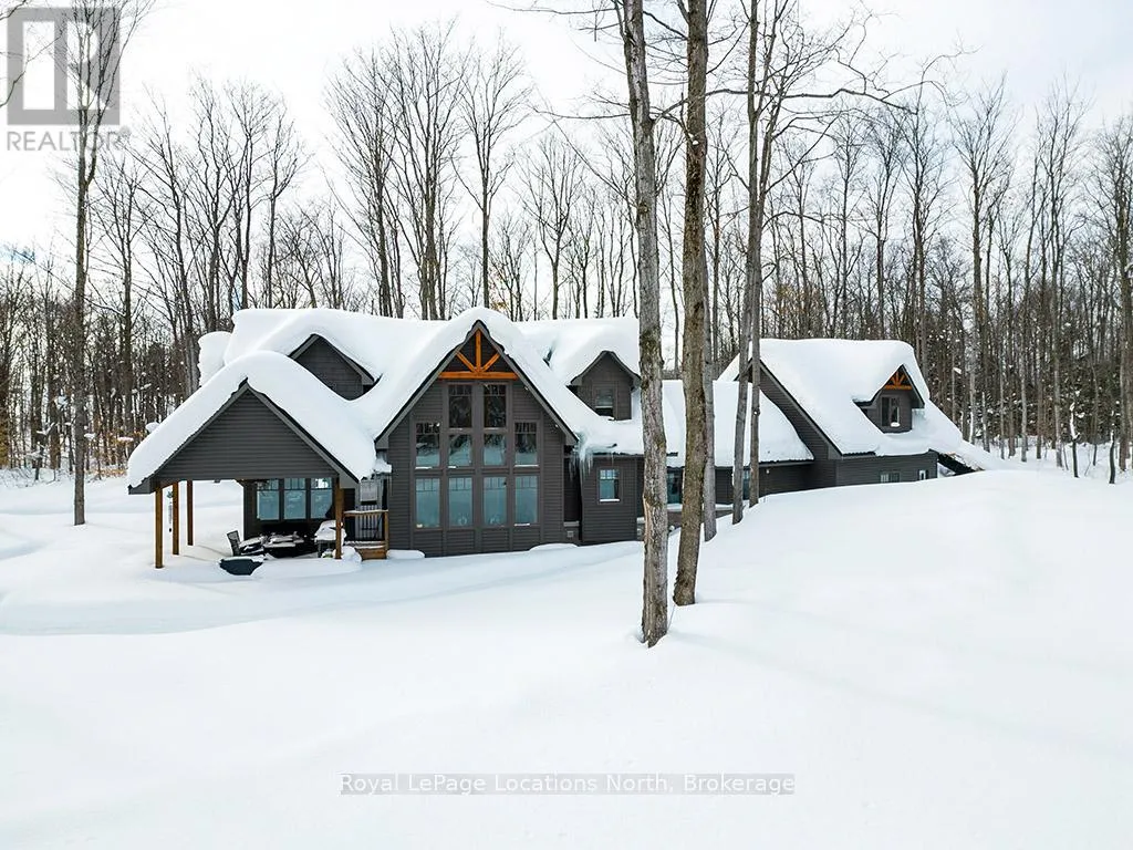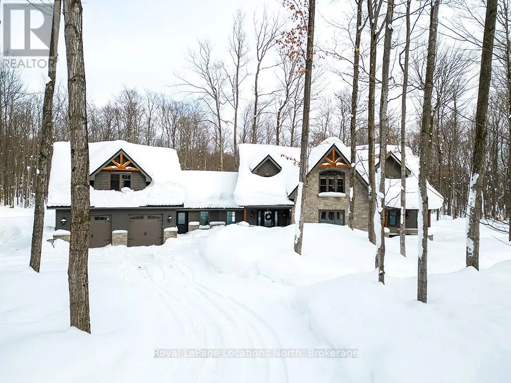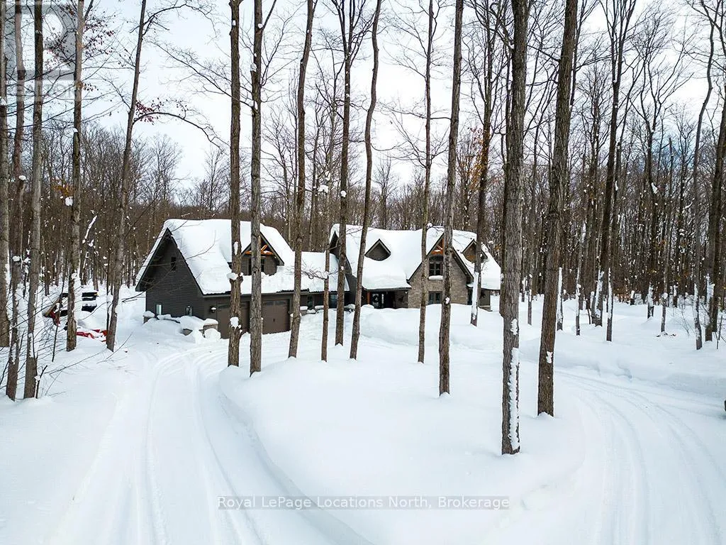 Follow Highway 26 west, turn left onto 12th Line. Private sanctuary on 25 acres of serene Meaford countryside, where mature trees and tranquility await. This custom-built retreat offers a blend of luxury and comfort, designed to embrace the beauty of its natural surroundings. A short drive to Downtown Meaford and Georgian Bay. Step inside to discover the heart of the home a great room with vaulted wood-covered ceilings, floor-to-ceiling windows framing views of majestic trees, and a striking stone surround fireplace. The open concept gourmet kitchen features granite counters, a 4ft range, built-in microwave, bar fridge in the island, and a convenient pot filler. Adjacent is the dining space with a walkout to the back deck, perfect for alfresco dining. The main floor also hosts a guest bed, den space, convenient laundry room and mudroom with access to the oversized garage. Throughout the main floor,3/4 inch special walnut plank flooring adds warmth and elegance. All bathrooms are beautifully appointed with granite counters and heated flooring beneath polished ceramic tiles. Upstairs, the upper level offers additional living space with a primary suite, guest bed, 3pc bath, and a versatile bonus room. The spacious primary suite features a covered balcony overlooking the lush grounds, WIC, and a luxurious 3pc ensuite complete with heated floors, heated towel rack and a freestanding tub. Additional features include a durable steel roof, a 10kw backup generator, and 1000sqft drive shed with 200 amp service offers plenty of storage for seasonal toys or use as a workshop! Above the garage, a loft area offers storage or potential studio. The lower level has potential for a huge rec space. Outside, the expansive and private exterior invites exploration and quiet contemplation, making this property an ideal weekend getaway or full-time residence. Just 8 mins from dtown Meaford's restaurants, shops, and Georgian Bay. Thornbury is a short 18-minute drive away. (id:27476)