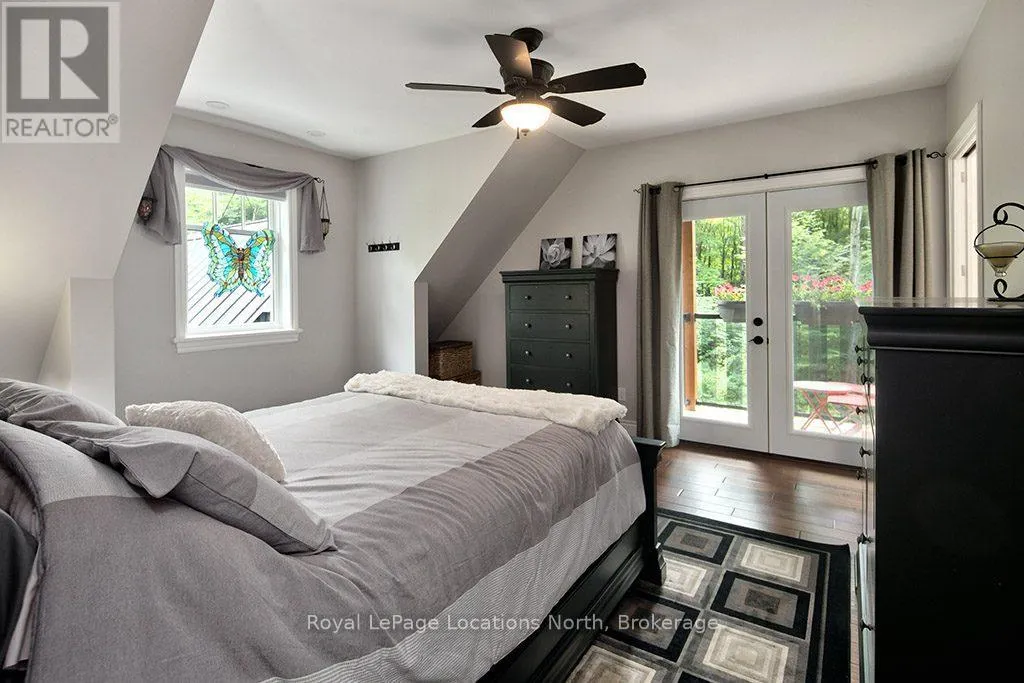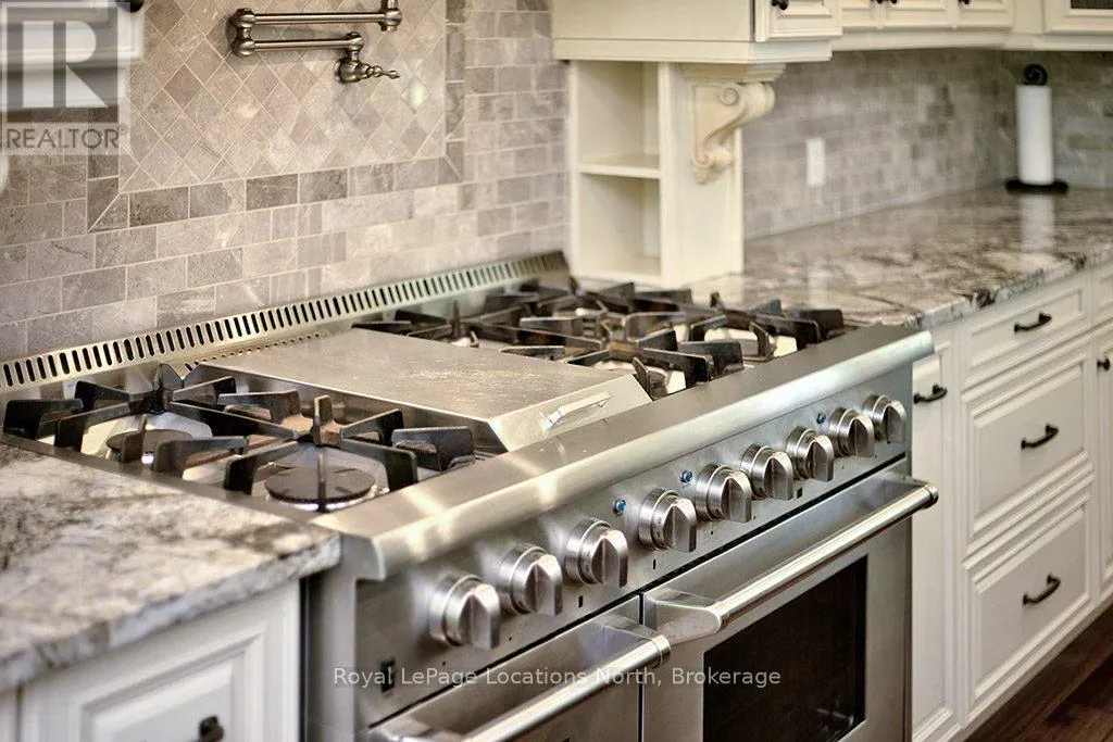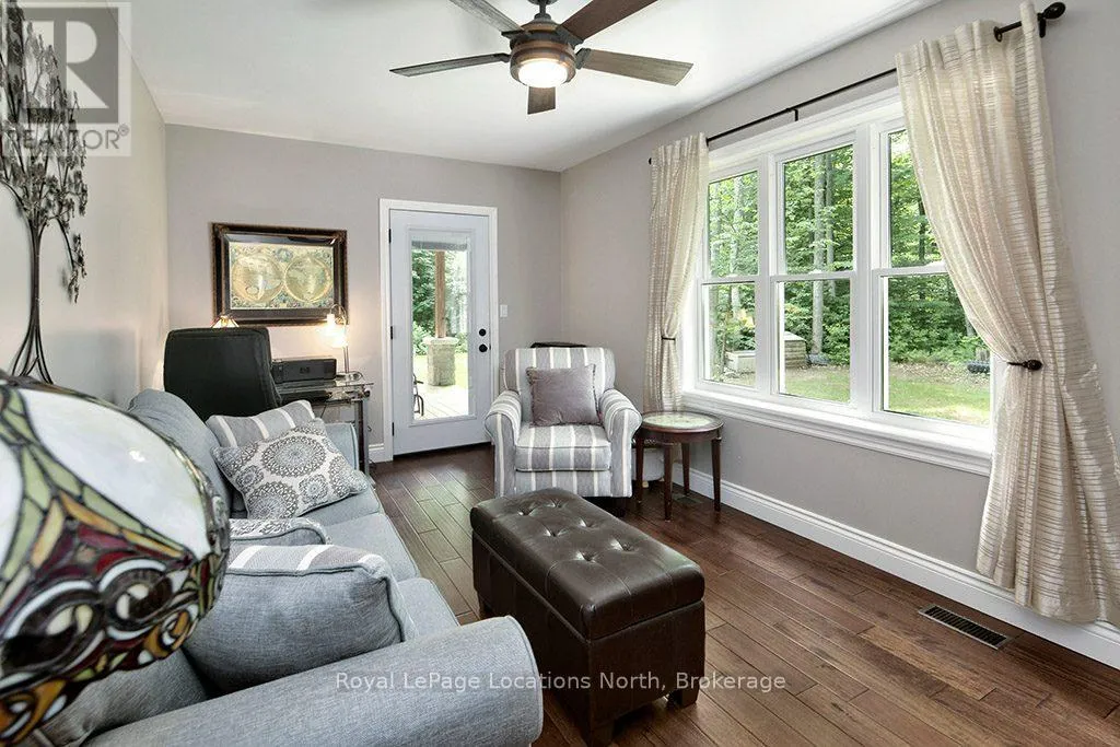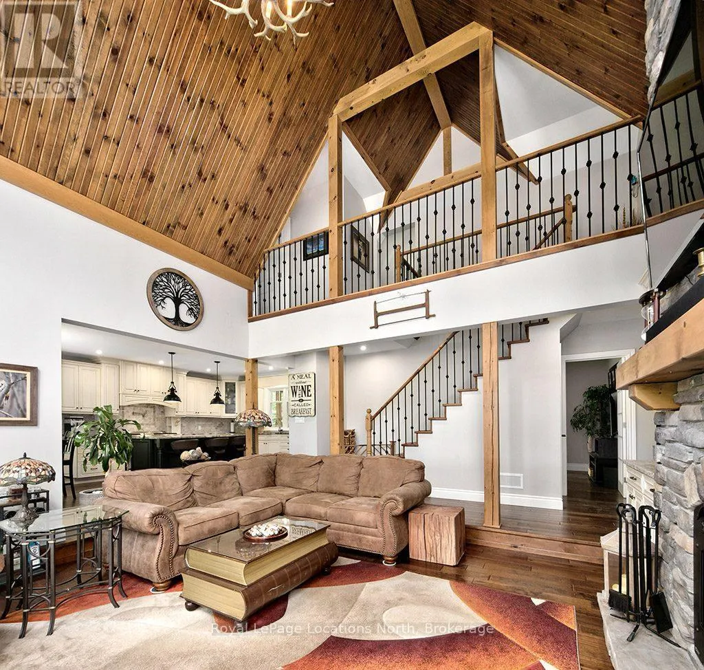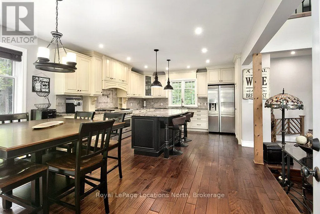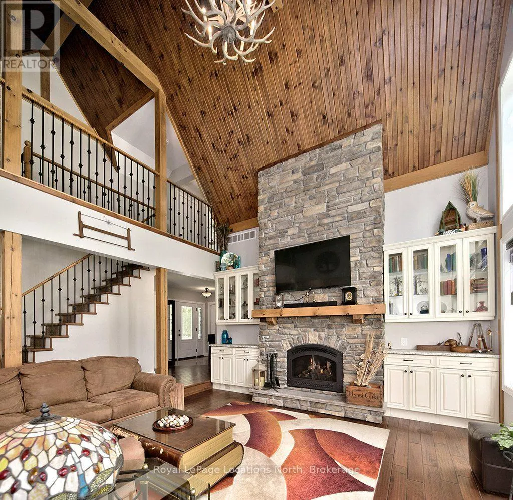 Follow Highway 26 west, turn left onto 12th Line. Private sanctuary on 25 acres of serene Meaford countryside, where mature trees and tranquility await. This custom-built retreat offers a blend of luxury and comfort, designed to embrace the beauty of its natural surroundings. A short drive to Downtown Meaford and Georgian Bay. Step inside to discover the heart of the home a great room with vaulted wood-covered ceilings, floor-to-ceiling windows framing views of majestic trees, and a striking stone surround fireplace. The open concept gourmet kitchen features granite counters, a 4ft range, built-in microwave, bar fridge in the island, and a convenient pot filler. Adjacent is the dining space with a walkout to the back deck, perfect for alfresco dining. The main floor also hosts a guest bed, den space, convenient laundry room and mudroom with access to the oversized garage. Throughout the main floor,3/4 inch special walnut plank flooring adds warmth and elegance. All bathrooms are beautifully appointed with granite counters and heated flooring beneath polished ceramic tiles. Upstairs, the upper level offers additional living space with a primary suite, guest bed, 3pc bath, and a versatile bonus room. The spacious primary suite features a covered balcony overlooking the lush grounds, WIC, and a luxurious 3pc ensuite complete with heated floors, heated towel rack and a freestanding tub. Additional features include a durable steel roof, a 10kw backup generator, and 1000sqft drive shed with 200 amp service offers plenty of storage for seasonal toys or use as a workshop! Above the garage, a loft area offers storage or potential studio. The lower level has potential for a huge rec space. Outside, the expansive and private exterior invites exploration and quiet contemplation, making this property an ideal weekend getaway or full-time residence. Just 8 mins from dtown Meaford's restaurants, shops, and Georgian Bay. Thornbury is a short 18-minute drive away. (id:27476)