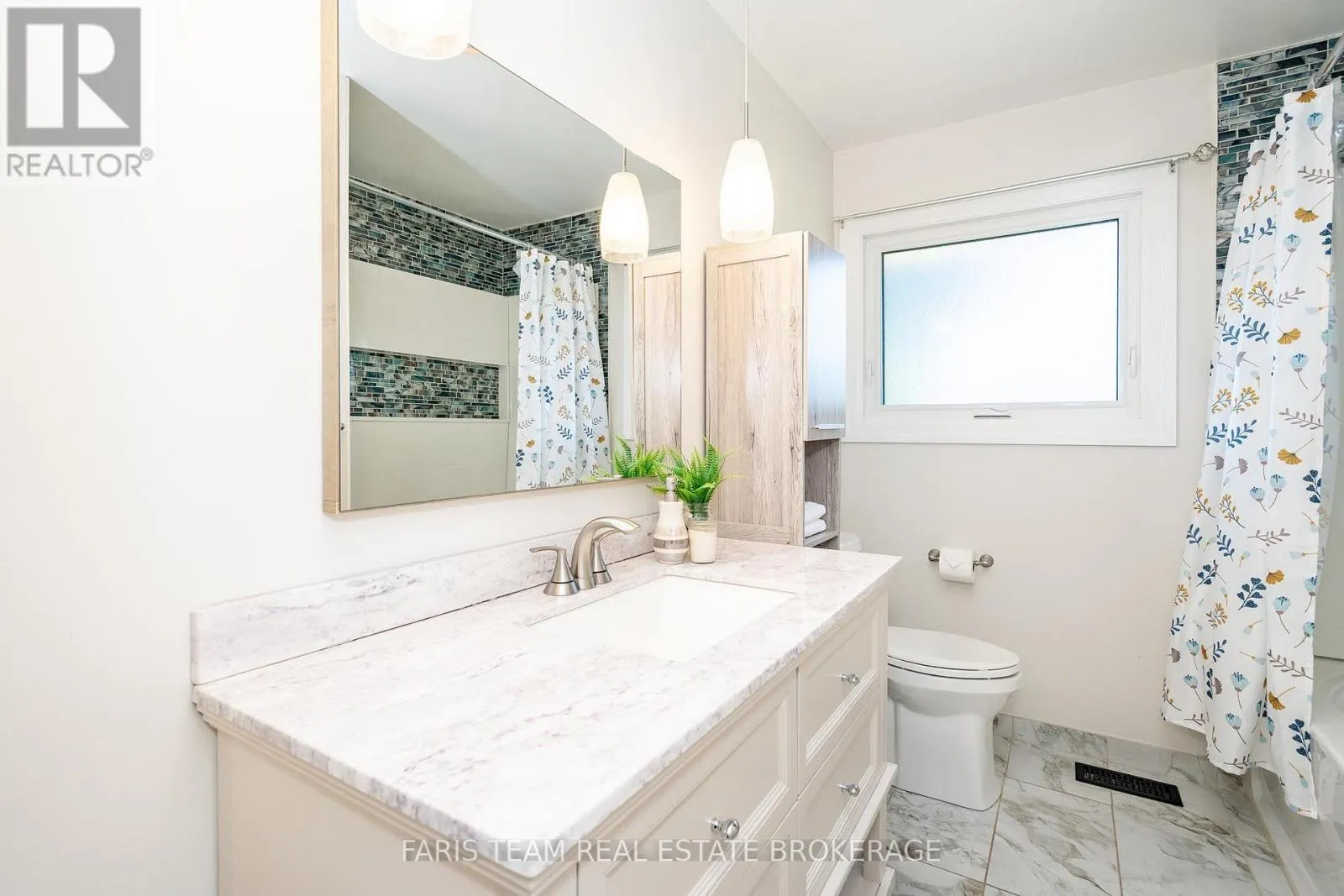 St Vincent St/McKibbon Dr Top 5 Reasons You Will Love This Home: 1) Beautifully renovated bungalow tucked away on a quiet cul-de-sac in a family-friendly neighbourhood, steps from Georgian Bay Community School and just minutes to local beaches, featuring a new garage and refreshed landscaping for excellent curb appeal 2) The main level has been completely transformed with a modern kitchen and appliances, an updated bathroom, fresh flooring, new trim and mouldings, and a fresh coat of paint throughout, creating a move-in-ready space ideal for both full-time living or a weekend retreat 3) Major updates provide peace of mind, including new windows, roof, furnace, air conditioner, and an owned on-demand hot water tank, making this an easy, low-maintenance option for buyers relocating from the city or seeking a second home 4) The fully redesigned basement offers new flooring, upgraded lighting, hardwired internet and cable conduits, along with a brand-new laundry room and gym space, perfect for hosting guests or extended family 5) The backyard is a private outdoor retreat with extensive landscaping, a new concrete pad, fencing, deck, and multiple fruit trees, while the surrounding area offers access to hiking trails, national and provincial parks, ski hills, golf courses, and nearby marinas, making this property equally attractive as a primary residence or a lifestyle-driven second home. 1,147 sq.ft. plus a finished basement. 2,197 sq.ft. of finished living space. (id:27476)