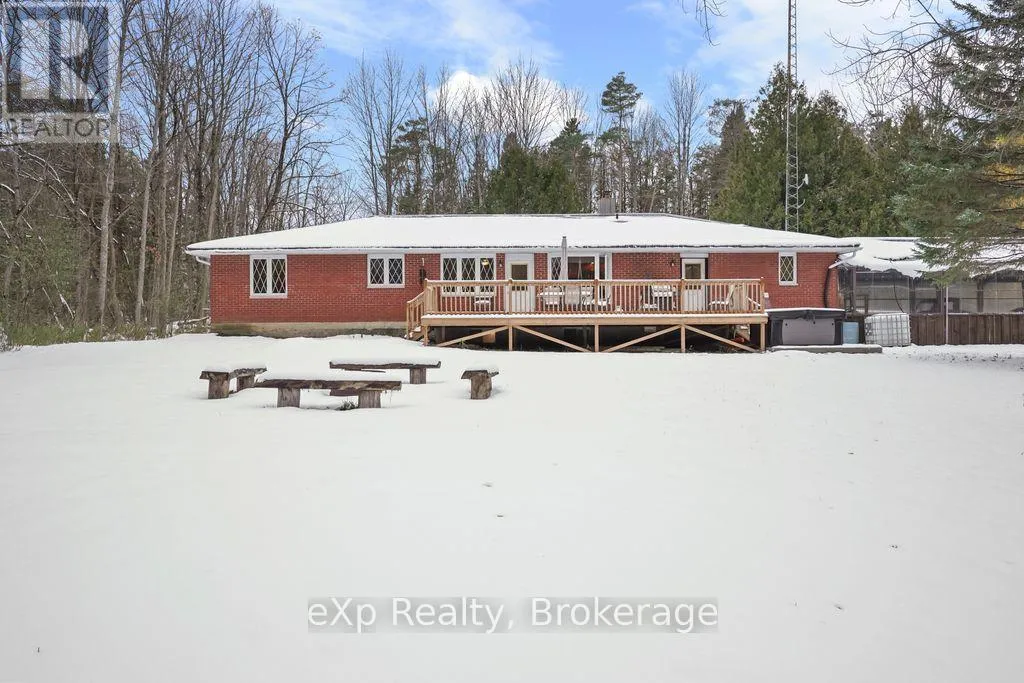 Cross Streets: Side Rd 6. ** Directions: 4th Concession South - Property on East side. Welcome to this beautiful 9.6-acre property located in a peaceful natural setting, just minutes from the inlets leading to Georgian Bay. A true haven for outdoor enthusiasts, the extensive on-site trail system is perfect for four-wheeling, hiking, snowmobiling, skiing, or snowshoeing-offering year-round enjoyment right from your own backyard.The charming bungalow offers over 1600 square feet of comfortable main-floor living, beginning with a welcoming front foyer that opens into a bright living room and an adjoining dining area. The kitchen provides plenty of functional space and easy flow for everyday living. The primary bedroom includes its own 4-piece ensuite, and an additional bedroom offers flexibility for family or guests. A spacious extra room can serve as a family room, home office, or an additional bedroom depending on your needs. Step outside to a large back deck overlooking the expansive yard, complete with a hot tub for relaxing after days spent exploring the trails. The property also features a one-car garage and a generous attached carport, providing ample covered parking and storage.This property combines privacy, recreation, and comfortable living-all in a sought-after location close to Georgian Bay. Don't miss your chance to enjoy nature at your doorstep - book your private showing today! (id:27476)