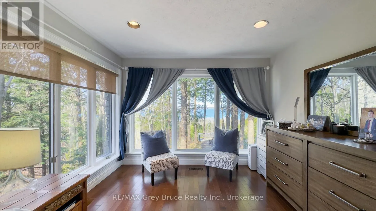 Cross Streets: Bayshore Road and Thornridge. ** Directions: Travelling along Bayshore road, turn on to Thornridge Road, property on the west side of the road, see signs. Privately nestled among mature trees and commanding a scenic hilltop setting, this exquisite 2+2 bedroom, 4-bath residence captures uninterrupted 180-degree panoramic views of Georgian Bay. Located in a popular lakeside neighbourhood, the home is designed to impress with its bright, open-concept living spaces that seamlessly blend elegance and comfort. Expansive, sun-drenched bedrooms and a generously proportioned family room provide exceptional space for hosting and relaxation. Indulge in resort-style amenities including a private sauna, an outdoor hot tub perfect for evenings under the stars, and an entertainment area complete with a pool table. Offering a rare combination of refined luxury, natural beauty, and complete privacy, this extraordinary property delivers an elevated lifestyle in a truly breathtaking setting. (id:27476)