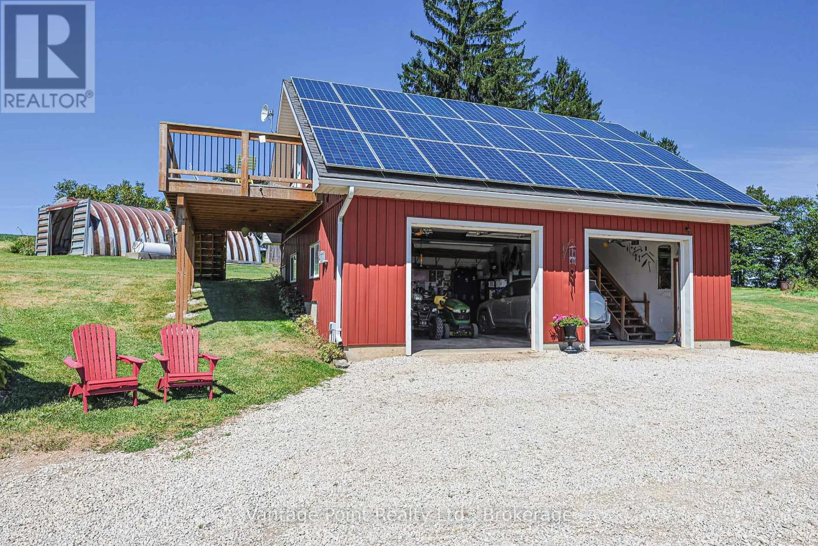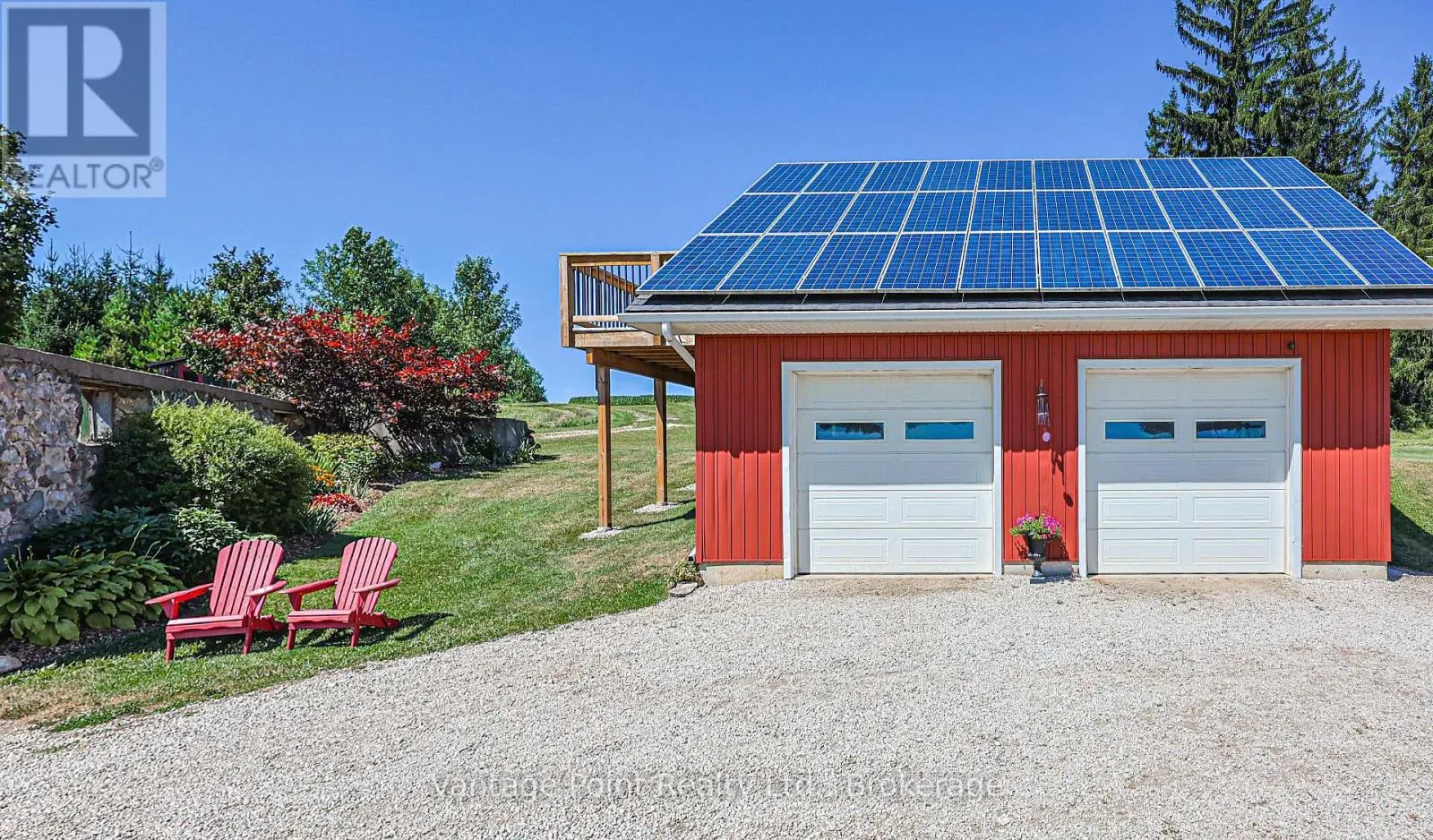 Cross Streets: Grey Road 18. ** Directions: From Rockford, head East on Grey Road 18 then turn South on to Concession 4 S. Go to the top of the hill and watch for the sign. A truly rare offering, this remarkable farm property spans 140.5 acres comprised of a 90.5 acres plus a separate 50-acre rear parcel, blending productive farmland, natural beauty, and timeless homestead charm. The beautifully preserved 4-bedroom, 2-bath century home is in exceptional condition and showcases original character throughout, including two separate staircases, refinished original flooring, generous principal rooms, and thoughtful upgrades that seamlessly balance historic appeal with modern comfort. Supporting the main residence is a 30x30 detached garage, fully spray-foamed with 100-amp service, featuring a finished upper level ideal for office, studio, or additional living space, complete with a deck overlooking sweeping countryside views. Solar panels installed in 2017 are net-metered, resulting in impressively low hydro costs averaging approximately $45 per month on equal billing. The property is well equipped with functional outbuildings, including a 20x40 Quonset hut with hydro and concrete floors, perfect for storage, equipment, or workshop use, along with a 10x12 garden shed. The land itself is outstanding, offering approximately 42 acres of workable, high-quality loam soil with last year's crop being soybeans. There is a plantation of roughly 20,000 mixed trees (pine, spruce, oak) that adds long-term forestry value and potential future income. Two ponds, including one stocked with speckled trout, offer water access and recreational value. The additional 50-acre rear parcel features a mature mixed bush of cedar, pine, maple, ash, and poplar, also backing onto Blacks Creek, providing excellent opportunities for recreation, trails, or sustainable woodlot use. Ideally located just 15 minutes to Owen Sound and 20 minutes to Meaford, this exceptional property offers the perfect balance of rural privacy, agricultural potential, and refined country living. Additional income is generated through the tenant farmer. (id:27476)