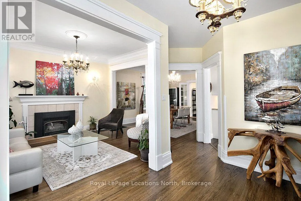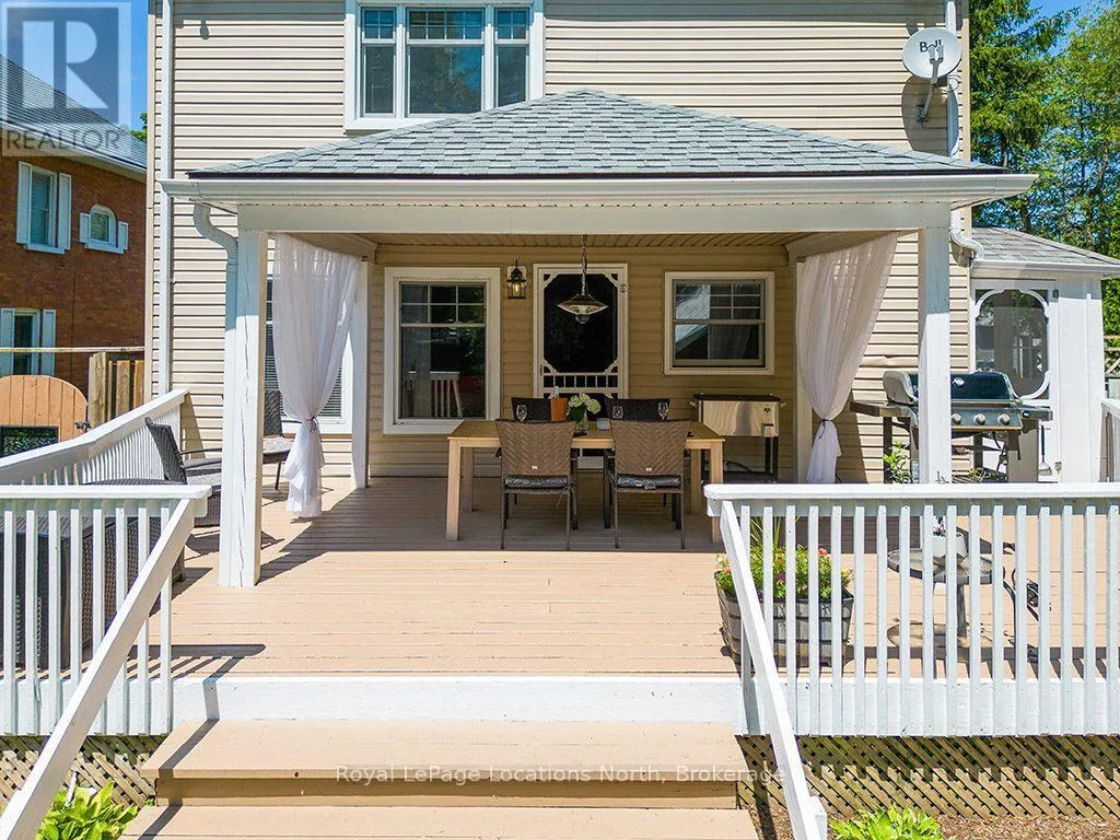 Sykes S, right on Boucher St E, left on St Vincent St, Right on Bridge St Beautiful 4 bedroom, 3 bathroom, century home in Meaford, where timeless character meets modern comfort just steps from the sparkling harbour and Downtown!The main floor invites you in with bright, open spaces-an airy living and dining room that flows seamlessly into a beautifully upgraded kitchen with island. Picture hosting family dinners, then stepping into the cozy rec room that opens onto a sprawling covered deck-perfect for summer evenings, morning coffee, or watching the kids play in the yard. A mudroom and 4pc bathroom complete the main level.Upstairs, retreat to the spacious primary suite with a 4pc ensuite bath with electric heated floors. 3 additional bedrooms and a guest bathroom provide plenty of room for family and visitors.Thoughtful updates throughout-including upgraded kitchen (2021), central air (2021), refinished original wood floors (2017), roof (2019), and more-this home blends modern function with timeless charm.Step outside to enjoy the great backyard, complete with landscaped gardens, lush perennials, and plenty of room to relax or play. A good size garage/workshop offers endless potential-whether you're a hobbyist, need extra storage, or dream of a creative space to make your own.Located just one block from the Meaford Harbour and a short stroll to downtown shops and restaurants, you'll love the small-town lifestyle with Thornbury only 8 minutes away. (id:27476)