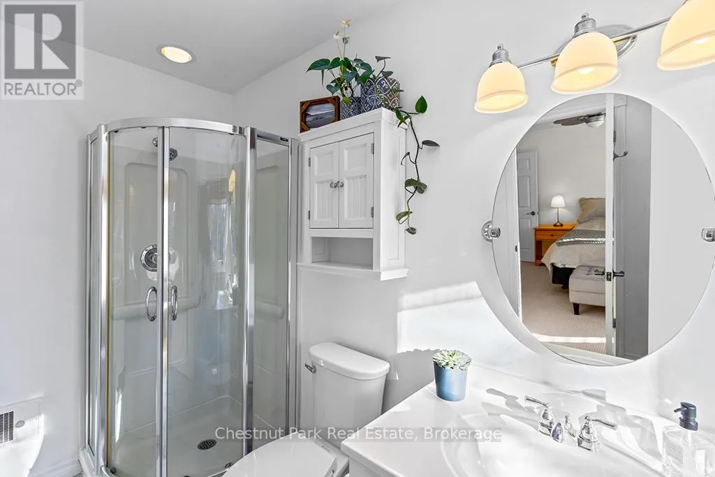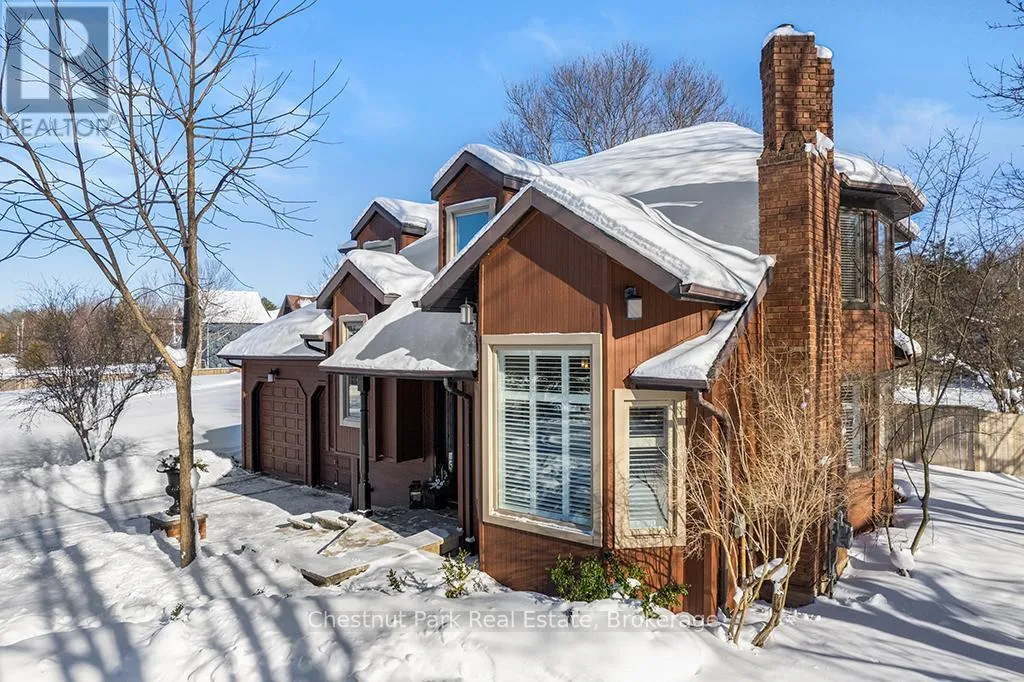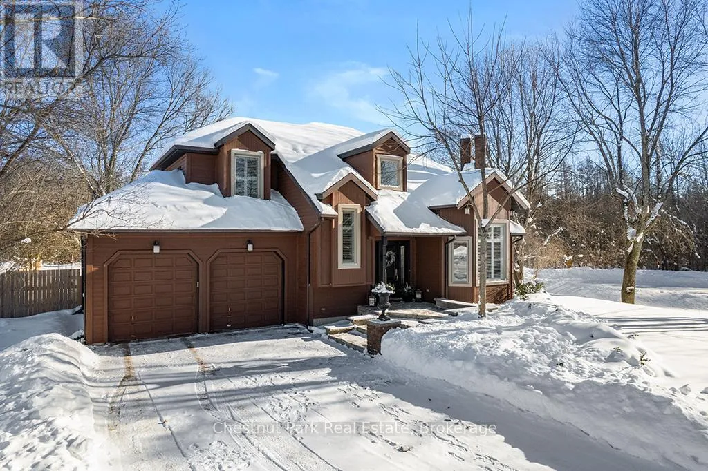 Cross Streets: 3rd Ave E turns into Grey Rd. 15. ** Directions: From Owen Sound take 3rd Ave E toward Leith, 3rd Ave E turns into Grey Rd 15/Bayshore Rd. Welcome to this well-appointed and beautifully maintained two-storey home offering privacy, functionality and a serene natural setting across the road from Georgian Bay. Situated on a landscaped lot with a fully fenced rear yard and a wooded backdrop, this property provides a peaceful vibe while benefiting from modern conveniences including natural gas, a paved driveway and a double car garage. The main floor offers a bright and practical layout featuring a living room with vaulted ceilings, a separate formal dining room ideal for entertaining and a spacious kitchen with a breakfast nook and walk-out to an oversized deck with pergola; perfect for outdoor dining and relaxation. There is a separate main floor office with a walk out to the deck. Could easily double as a main floor den. A functional mudroom with direct access to the garage enhances everyday convenience. The second level includes three good-sized bedrooms, highlighted by a primary bedroom with a 4-piece ensuite bathroom. A recently updated guest bathroom completes the upper floor, providing comfort for family and guests. The partially finished lower level extends the living space with a welcoming rec room featuring a cozy gas fireplace, creating an ideal space for relaxation or entertaining. A combined bathroom and laundry room adds efficiency and functionality. Outdoors, the property continues to impress with a private fire pit area, garden shed and a backyard bordered by mature woods. An unopened road allowance located across the road offers convenient public access to the water, adding to the home's lifestyle appeal. Walk your kayak to Georgian Bay! This home is thoughtfully designed for relaxed living, entertaining and enjoying the natural surroundings. Just on the outskirts of Owen Sound, mins to Hibou Conservation area with trails and a sandy beach. A truly special property offering space, privacy and lifestyle all in one exceptional package. (id:27476)