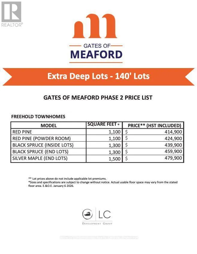 Cross Streets: HWY 26 & Equality Drive. ** Directions: HWY 26 to Equality Drive. To Be Built | Extra Deep 140' Lots | Occupancy Late 2026 / Early 2027. Introducing the Black Spruce by LCDG in the sought-after Gates of Meaford community. This newly constructed 1,300 sq. ft. townhome offers 3 bedrooms and 3 bathrooms, including a spacious Primary bedroom with private ensuite. The open-concept main floor features contemporary finishes and a well-planned layout suited to both daily living and entertaining. A single-car garage with inside entry adds everyday convenience.The unfinished basement provides excellent potential for future development, additional living space, or ample storage.Ideally situated just minutes from downtown Meaford's shops, dining, and waterfront, with easy access to the four-season recreation of Blue Mountains, Collingwood, and Owen Sound. Golf, skiing, hiking, and year-round activities are all within close reach.An outstanding opportunity to own a brand-new home on a premium deep lot in a growing four-season community. (id:27476)