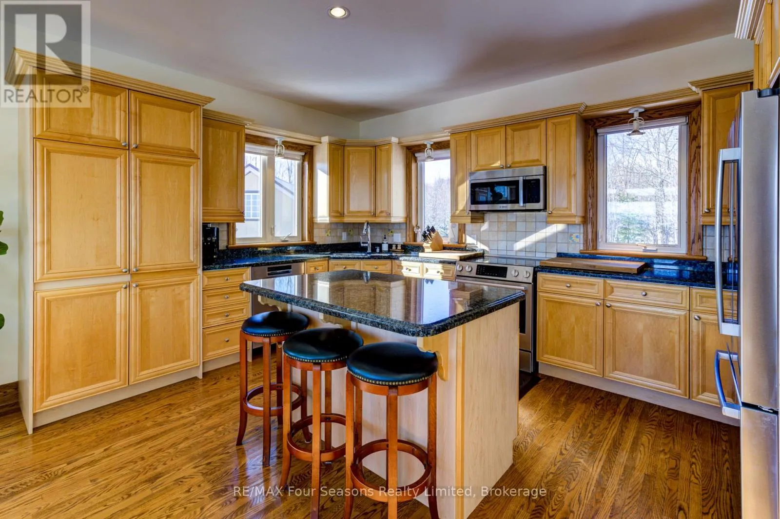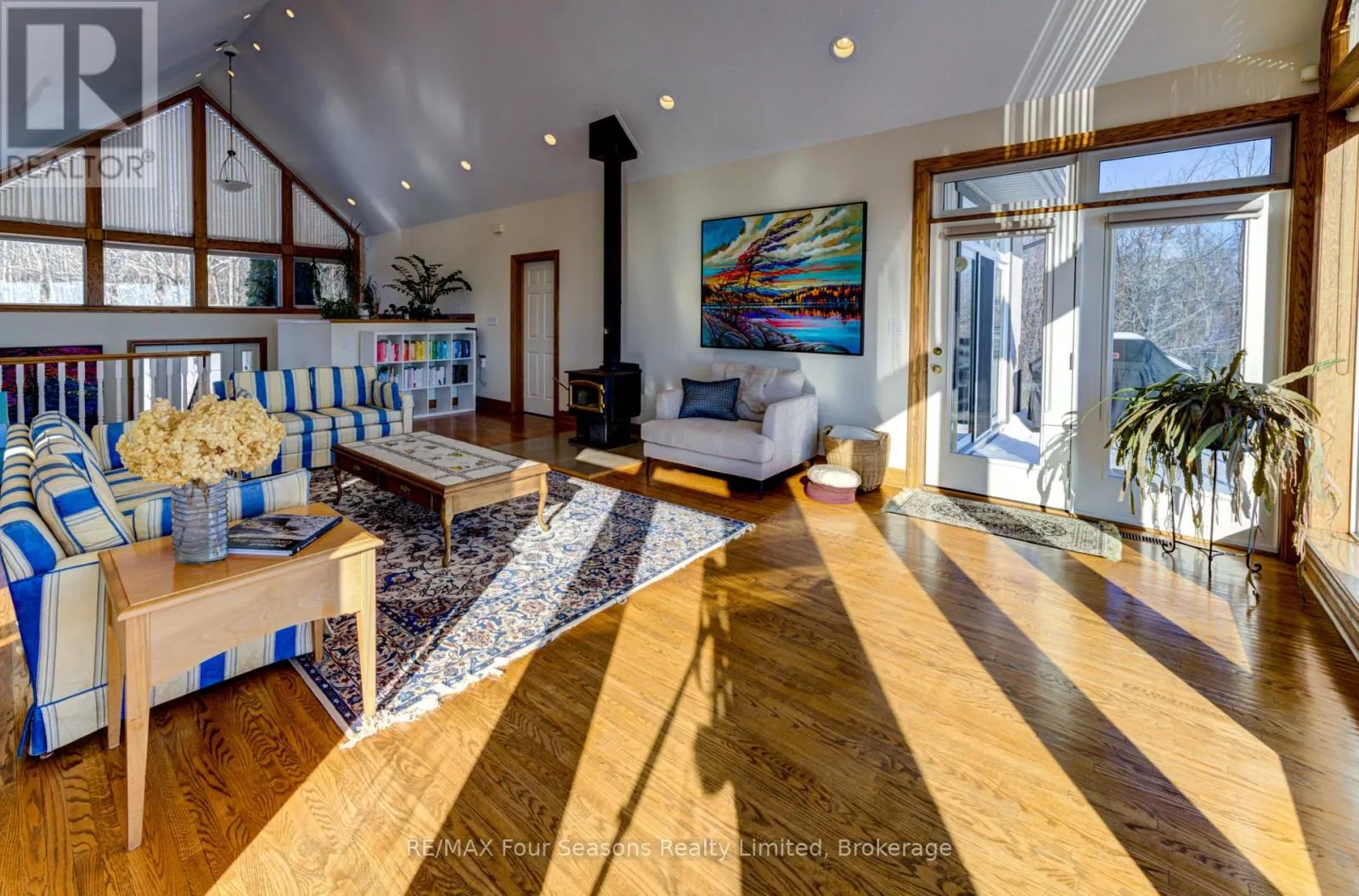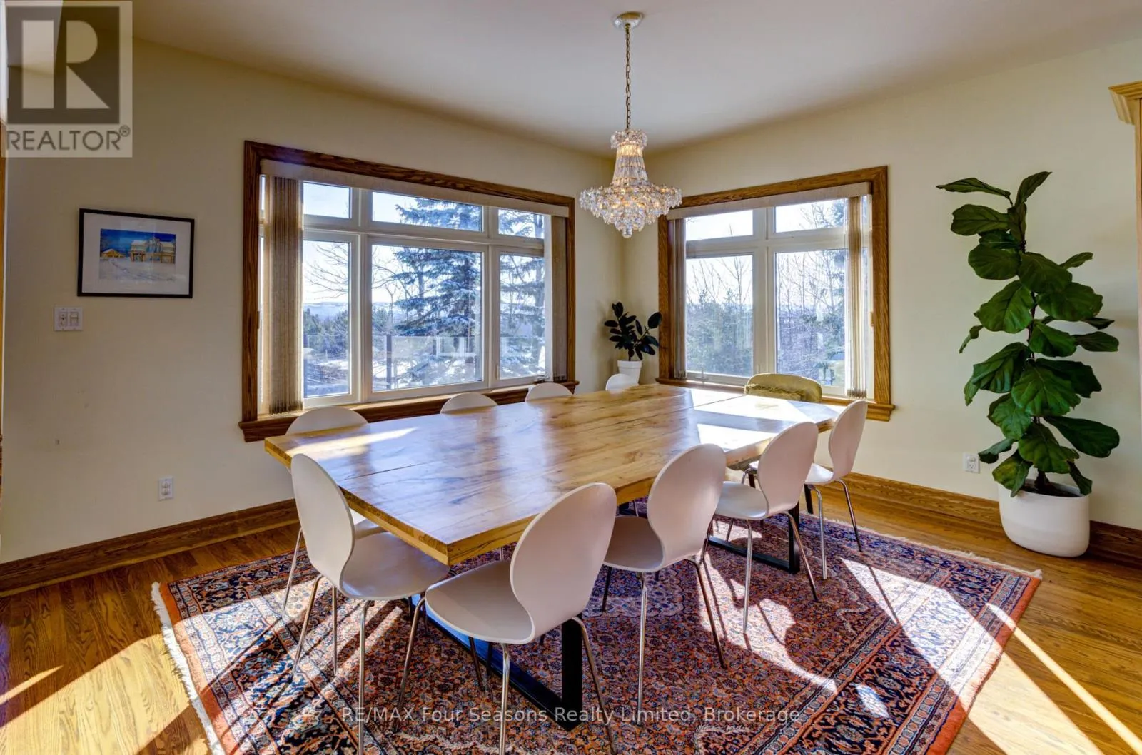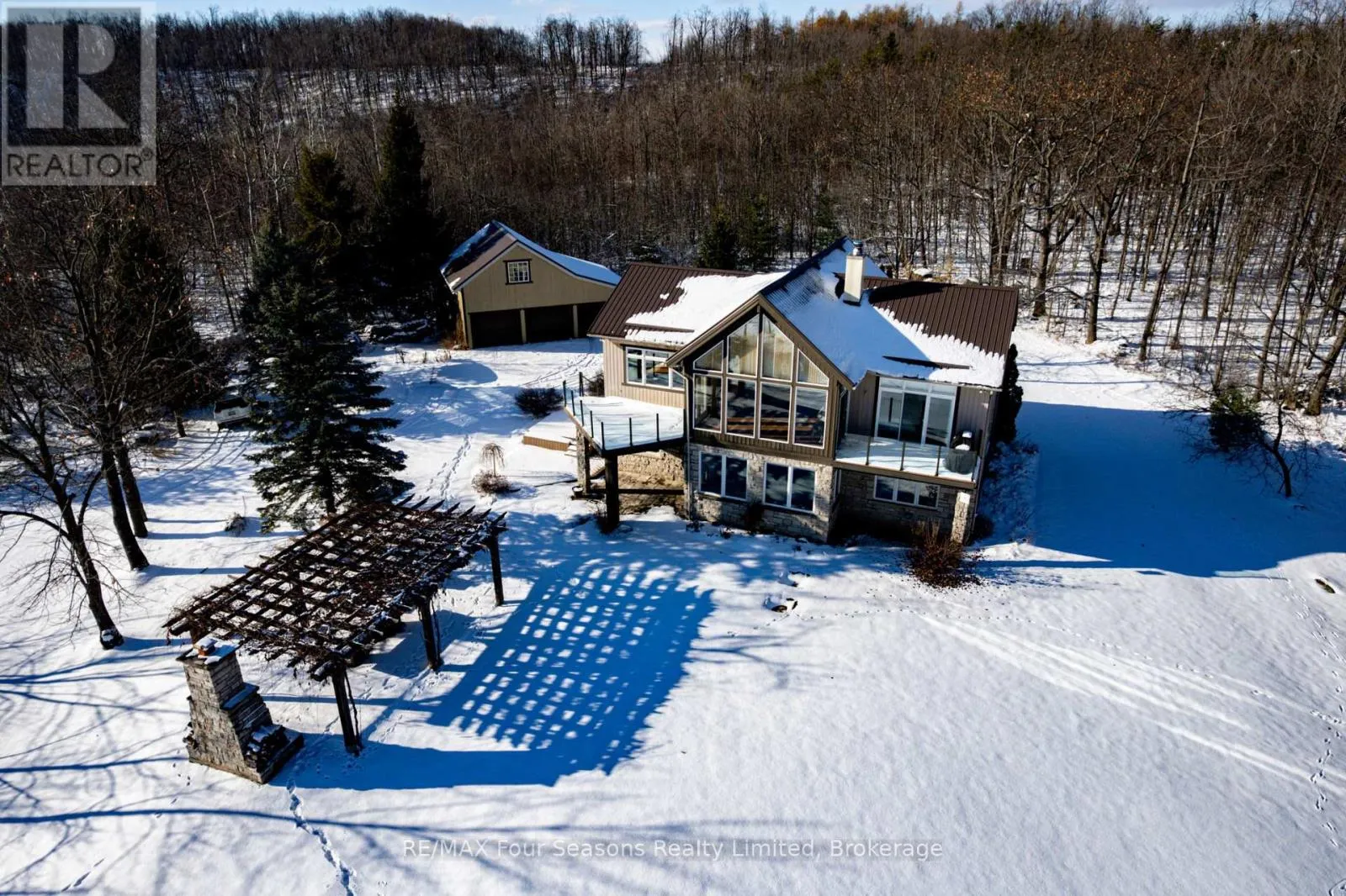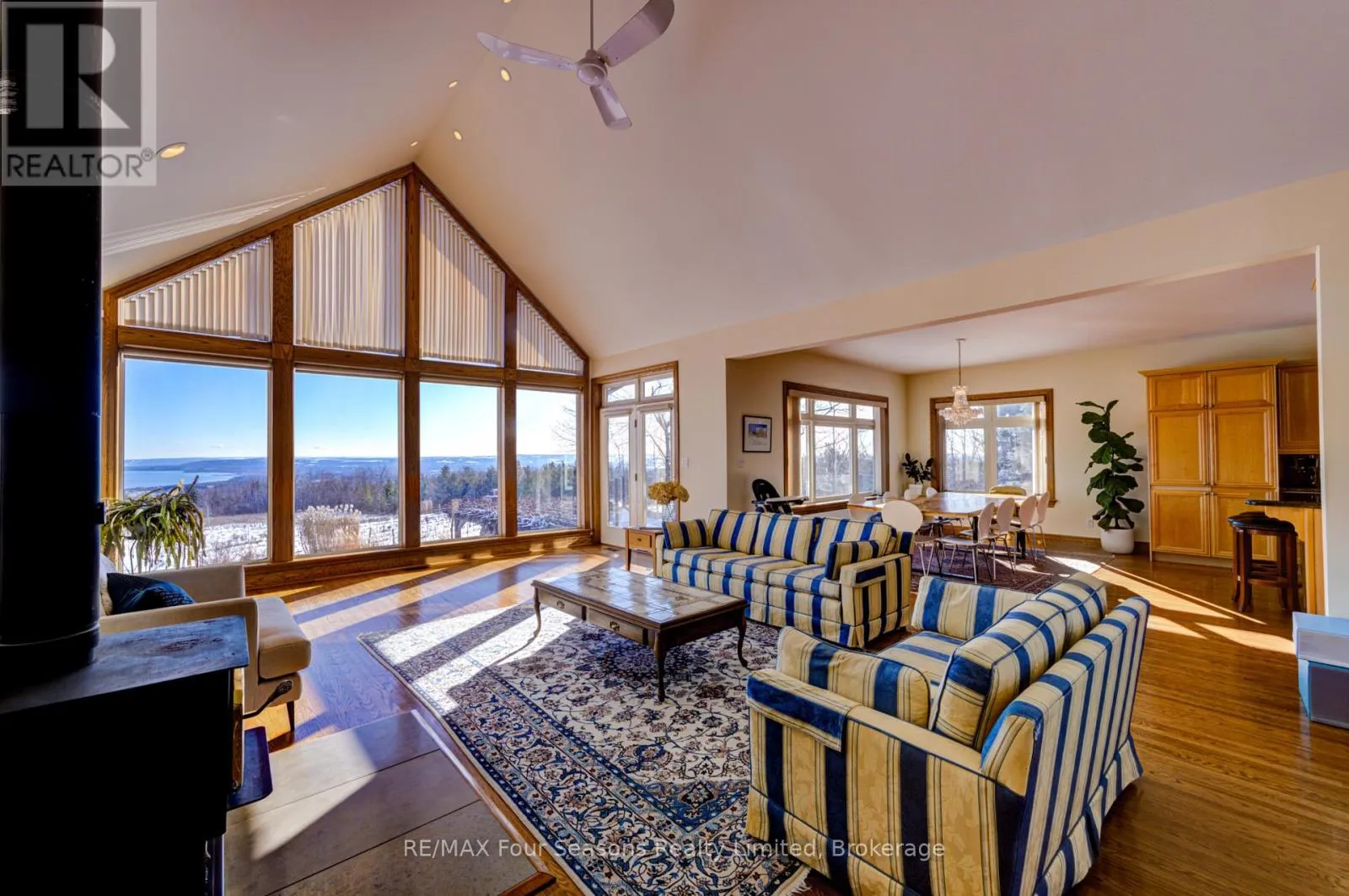 Cross Streets: 7th Line and 25th Side Rd. ** Directions: North on 7th Line from Hwy 26. West on 25th Side Rd to top of hill. Property on your right, up long driveway. Welcome to your private Georgian Bay retreat-offering 3,000 sq ft of beautifully finished living space where sunrise coffees overlook the water and every season brings a new reason to stay a little longer. Set on 18 serene acres just outside Meaford, this fully furnished estate blends luxury, privacy, and four-season adventure in a way few properties can. Wake to panoramic views of Georgian Bay and the Niagara Escarpment, spend your days exploring the vineyard setting or heading minutes to the bay for swimming, paddleboarding, or boating. Hike nearby trails, cycle quiet country roads, or golf local courses in the warmer months. In winter, enjoy easy access to area ski hills before returning home to relax and recharge. Thoughtfully designed for flexibility and entertaining, the home features two kitchens-ideal for extended family, guests, or seamless hosting-as well as a dedicated gym space with sauna and cold-plunge to keep your wellness routine close to home. Generous, light-filled living areas offer sweeping views from nearly every angle, creating the perfect backdrop for long dinners, cozy evenings by the fire, and effortless indoor-outdoor living. Whether you're seeking a refined full-time residence, executive lease, or seasonal escape, this is more than a home-it's a lifestyle rooted in nature, privacy, and year-round recreation. Call now to book your private showing. (id:27476)