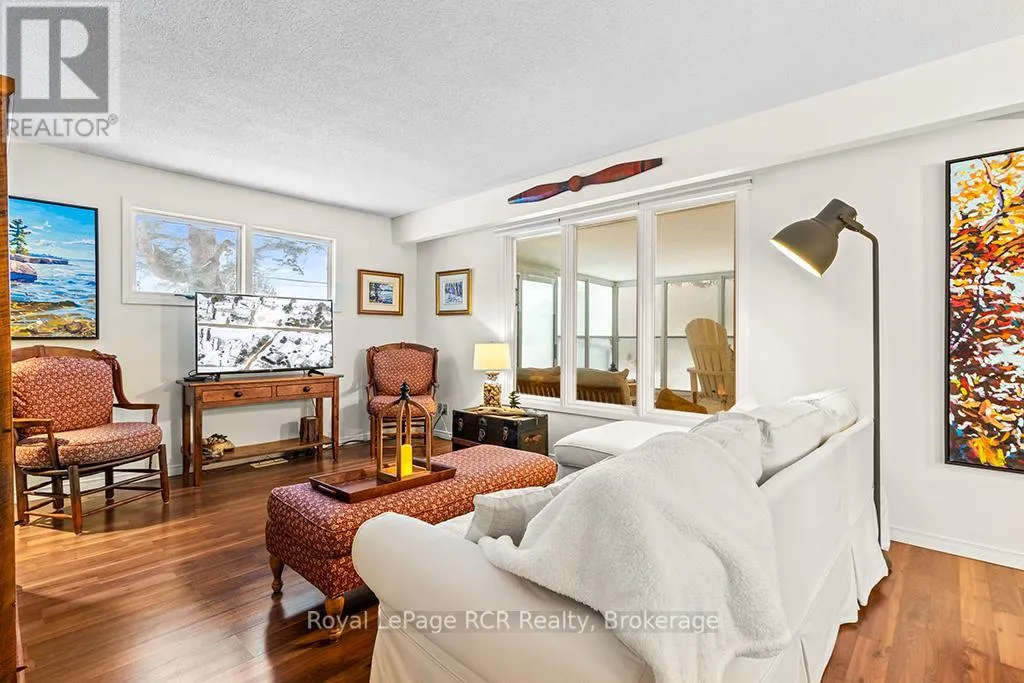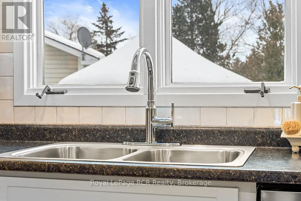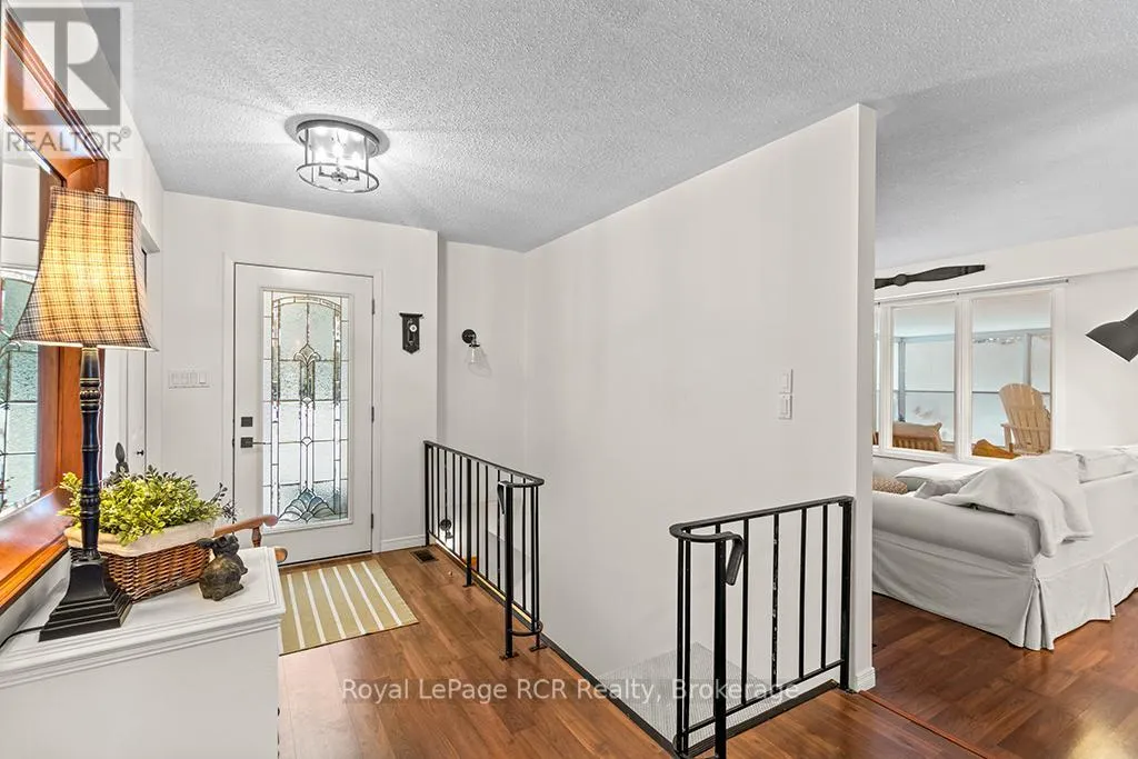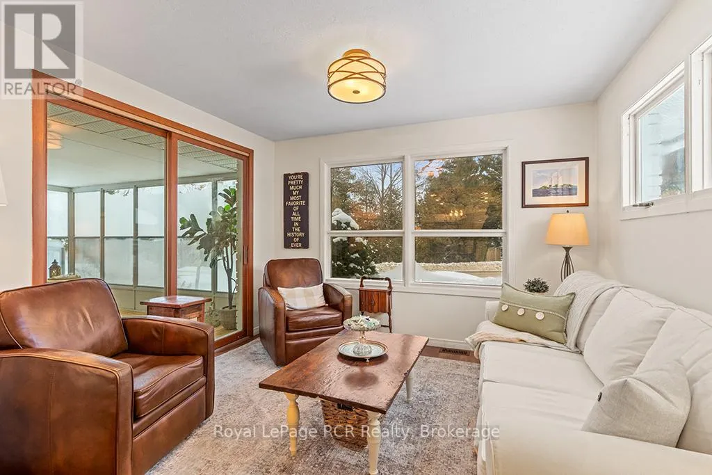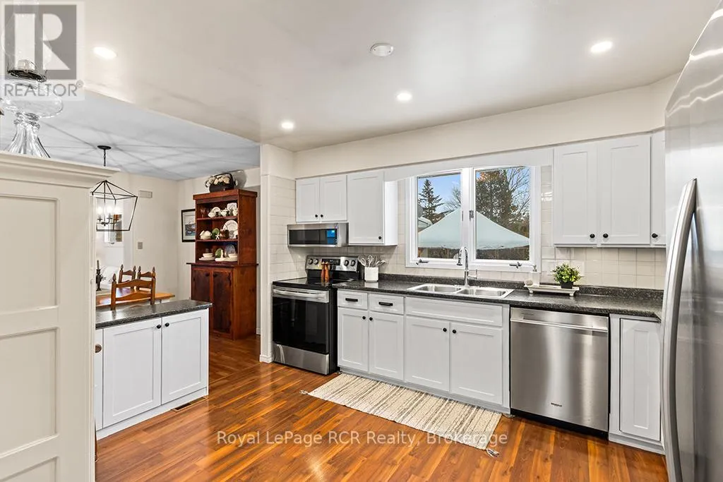 Cross Streets: Sykes St N & Helen St. ** Directions: From Sykes Street turn east onto Helen, property is on the right. Perfectly positioned at the corner of Grandview Drive and Helen Street, this beautifully renovated raised bungalow captures the serene essence of life near the Bay. The main floor is tastefully decorated and flooded with natural light, featuring an updated kitchen, modern lighting, and a spacious layout with plenty of room for entertaining. With three bedrooms on the main level and a spectacular three-season sunroom specifically designed to watch the waves, this home is as functional as it is inviting. The fully finished lower level provides an expansive footprint perfectly suited for a growing family, multigenerational living, or a premium guest suite. This updated space features its own kitchen, bathroom, bedroom, and two distinct activity areas offering ultimate flexibility to suit your lifestyle. A convenient walk-up to the mudroom ensures easy access and organization, making the lower level feel like a natural, private extension of the home. Outside, the property boasts a generous private yard, offering a secluded oasis for outdoor entertaining, gardening, or family activities, all complemented by an attached garage and storage shed. Beyond the visible beauty, this home features high-performance upgrades for year-round comfort and peace of mind. The lower level is fully optimized with spray foam walls, an insulated floor, and radiant heating in the bathroom. For superior sound dampening and thermal efficiency, the ceilings feature 6" Rockwool insulation and 5/8" drywall. Completing these "hidden" essentials is an electrical system that features a dedicated generator panel and exterior plug for ultimate reliability. With its prime location, water views from many vantage points, and extensive recent upgrades, this property is a turn-key opportunity to enjoy a sophisticated lifestyle near Georgian Bay. (id:27476)