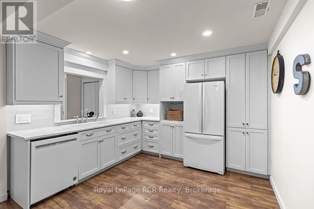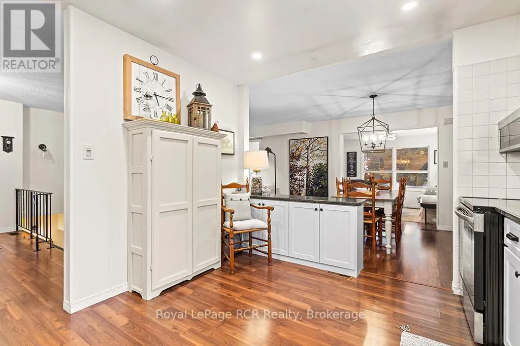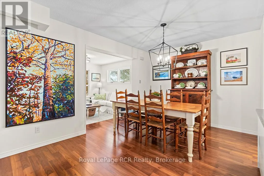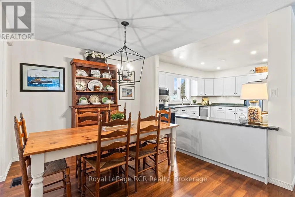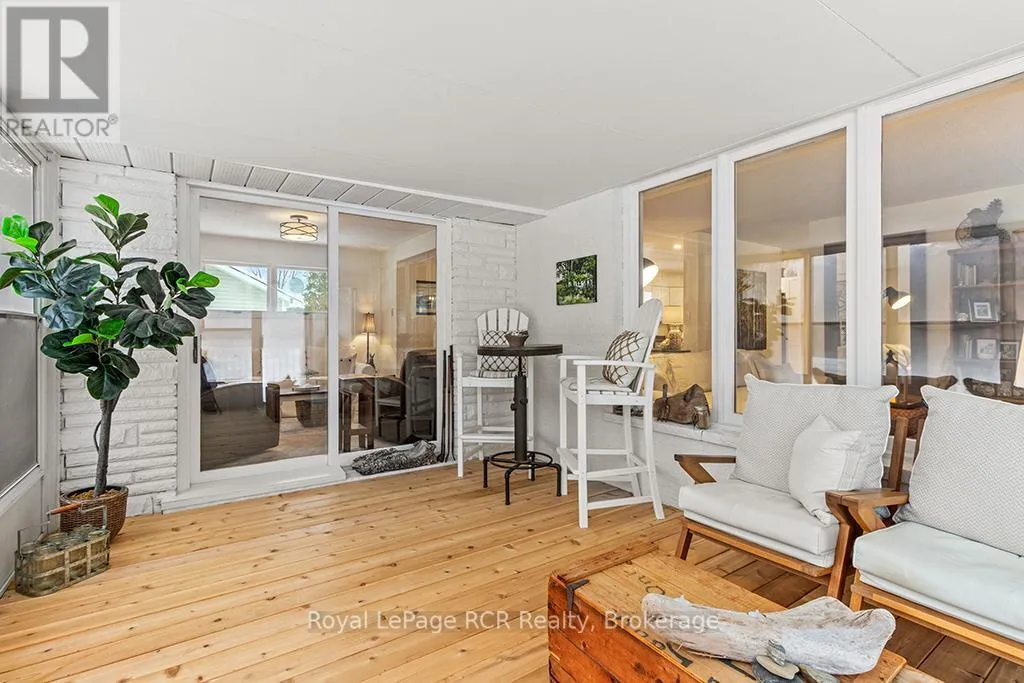 Cross Streets: Sykes St N & Helen St. ** Directions: From Sykes Street turn east onto Helen, property is on the right. Perfectly positioned at the corner of Grandview Drive and Helen Street, this beautifully renovated raised bungalow captures the serene essence of life near the Bay. The main floor is tastefully decorated and flooded with natural light, featuring an updated kitchen, modern lighting, and a spacious layout with plenty of room for entertaining. With three bedrooms on the main level and a spectacular three-season sunroom specifically designed to watch the waves, this home is as functional as it is inviting. The fully finished lower level provides an expansive footprint perfectly suited for a growing family, multigenerational living, or a premium guest suite. This updated space features its own kitchen, bathroom, bedroom, and two distinct activity areas offering ultimate flexibility to suit your lifestyle. A convenient walk-up to the mudroom ensures easy access and organization, making the lower level feel like a natural, private extension of the home. Outside, the property boasts a generous private yard, offering a secluded oasis for outdoor entertaining, gardening, or family activities, all complemented by an attached garage and storage shed. Beyond the visible beauty, this home features high-performance upgrades for year-round comfort and peace of mind. The lower level is fully optimized with spray foam walls, an insulated floor, and radiant heating in the bathroom. For superior sound dampening and thermal efficiency, the ceilings feature 6" Rockwool insulation and 5/8" drywall. Completing these "hidden" essentials is an electrical system that features a dedicated generator panel and exterior plug for ultimate reliability. With its prime location, water views from many vantage points, and extensive recent upgrades, this property is a turn-key opportunity to enjoy a sophisticated lifestyle near Georgian Bay. (id:27476)