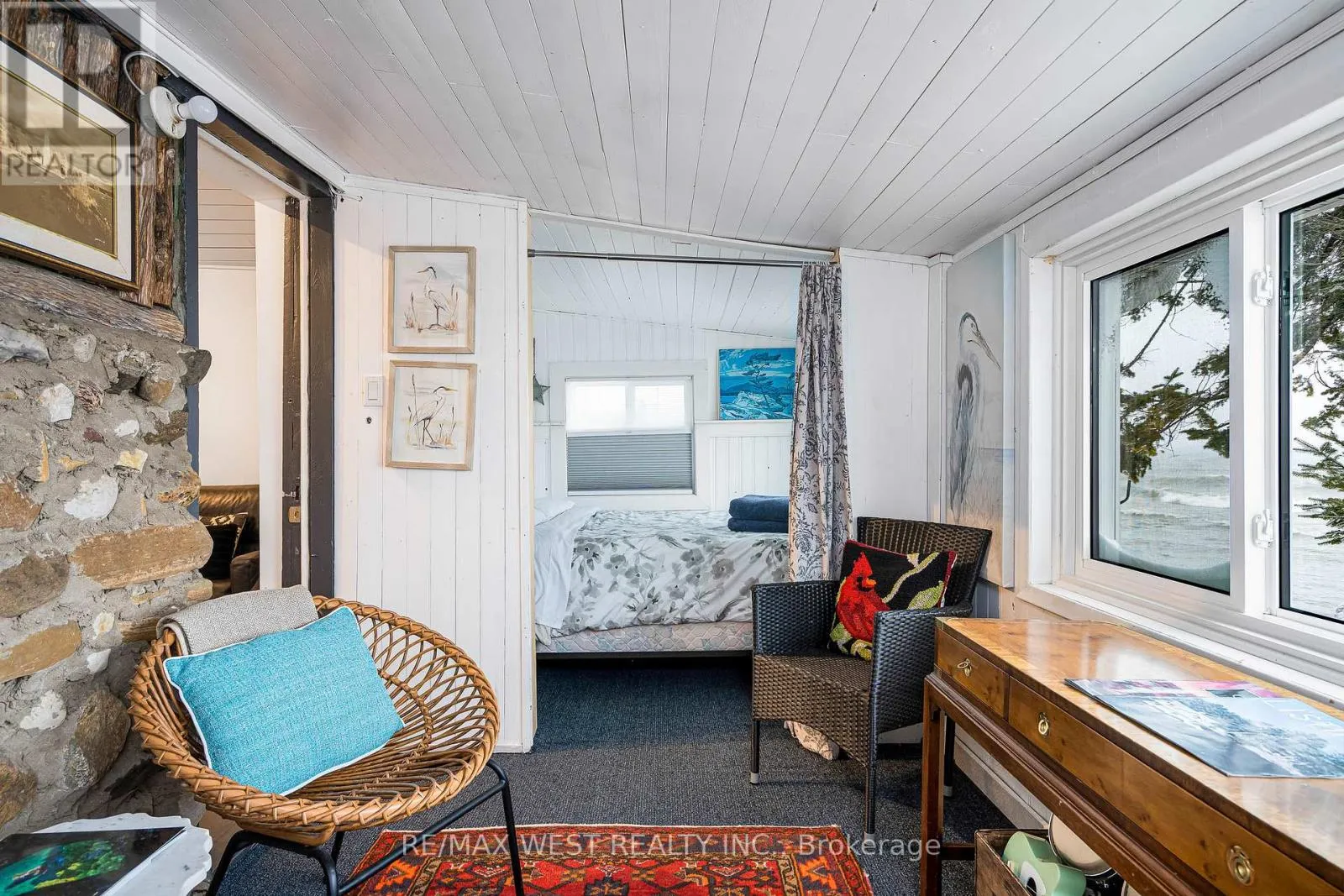 Cross Streets: harbour beach dr and county rd 22. ** Directions: county rd 22 to harbour beach dr. Unlimited possibilities!!!! The water and waves at your footsteps!!! This classis updated Georgian Bay retreat is only missing you With 79 feet of private shoreline where shallow, clear waters and a private yard space this property has something for everyone Updated from top to bottom it has something for everyone . The boathouse has been converted into a bunkie space or could go straight back to a boathouse, sleeping quarters, bar area or home office, the detached garage with an attached shed has room for all your gear and also has many possibilities or potential. Inside has been renovated from start to finish alowing for turn key operation with no costs upfront while allowing the rustic charm to stick around, newer vinyl plank flooring, fresh paint, and vaulted ceiling finished with a shiplap showcasing aan amazing skylight that crowns the space. Stay cozy year-round with a newer heat pump for heating and cooling, plus an electric fireplace for added ambiance. A Murphy bed adds flexibility for guests, featuring a newer washer and dryer and renovated bathroom complete with glass shower. Some newer energy-efficient windows and an updated patio door as well as a newer water cistern system and annually maintained septic make this ready for anyone. (id:27476)