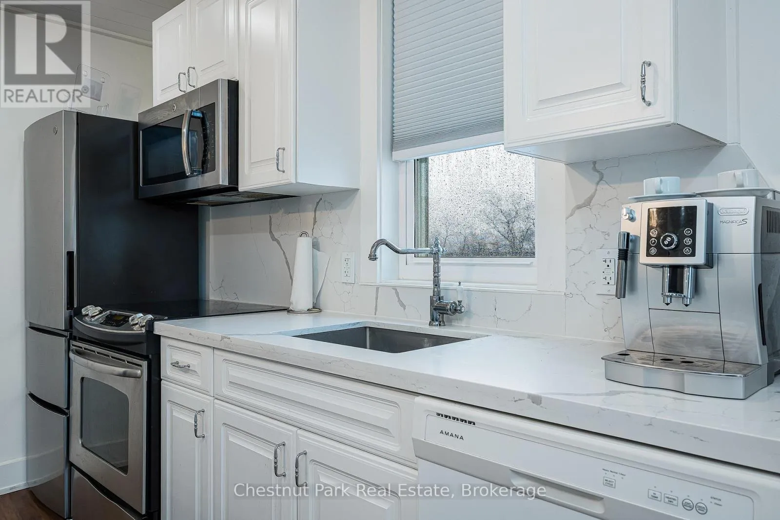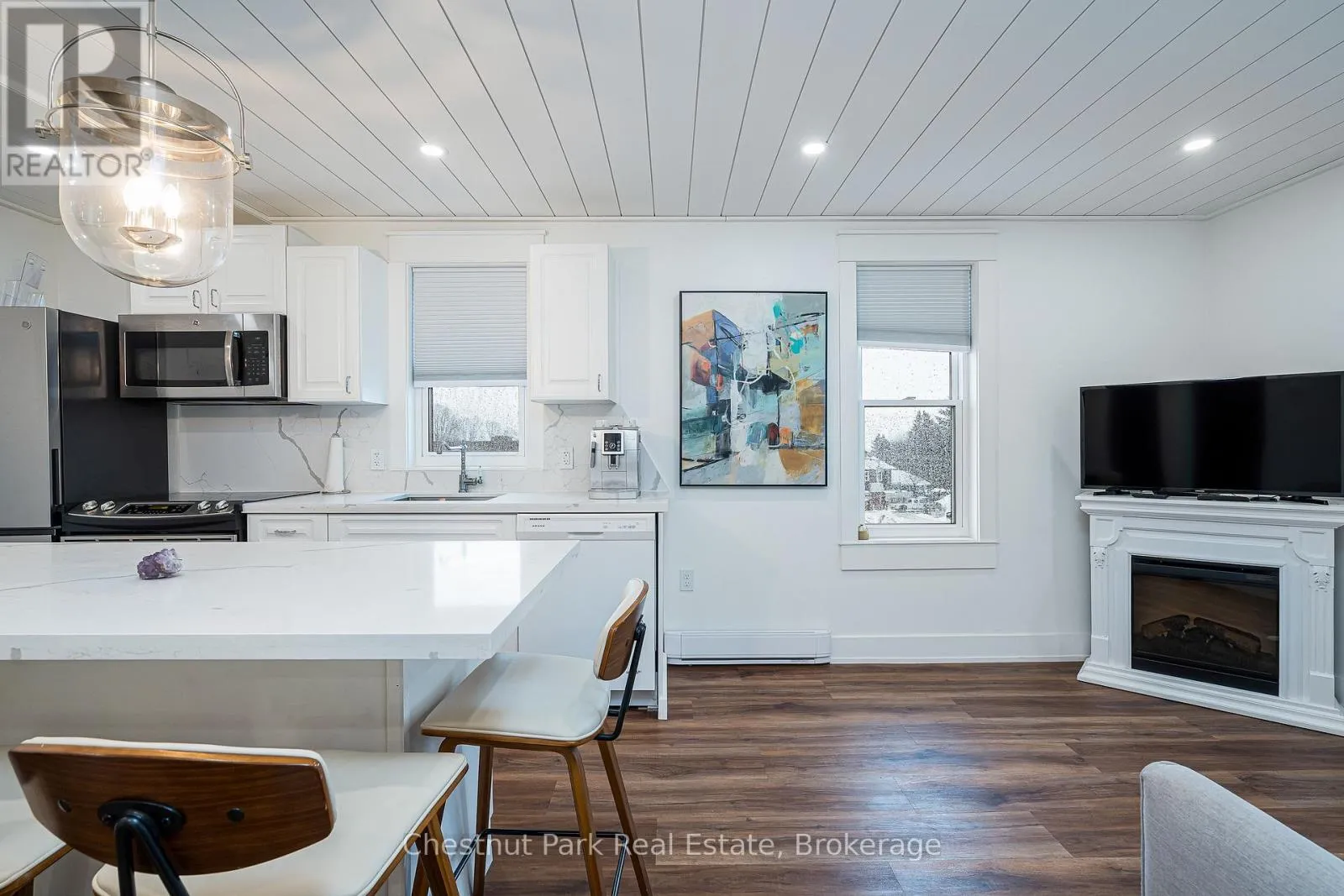 Cross Streets: Sykes Street North x Collingwood Street. ** Directions: From Hwy 26 West, - continue turns into Sykes Street N, at the corner of Sykes and Collingwood - parking off Collingwood St. Priced to Sell! Investors, downsizers, and first-time buyers - this is your opportunity. Welcome to Unit 303 at 110 Sykes Street North in beautiful Meaford. This fully renovated, turn-key condo offers effortless living just steps from the waterfront, scenic trails, the vibrant downtown core, local shops, and everyday amenities. Thoughtfully updated with tasteful finishes, this bright and spacious one-bedroom, one-bathroom unit features abundant natural light and a functional layout designed for comfort and convenience. Being sold fully furnished, this condo is truly move-in ready - perfect for immediate occupancy or rental potential. Additional highlights include a dedicated parking space, convenient in-building laundry, and a private storage locker. Whether you're looking to invest, simplify your lifestyle, or enter the market in a charming Georgian Bay community, this beautifully updated condo is ready to welcome you from day one. (id:27476)