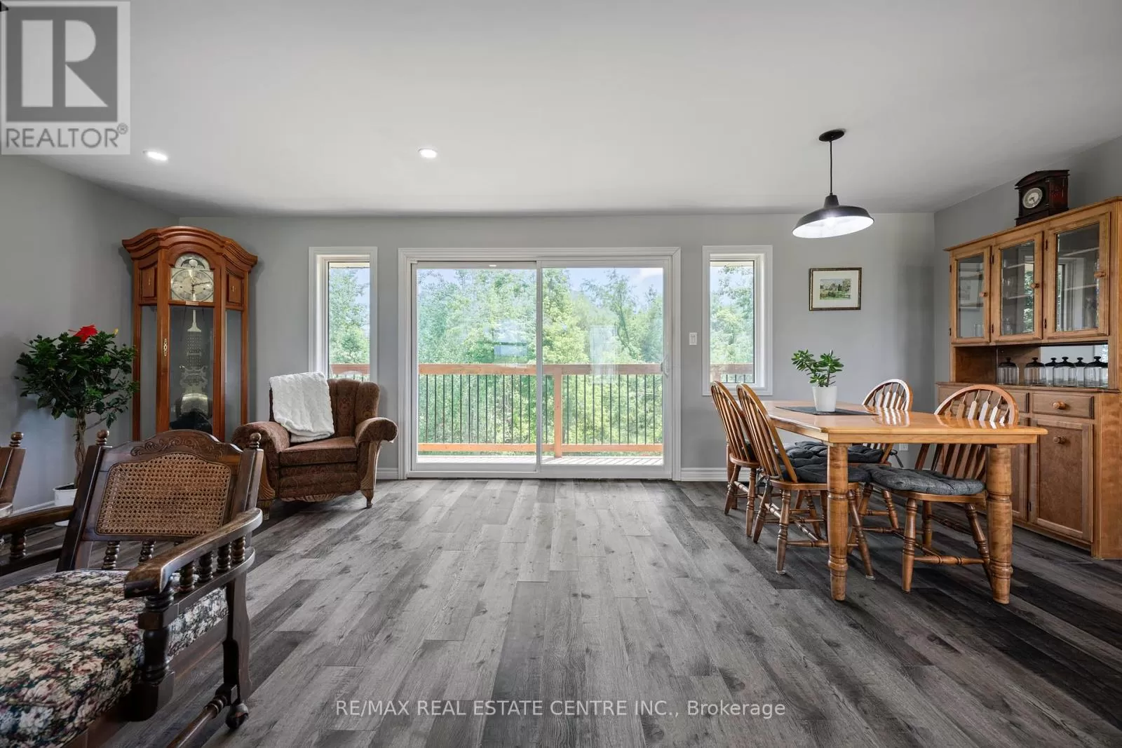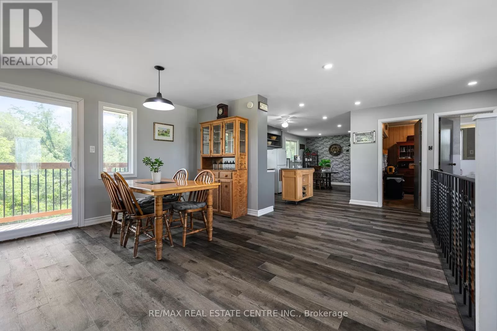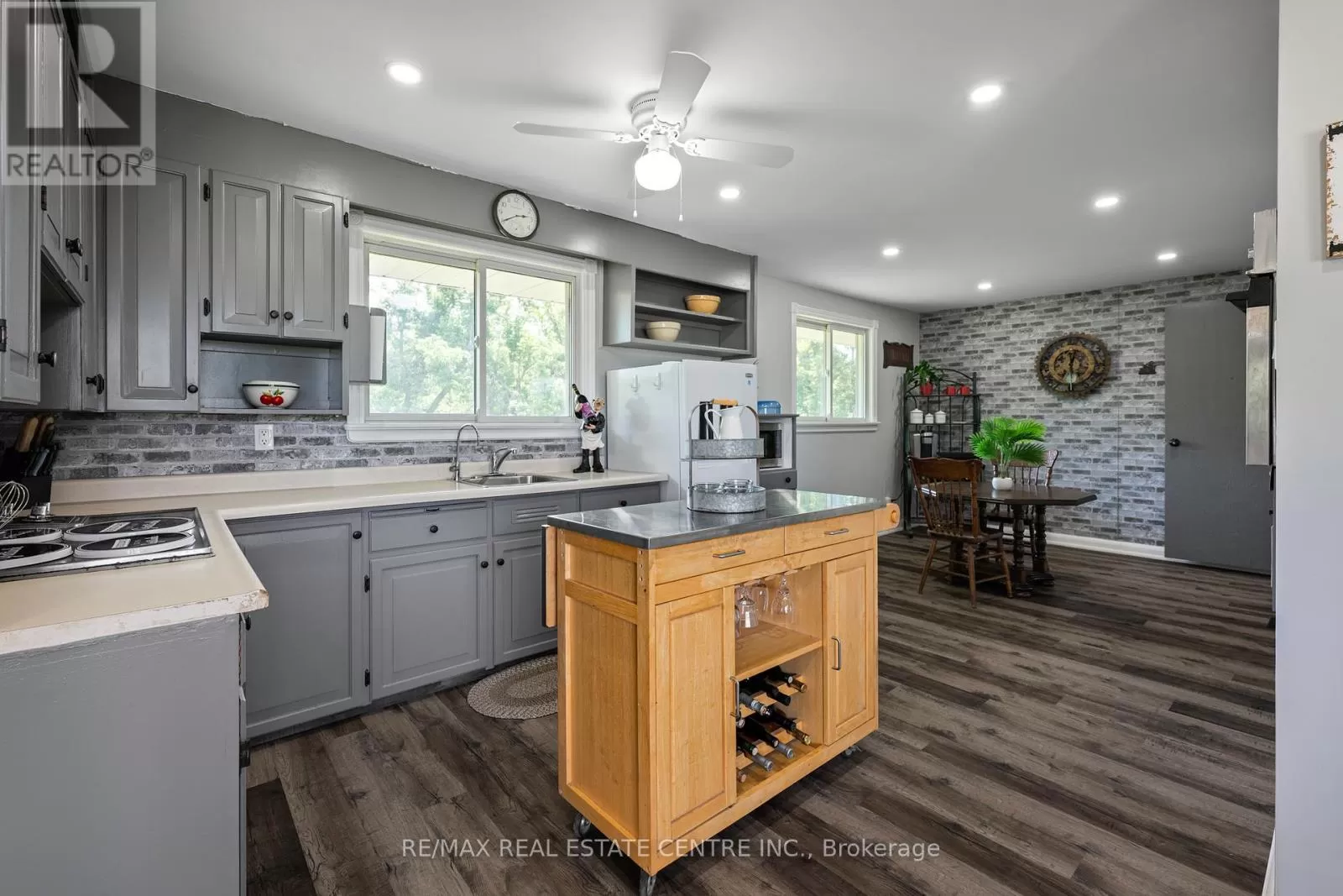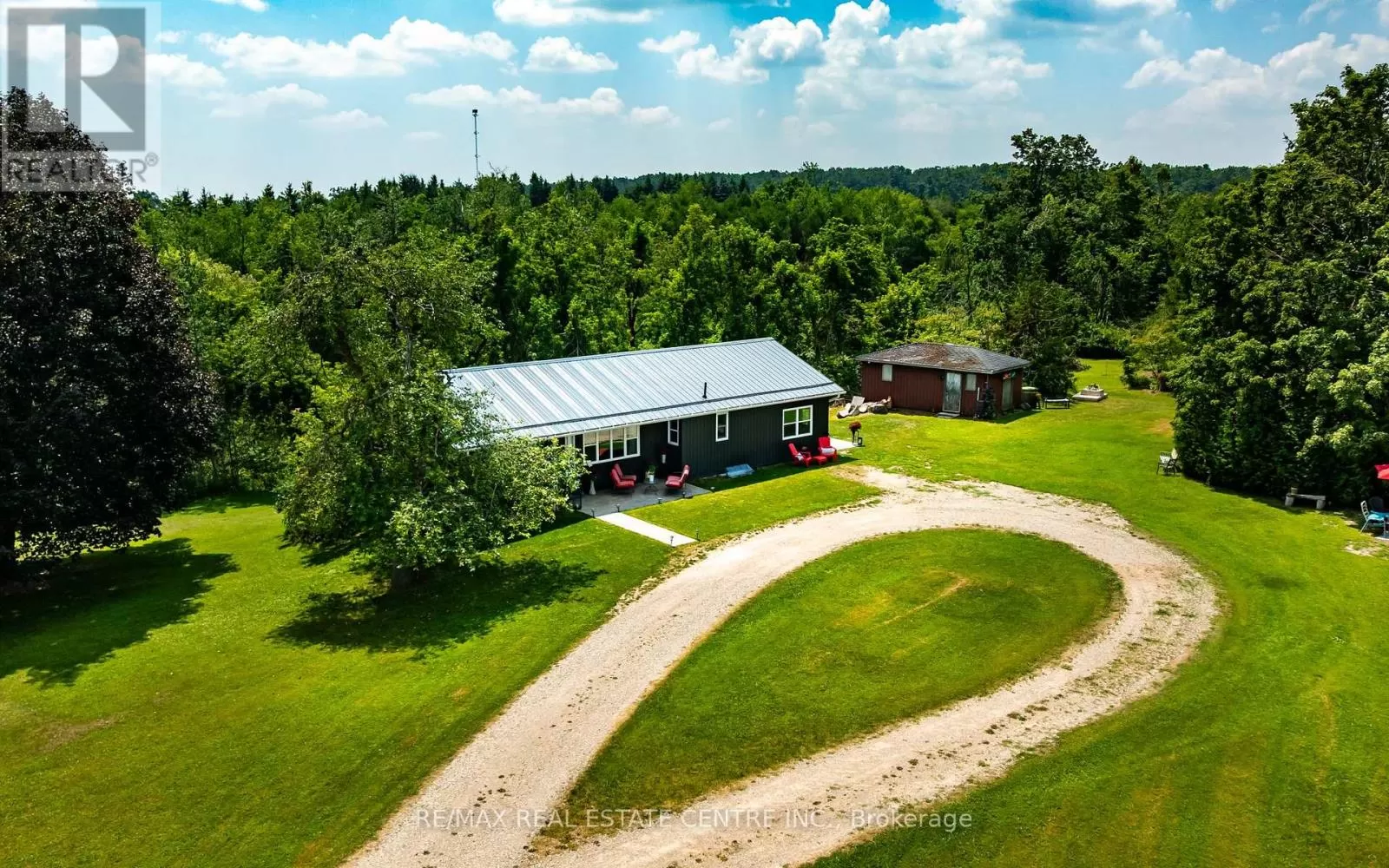 Cross Streets: Country Road 125 & Sideroad 15. ** Directions: Highway 89 to County Road 124. This is the country property you've all been waiting for. This updated bungalow sits on approximately 9.2 acres of beautiful countryside. The open concept main floor with eat in kitchen, living room and dining room with a walk out to the new raised deck, has been updated with new flooring, ceilings, electrical fixtures and more. With a main floor primary bedroom and office, and three more bedrooms in the walk out basement, this home is perfect for everyone. New windows and doors through out, as well as new vinyl siding, new steel roof, and new soffit, facia and eavestrough. Bring your ideas to update the basement and make this home your new oasis. Outside you'll find a 25X14 foot work shop with hydro, along with multiple sitting areas to relax and unwind. A power outlet near the trees allows for outdoor entertainment, or RV hook up when friends and family stop by on their cross country tour! Enjoy groomed pathways, large, mature trees and your own creek winding through the land. This is one you don't want to miss. (id:27476)