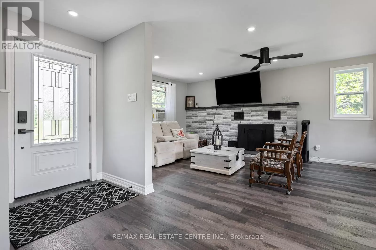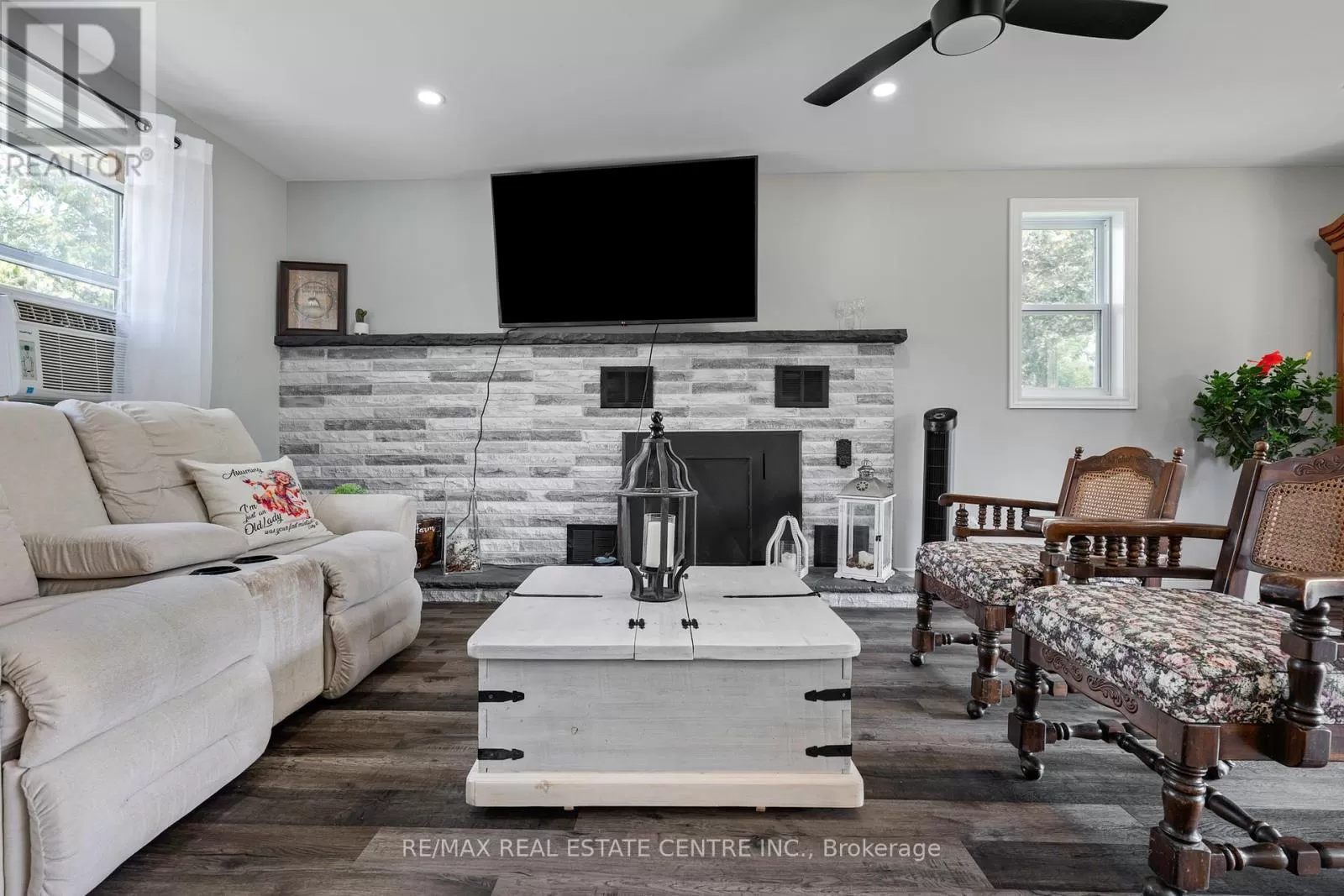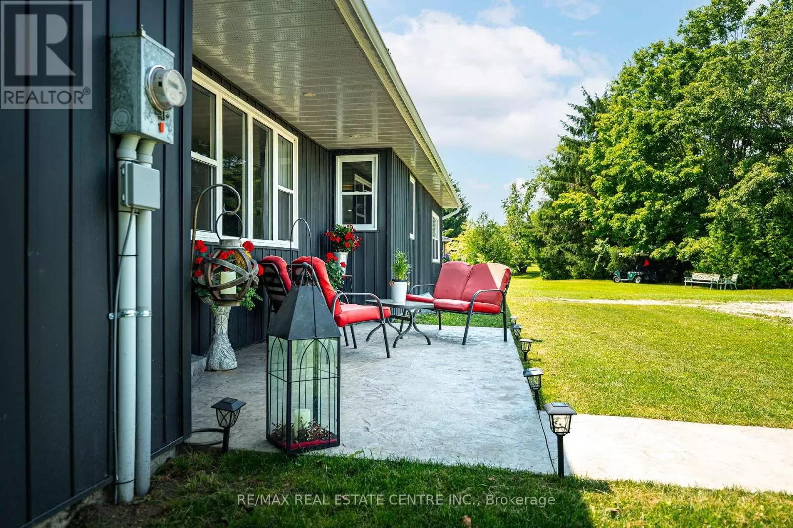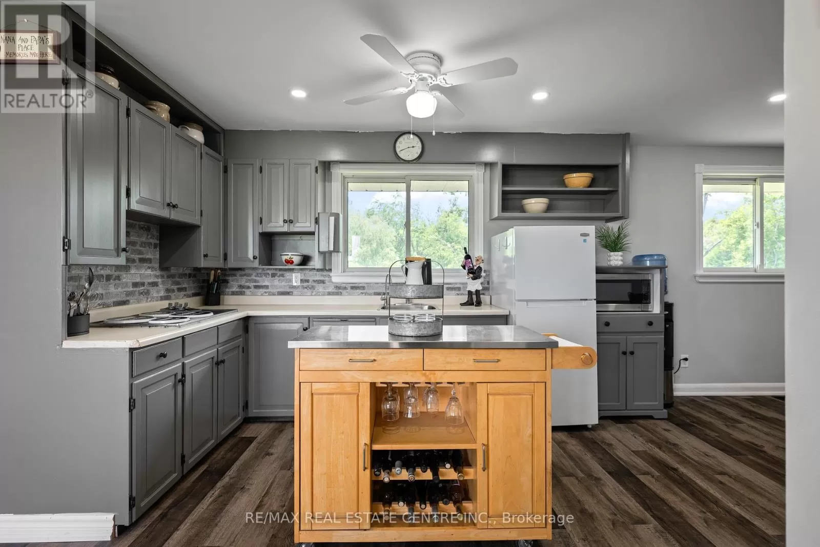 Cross Streets: Country Road 125 & Sideroad 15. ** Directions: Highway 89 to County Road 124. This is the country property you've all been waiting for. This updated bungalow sits on approximately 9.2 acres of beautiful countryside. The open concept main floor with eat in kitchen, living room and dining room with a walk out to the new raised deck, has been updated with new flooring, ceilings, electrical fixtures and more. With a main floor primary bedroom and office, and three more bedrooms in the walk out basement, this home is perfect for everyone. New windows and doors through out, as well as new vinyl siding, new steel roof, and new soffit, facia and eavestrough. Bring your ideas to update the basement and make this home your new oasis. Outside you'll find a 25X14 foot work shop with hydro, along with multiple sitting areas to relax and unwind. A power outlet near the trees allows for outdoor entertainment, or RV hook up when friends and family stop by on their cross country tour! Enjoy groomed pathways, large, mature trees and your own creek winding through the land. This is one you don't want to miss. (id:27476)