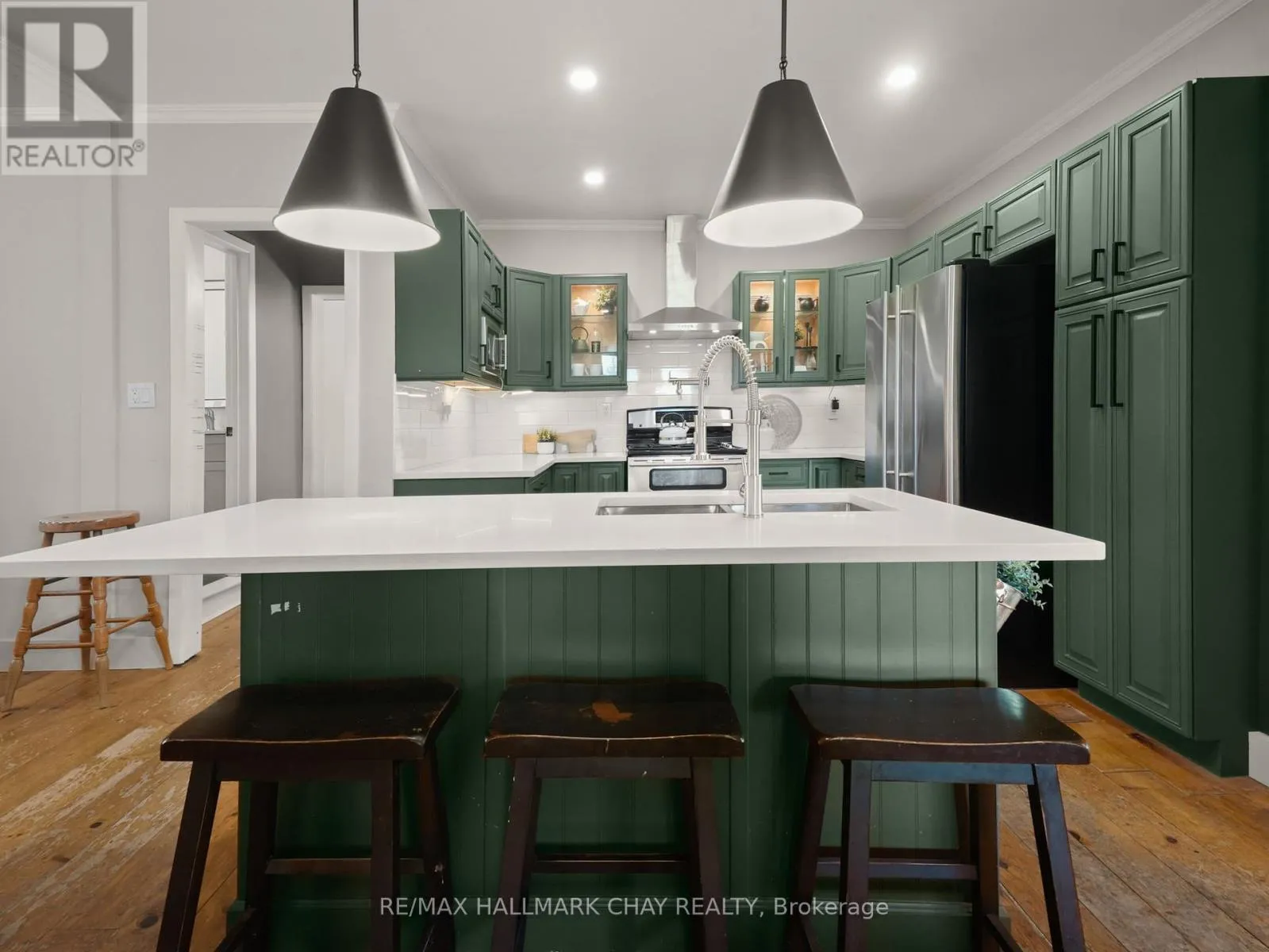 Cross Streets: Mill Lane / County Rd 14. ** Directions: Main St/Mill Lane. Nestled in the charming community of Horning's Mills, this beautifully updated home is set on a picturesque 1-acre lot with sweeping countryside views. Offering the perfect balance of neighborhood charm and private tranquility, this property invites you to enjoy peaceful living in a welcoming setting. Start your day with coffee or unwind at sunset on the inviting front porch, where you can soak in the quiet, natural surroundings. Inside, the thoughtfully designed layout features a main floor primary suite ideal for convenient, single-level living, whether you're downsizing or growing your family. The stylishly renovated main bathroom is a standout, complete with a luxurious clawfoot soaking tub and a sleek glass-enclosed shower. Upstairs, you'll find two additional bedrooms and a handy two-piece bath perfect for guests or family. The heart of the home lies in the seamless flow between the kitchen and dining areas, with a cozy living room just steps away creating a warm, functional space for daily life and entertaining. Outside, a detached garage provides extra storage or workspace potential, adding both practicality and value to the property. Don't miss this opportunity to experience small-town living at its best, with the ease of a move-in-ready home in one of Dufferin County's most delightful hamlets. (id:27476)