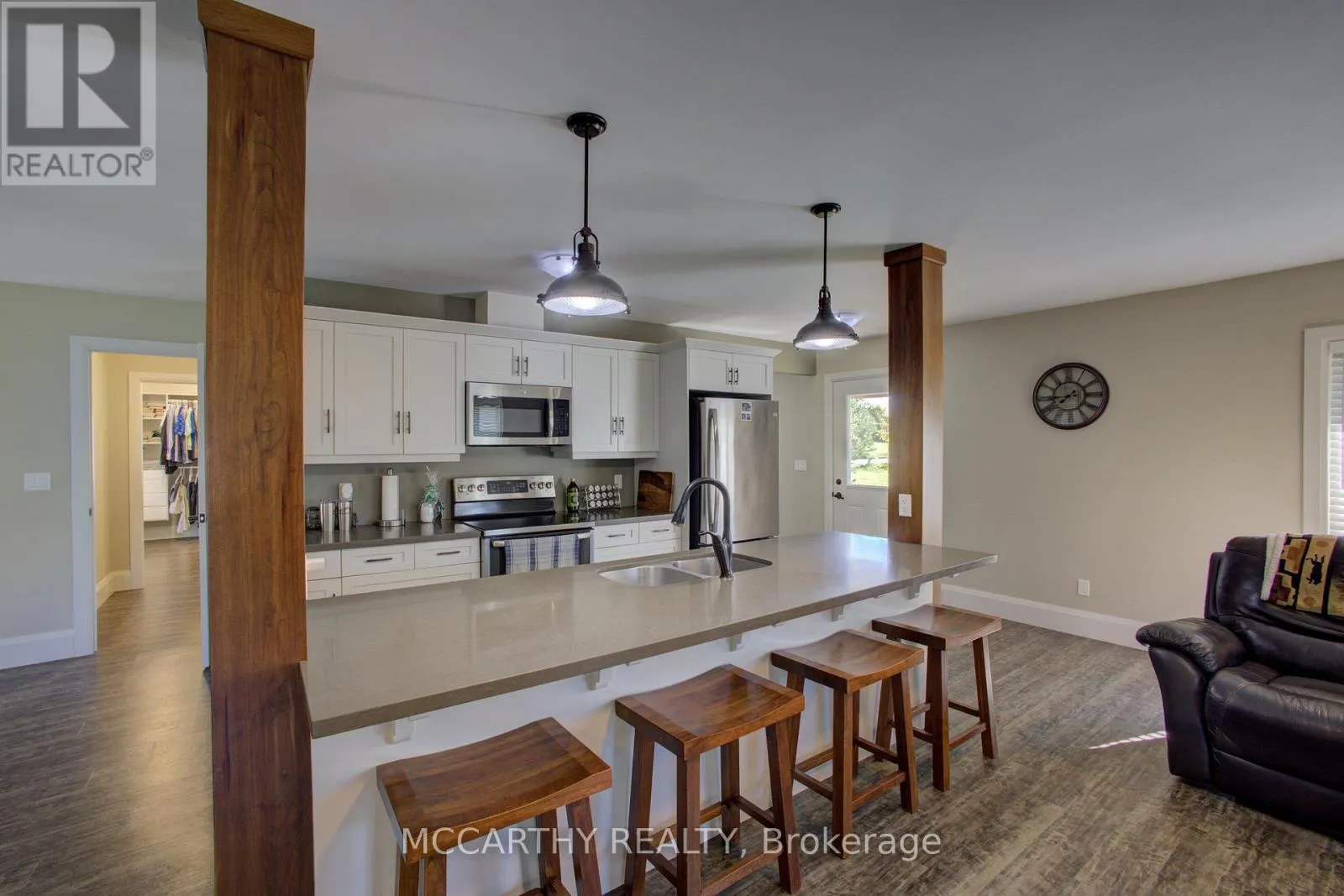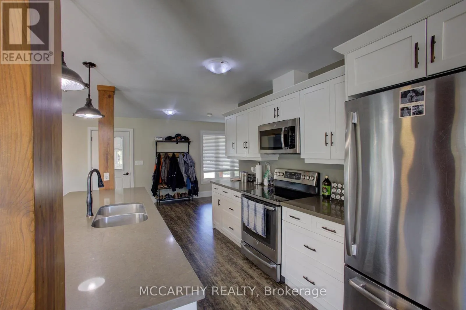 Cross Streets: Cty Rd 17, Highway 10, 2nd Line SW. ** Directions: Highway 10 North west on Cty Rd 17 on the north side. Majestic 3 Bed, 3 Bath, Country Property, Hobby Farm 16 acres with a Large shop & office. Large parking and turnaround for large trucks, Shop has large auto roll up doors, Front finished office w Separate Hydro, 3 pc bath, heat, kitchenette, loft storage, storage, separate septic, shared well with house. 2 Driveways into property;to house and to shop. Lg lot for outside storage. Beautiful House, attch heated 1.5 car garage, second detached 2 Car Garage, finished as a gym with two garage doors, one man door with rubber floor great for workouts. 3rd Garage is detached one car garage & Garden Shed. Park like yard, Wrap around porch to watch the sunrise and sunset. Commercial industrial portion has Shop 40x60plus 20x25 ft, remote garage door, heated garage, insulated and finished Office with 3 pc bathroom, kitchenette, loft storage, storage, Contractors paradise, or Man Cave extraordinaire. Farm workable acreage, field is rented for 2025 season. Hobby farm potential. Business, Investment, Homestead opportunity Two driveways, Large gravel parking area, Two Septic systems, 2 hydro services, One drilled well. Unique set up, to work and live at home. Lg Open concept Living, Dining Kitchen, Lg windows overlooks the back yard, Kitchen has large center island with breakfast bar, Creates a great family gathering space. Main Floor laundry, Primary Bed with access to outside and 2nd bedroom and 2 baths are 4pc One is large Primary Ensuite, plus convenient access 2nd Bedroom on Main Floor. 3rd Bedroom on second floor, is extra large can be used a extra living space has a 2 pc ensuite. Beautiful home, Well finished and Modern, has a wrap around porch 3 sides, with great curb appeal. Modern and all updated with new windows, doors, furnace, air cond, flooring, kitchen, well casing, pots lights and new lighting, Roof updated. Lower level is dry and ready for storage. Extra wide wooden staircase to second floor. Close to Shelburne on paved County Rd 17 easy access for commuting. (id:27476)